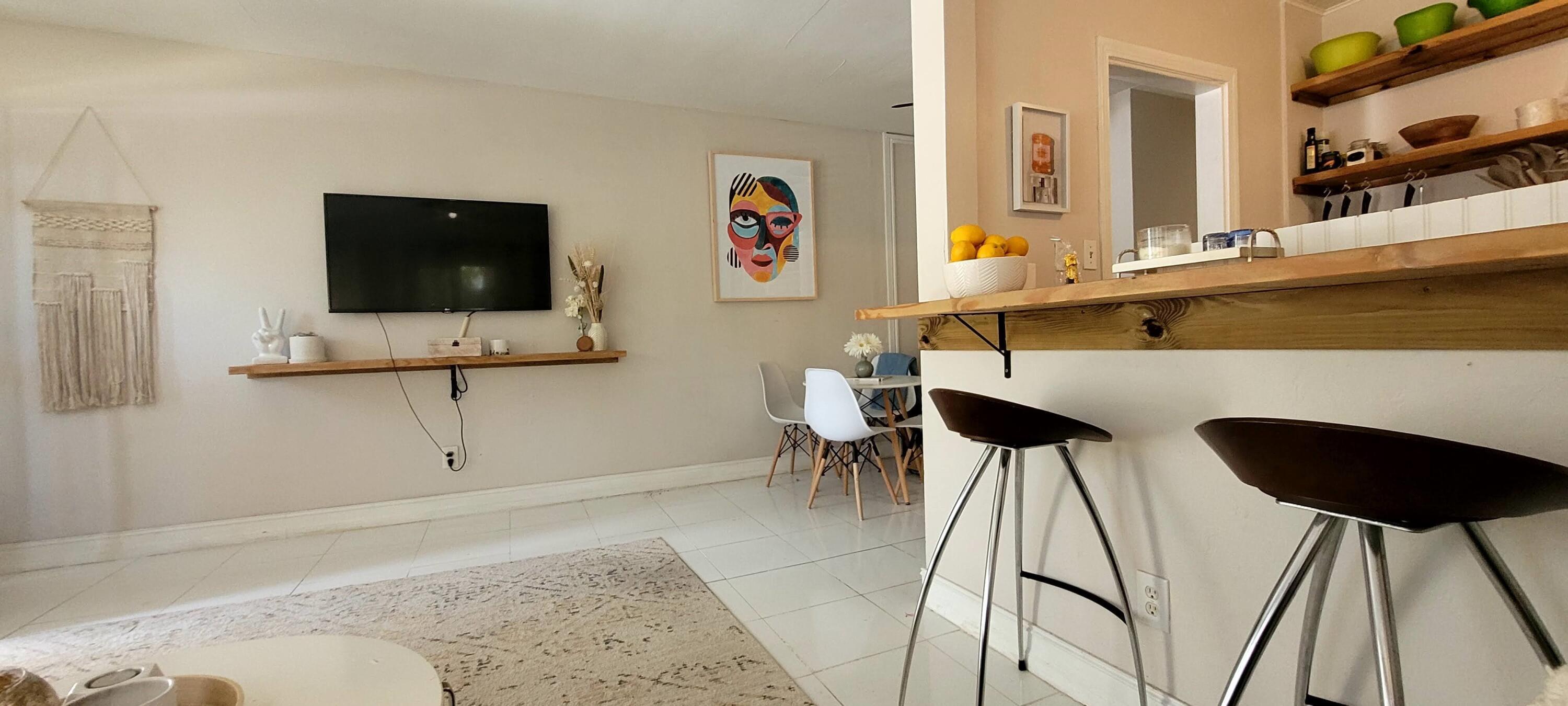 This large 1/1 comes fully furnished in the heart of Flagler village, walking distance to all the great attractions. Tile floors, open kitchen with a walk up bar as well as all the kitchen utensils ready for your move in. The shared lush back yard has a Bali feel for a great bbq gathering space. Laundry on premises and owner pays utilities for an additional $350/mo (water, trash/sewer, wifi and electricity. Great space for dog owners.