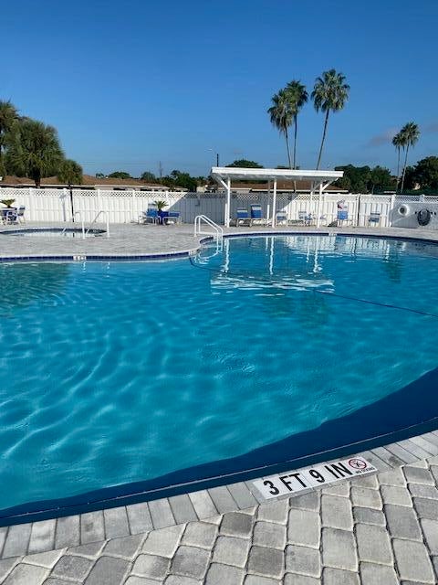 55+ VILLA, BEAUTIFULLY UPDATED, NEW BATH, NEW ROOF, NEW HOT WATER, NEW A/C. COVERED CARPORT, FRIENDLY COMMUNITY WITH LOTS OF ACTIVITIES, BINGO, SHOWS, CARDS, BILLIARDS, PUTTING GREEN, TENNIS, BOCCE, PICKLEBALL, FITNESS, INCLUDES CABLE/HBO AND INTERNET, PEST CONTROL, WALKING DISTANCE TO PUBLIX SHOPPING CENTER, MOVIES, DUNKIN DOUGHN, WALGREENS, WORSHIP, RESTAURANTS.1 MILE TO TURNPIKE, 3 MILES TO 95, 5 MILES TO OCEAN.