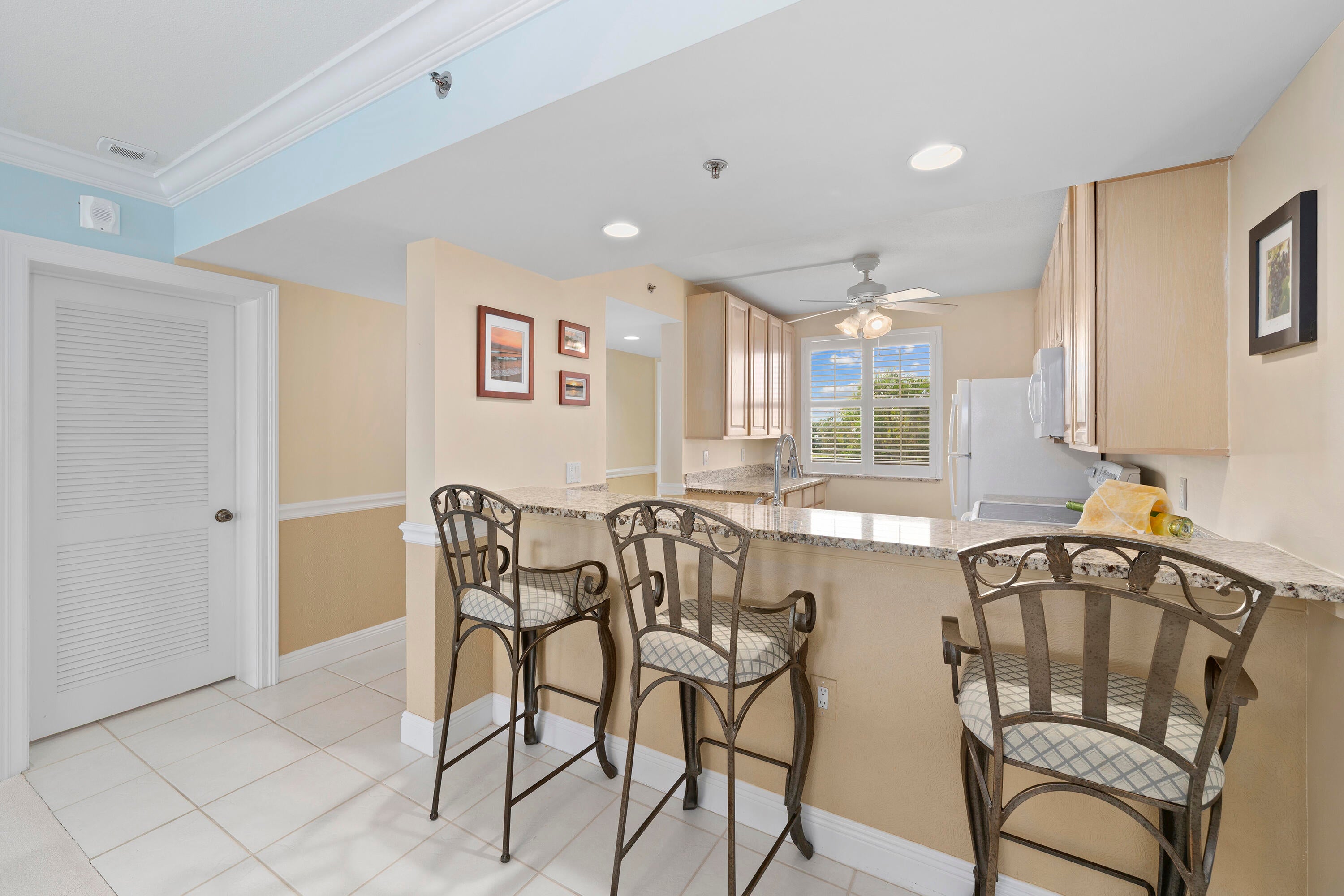 Unit 204 is being offered furnished and turnkey. All it needs is you! Mr Clean Lives here! ALL NEW IMPACT GLASS WINDOWS, SLIDING GLASS DOOR IMPACT DOOR & WINDOWS LEADING TO BOTH BALCONIES, NEW AC WITH SERVICE CONTRACT TRANSFERABLE. LOCATION LOCATION LOCATION You can have it all when living in this beautifully remodeled condo. Ocean views and so close to beautiful Jupiter Beach. This always desirable Bluffs condo has been done with exquisite finishes including, new upscale carpet in living room and bedrooms. The gorgeous custom designed office/laundry area features ceramic tiles as does the hallway entrance, kitchen and two full baths. Extra touches include 7 inch crown molding, textured ceilings (no popcorn!) The kitchen has been carefully planned with the open bar feature.