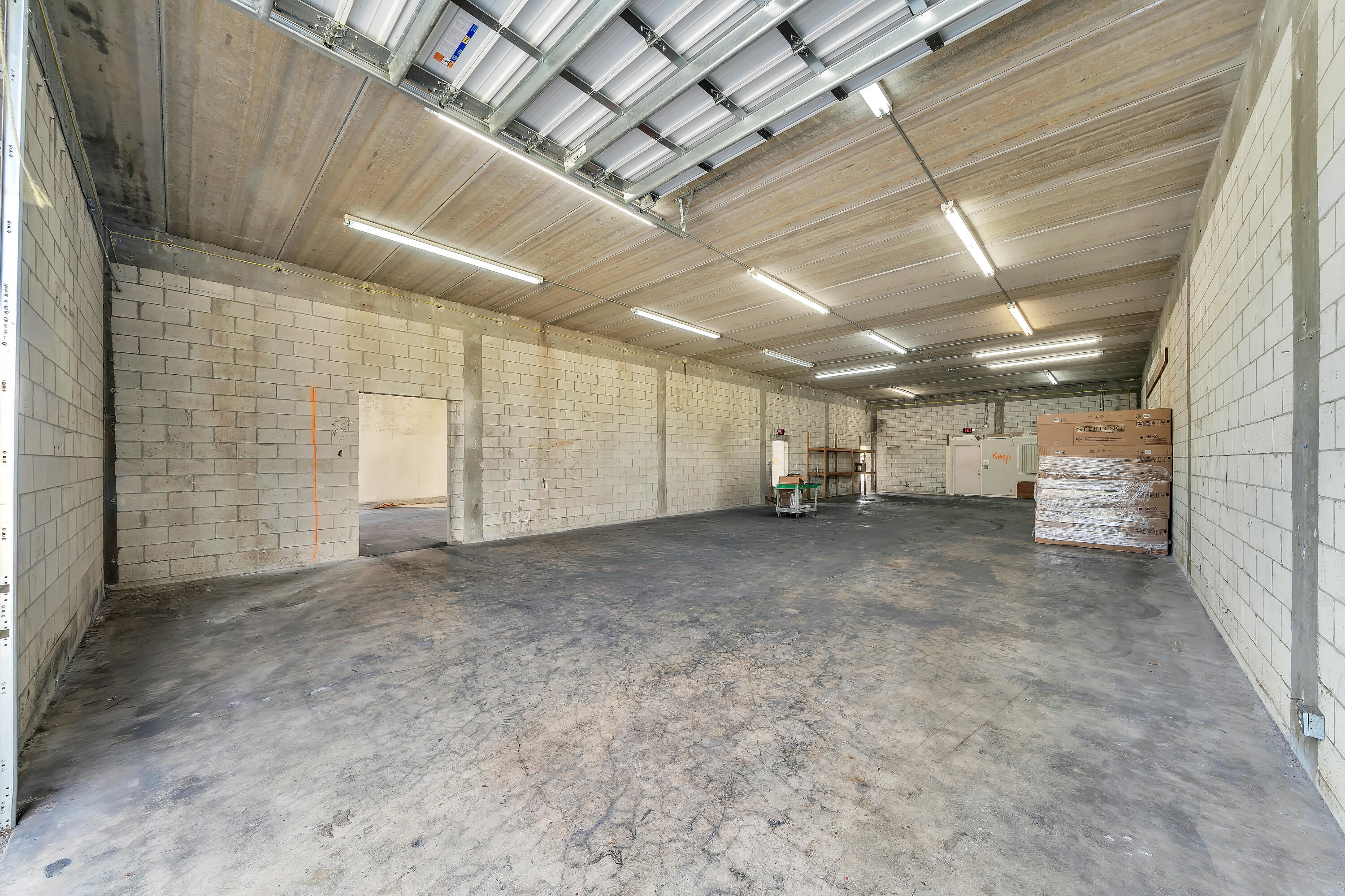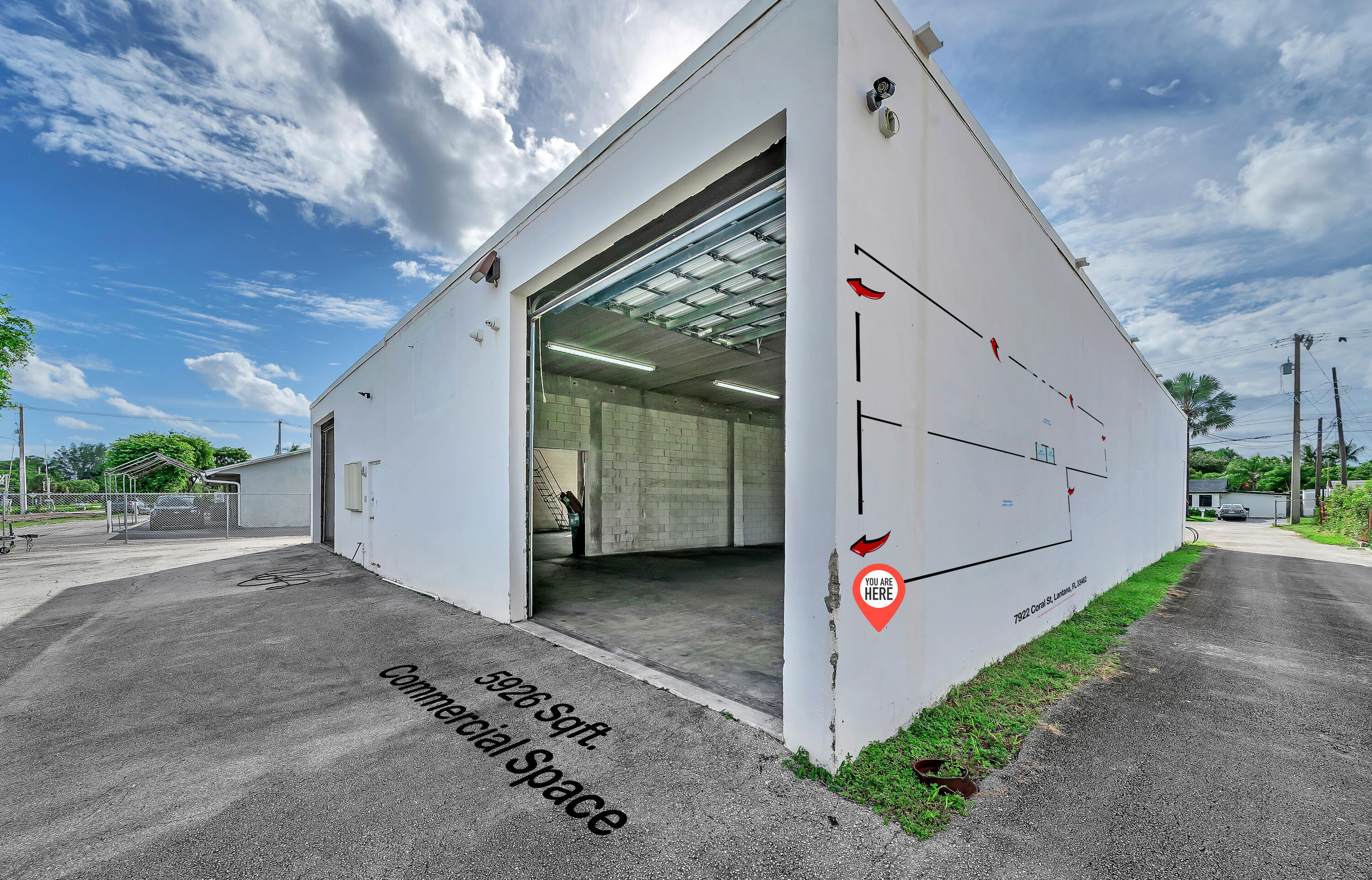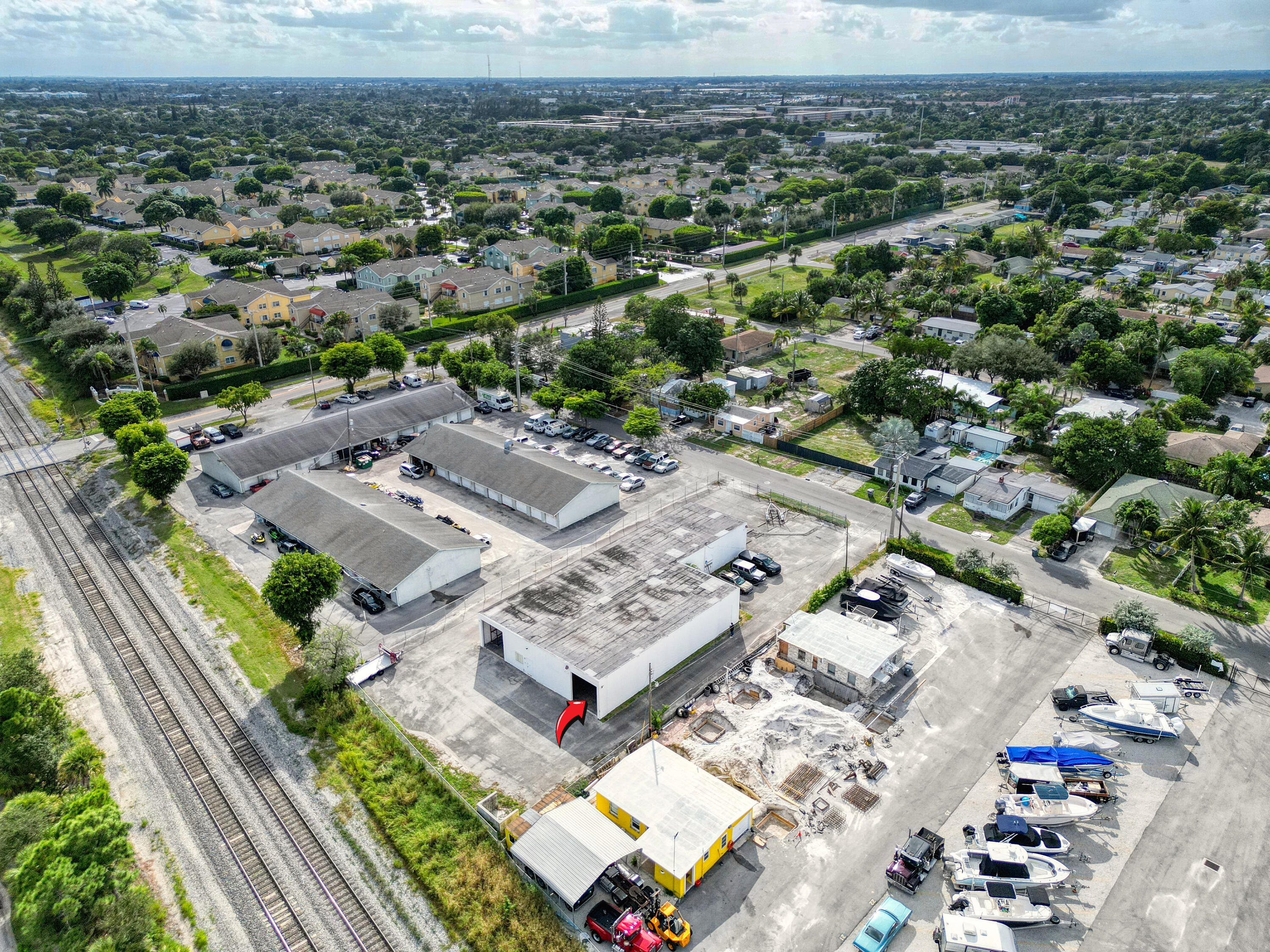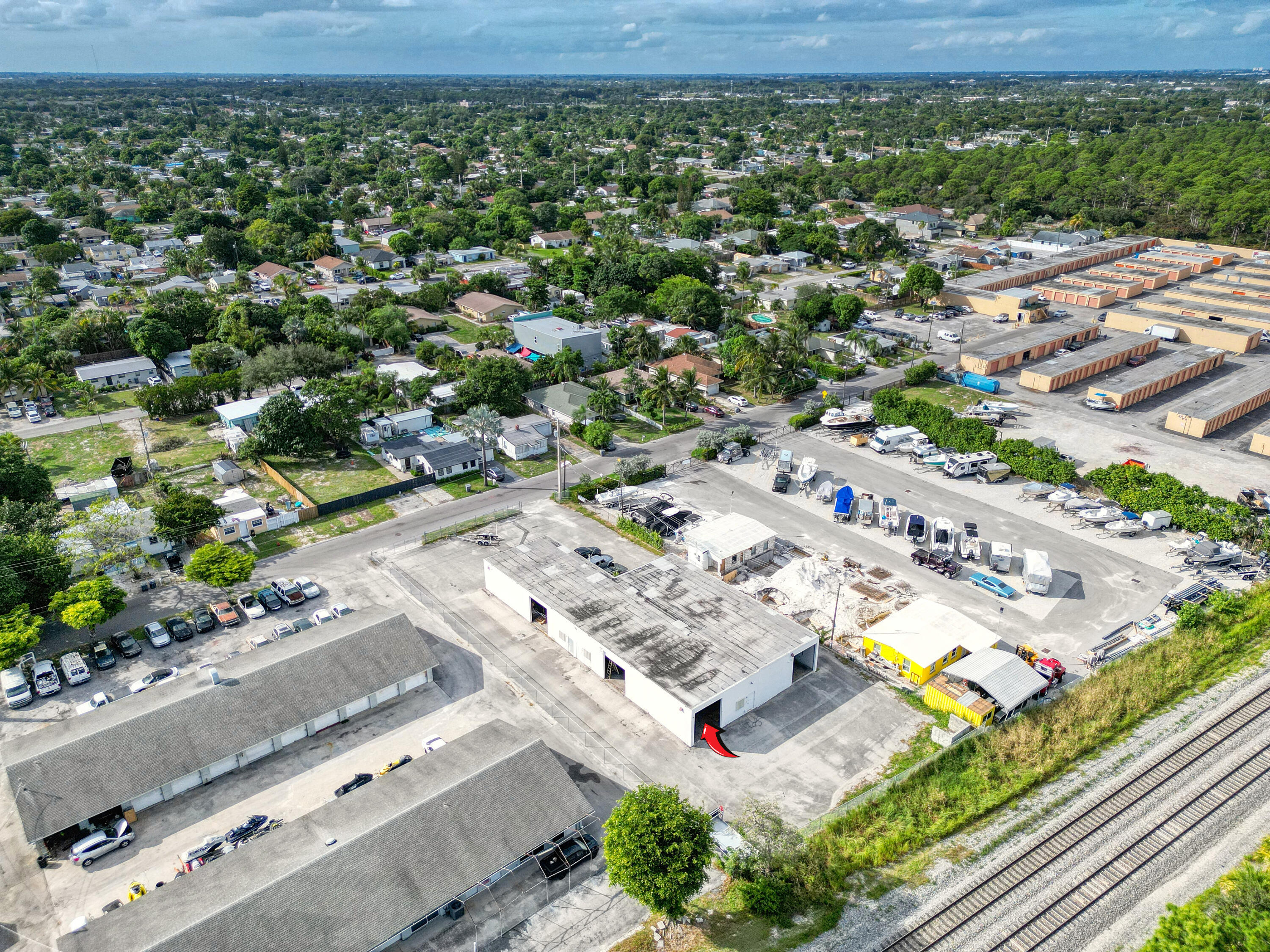 Half-acre secure fenced all paved lot with a free standing 5926' concrete warehouse building. Five 12' tall grade level overhead doors on 3 sides of the building. 13' ceilings . Commercial CS zoning. Institutional and public facilities district. Excellent central South Florida location in east Hypoluxo. Only five minutes to I-95. All sizes are approximate.