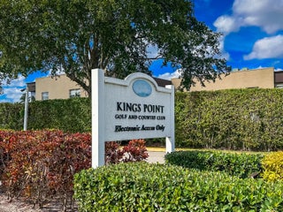 Great Value! Bright and airy ground-floor 1-bedroom, 1.5-bath condo in the highly sought after Kings Point 55+ community. Ideally situated just inside the Linton Gate and within walking or biking distance to the Flanders Clubhouse and Pro Shop.This well-designed unit features an open kitchen, a spacious primary suite, and a screened-in patio perfect for relaxing. Additional perks include one assigned parking space plus guest parking.Enjoy access to Kings Point's resort-style amenities, including indoor and outdoor pools, live entertainment, movies, library, fitness center, billiards, cafe/bistro, beauty & barber shop, arts and crafts studio, community shuttle, golf, and more.All of this just minutes from world-class shopping, dining, entertainment, beaches, and travel options.All of this just minutes from world-class shopping, dining, entertainment, beaches, and trav