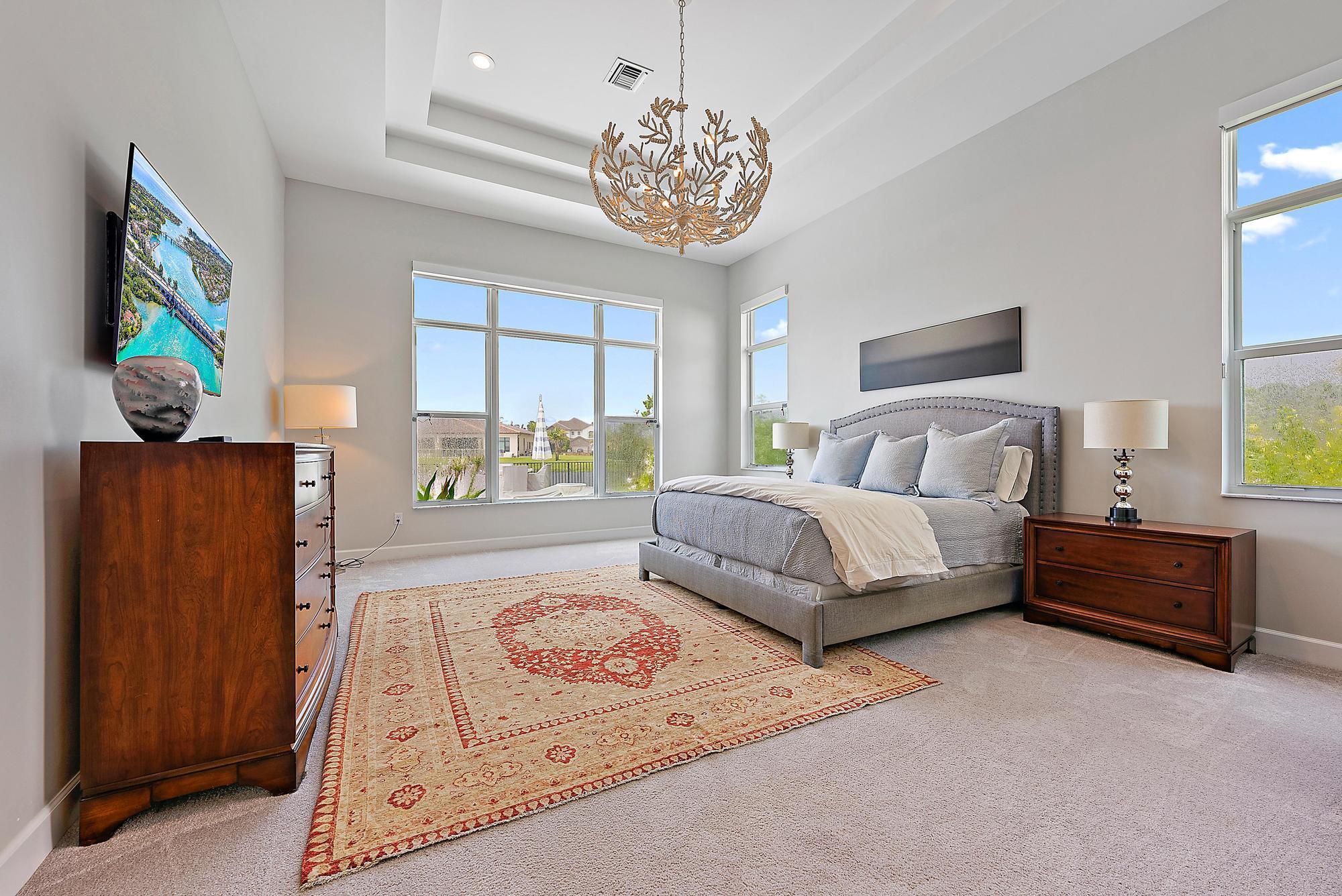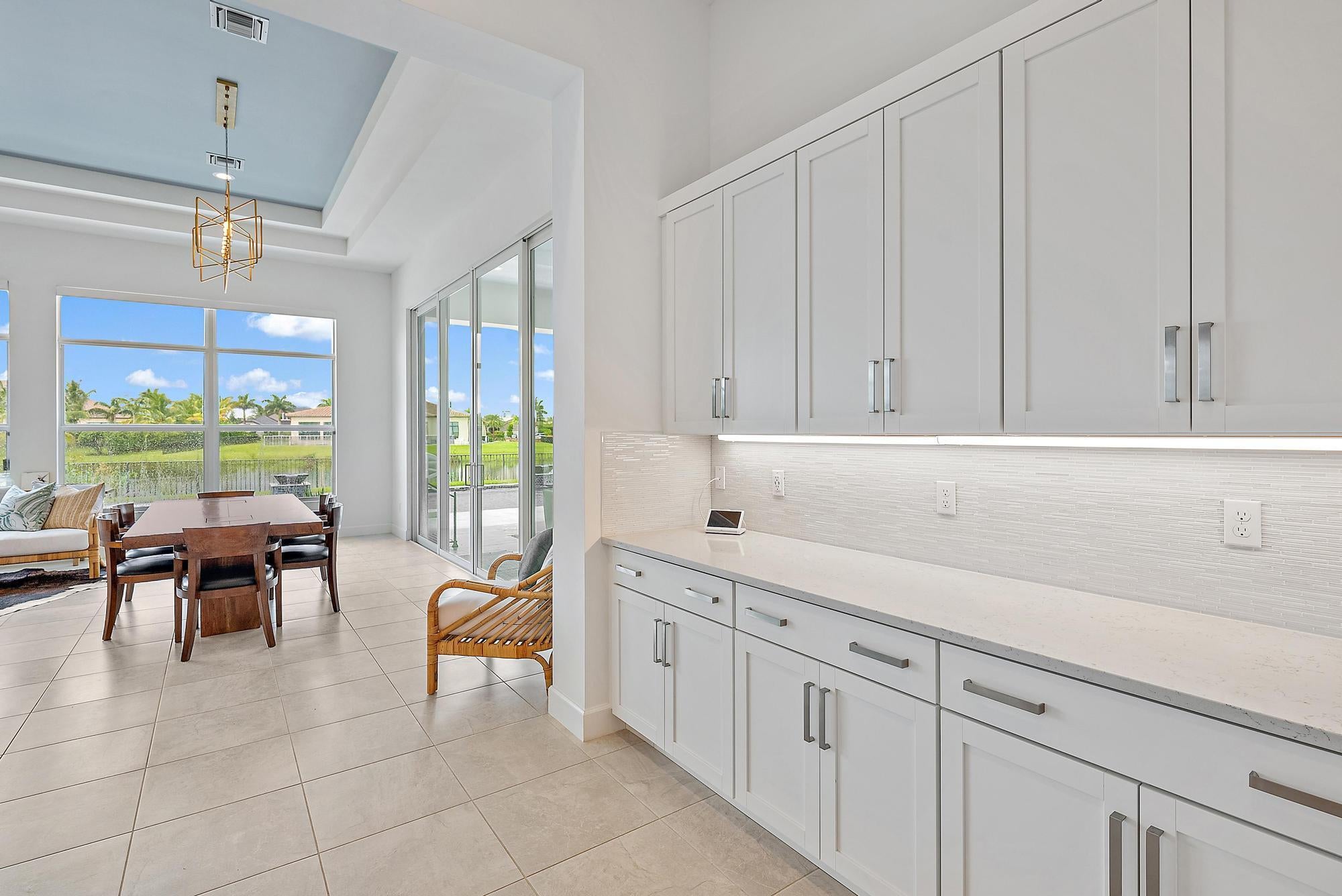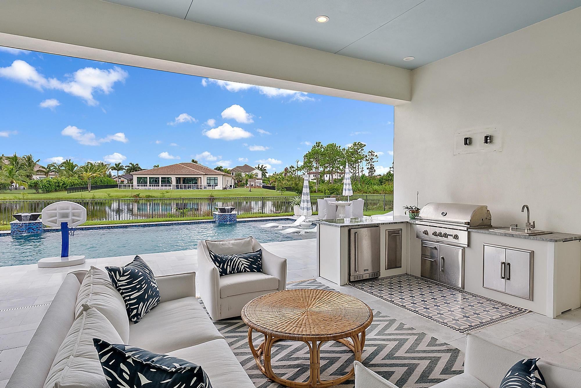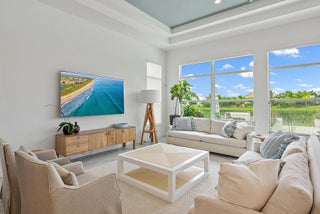 Welcome to this stunningly designed fully decorated and furnished one story residence in the coveted gated community of Prado in Jupiter, FL. Beautifully situated on a 1/2acre + site with long lake views and a natural preserve at the front of the home which makes for a nice buffer. This Manchester model comes with 4 spacious bedrooms accented by a true home office and a wonderful Club Room with sofa, card table, large mounted flatscreen, expansive counter with wet bar and beverage fridgeThe Primary Suite has lovely lake views and a spa like bathroom accentuated by an oversized soaking tub and a spectacular smart shower which is phone operated. The custom shower has a rain head option, body jets, handheld and standard mode. Dual vanities along with separate water closets and a sizable