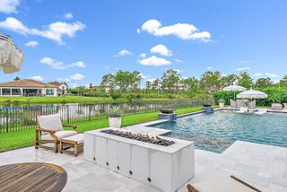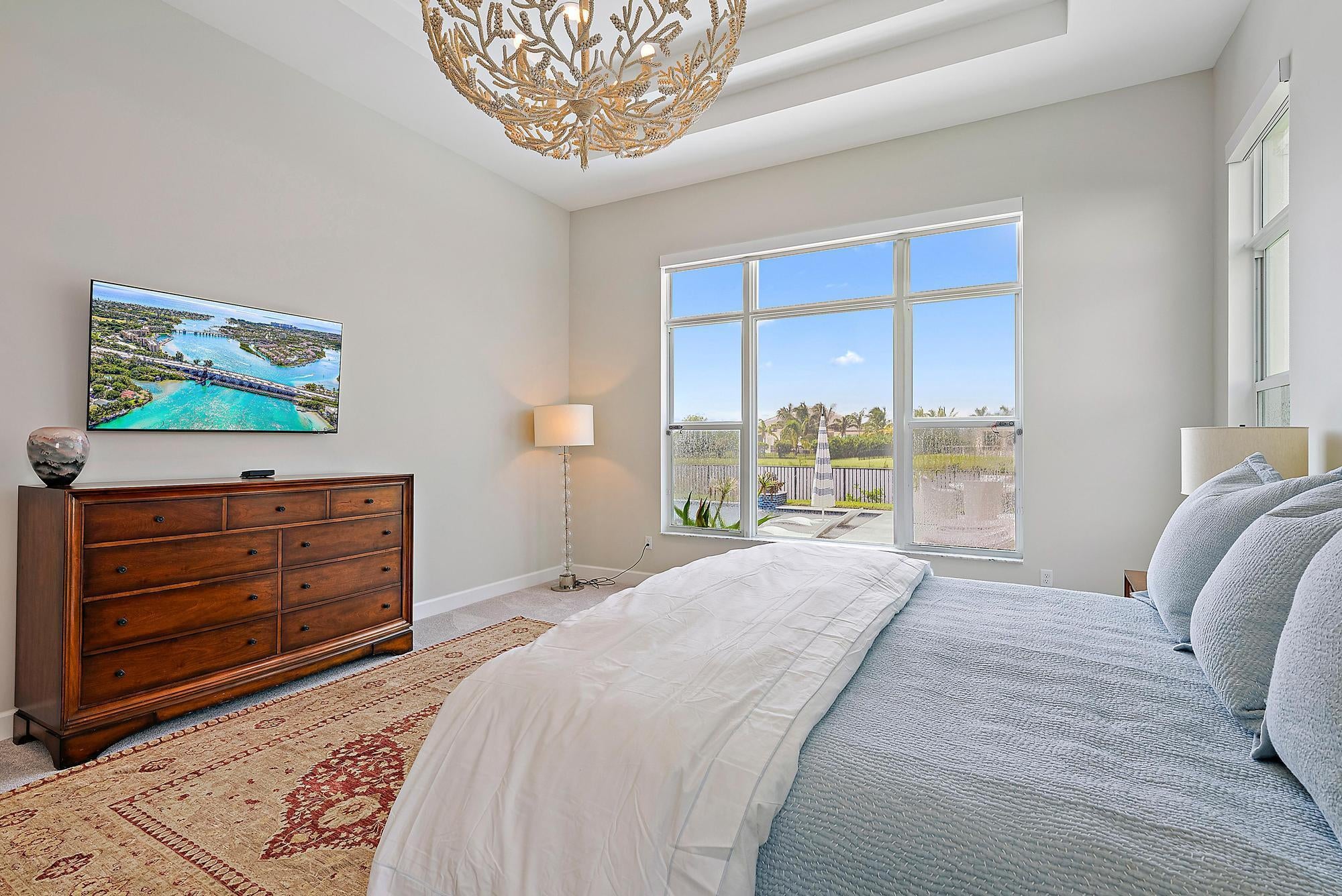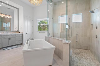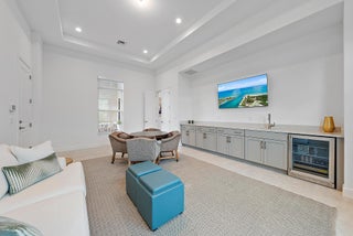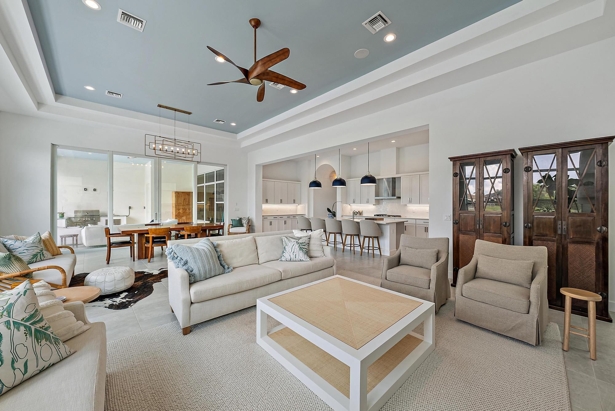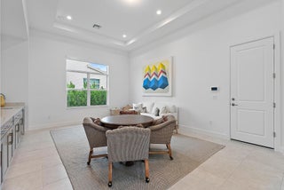 Welcome to this stunningly designed fully decorated and furnished one story residence in the coveted gated community of Prado in Jupiter, FL. Beautifully situated on a 1/2acre + site with long lake views and a natural preserve at the front of the home which makes for a nice buffer. This Manchester model comes with 4 spacious bedrooms accented by a true home office and a wonderful Club Room with sofa, card table, large mounted flatscreen, expansive counter with wet bar and beverage fridgeThe Primary Suite has lovely lake views and a spa like bathroom accentuated by an oversized soaking tub and a spectacular smart shower which is phone operated. The custom shower has a rain head option, body jets, handheld and standard mode. Dual vanities along with separate water closets and a sizable