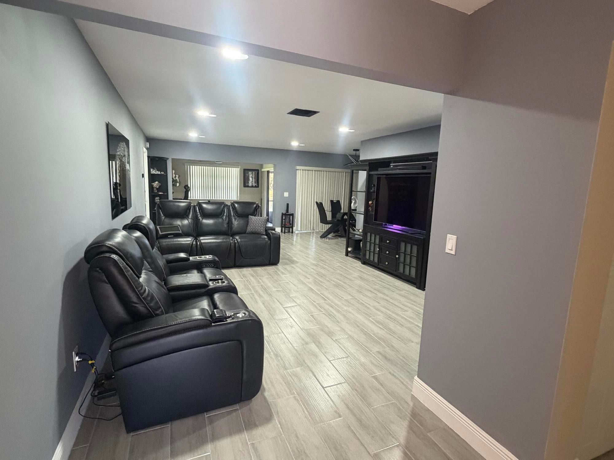 Totally redone single family home in a 55+ community with a one car garage. All new turnkey waterfront home, new kitchen, flooring, appliances, LED lighting, smooth ceilings, remodeled baths, brand New Roof, new tiled flooring, and much more!Excellent community in Greenacres, near expressways and shops.