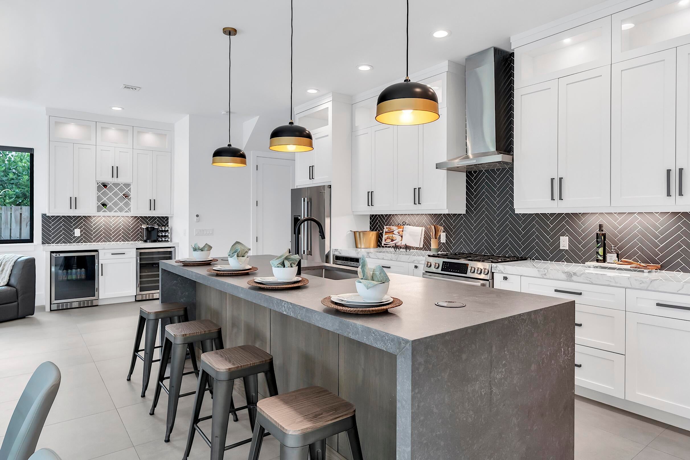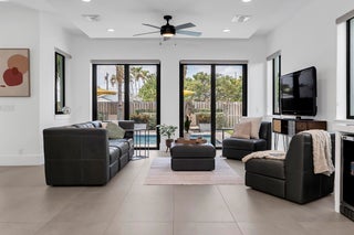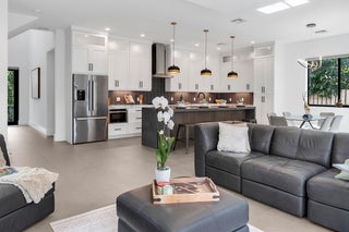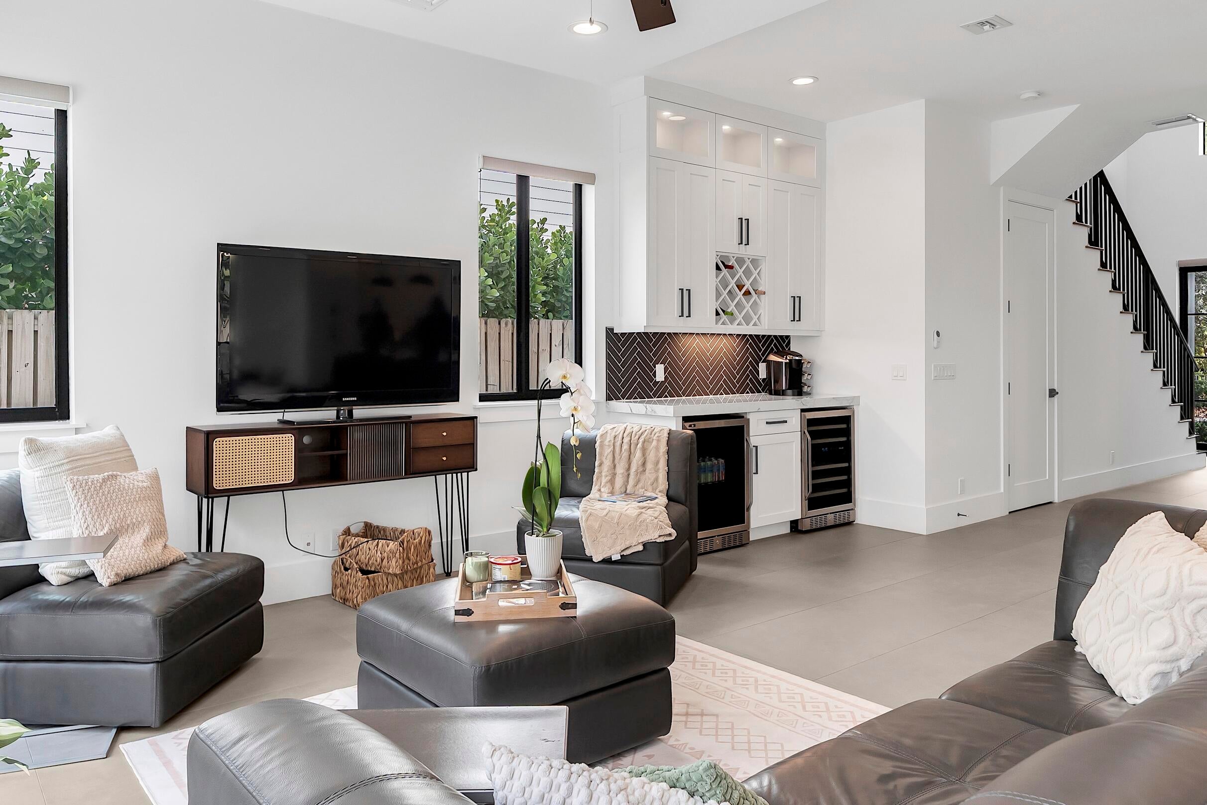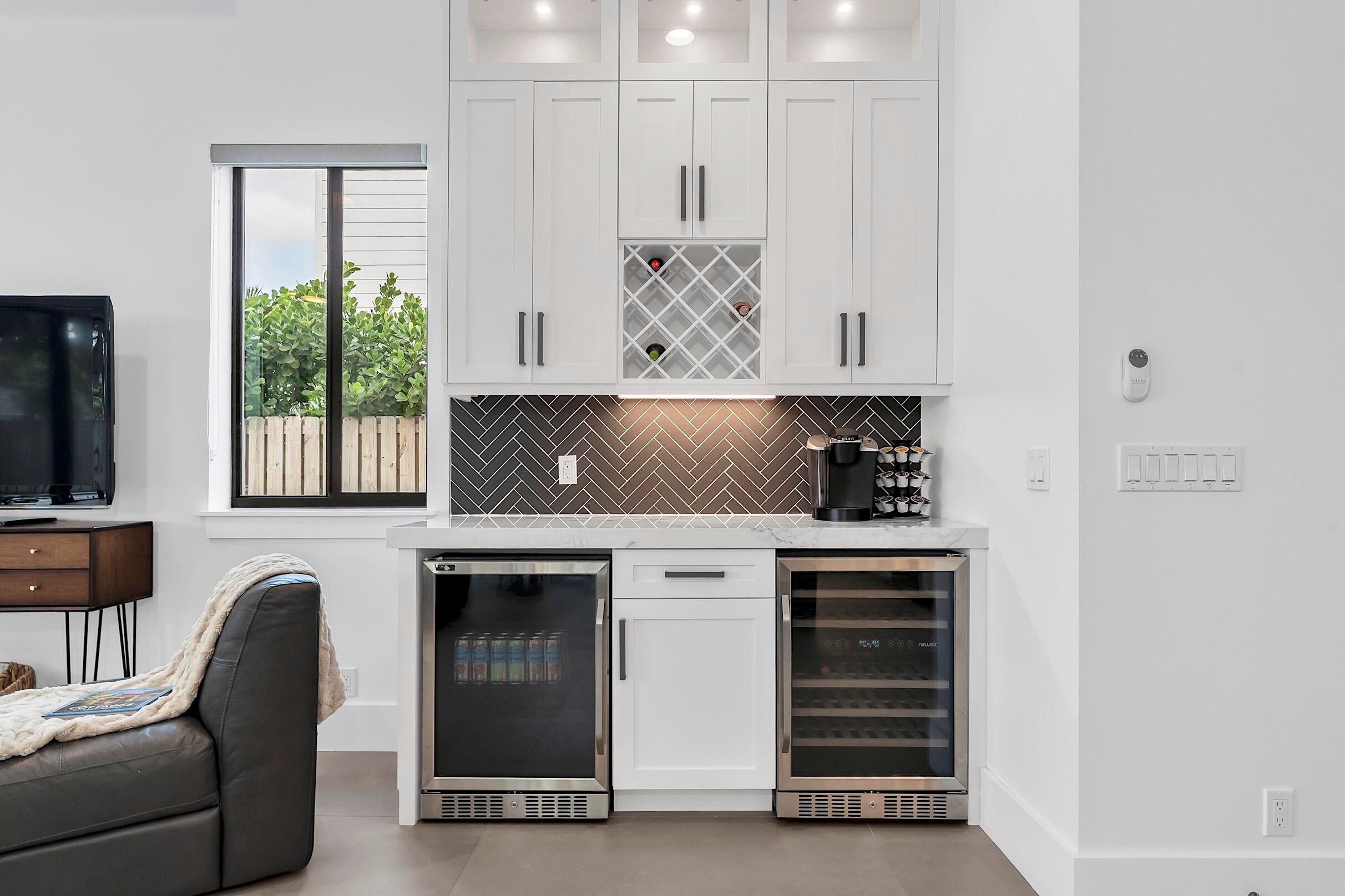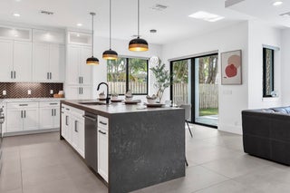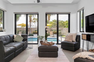 Contemporary coastal gem from an award-winning builder. Over 2500 square feet of living space with 4 bedrooms and 3.5 baths. The open floor plan with soaring ceilings is flooded with natural light and centered around a chef's kitchen, with a living and dining room that fit the space beautifully. Three pairs of oversized sliding doors allow for the seamless transition outdoors to enjoy a quiet morning, dip in the pool, or for hosting a gathering. Upstairs the expansive primary suite greets you with its own balcony, spa bath and custom closets. Additional bedrooms are big, bright and perfect for guests or your growing family. Additional upstairs space is suited for a home gym, den or office. Modern CBS construction with impact glass and a seamed aluminum roof means peace of mind.