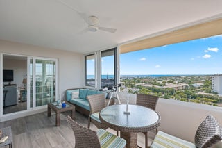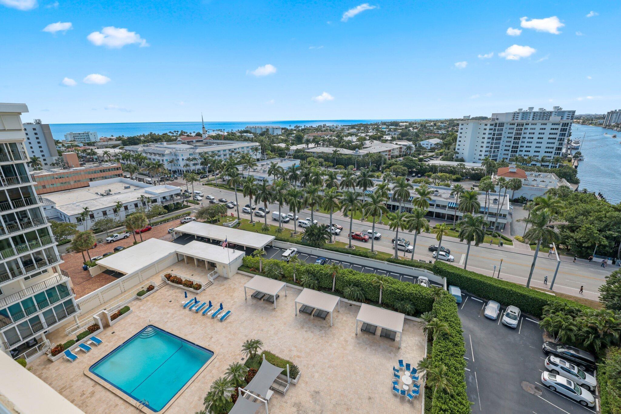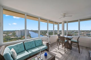 If you think you've seen the best views in Delray Beach, think again. Penthouse Unit 12-J at Barr Terrace is truly unlike any other residence in the building--or anywhere in Delray Beach. Perfectly positioned on the penthouse level, this end unit offers unobstructed sunrise, sunset, and sweeping southern exposure views. Its oversized, enclosed balcony extends far enough to also capture northern vistas, providing a rare full panorama of the Delray Beach skyline, the Intracoastal Waterway, and the Atlantic Ocean.Thoughtfully updated in recent years, the condo features porcelain tile floors with a wood-like finish throughout, electric blackout shades in the bedrooms, and sheer window treatments in the living spaces. Every opening is fitted with impact glass,and dual sets of sliders lead to the expansive balcony. An additional wall of impact glass opens completely, framing what may be the best views in all of Delray Beach. The open-concept kitchen makes cooking a pleasure, with remarkable views from the bar-top seating and throughout the space. Newer stainless-steel appliances, a wine refrigerator, and a combo washer/dryer provide everything you could ask for. Whether you're entertaining in the kitchen, relaxing in the living room, or waking up in either bedroom, breathtaking views of Delray surround you. With stylish new light fixtures and remote-controlled fans, this condo is fully equipped with thoughtful, modern touches. The unit conveys with one assigned, covered parking space, plus ample guest parking for visitors. A temperature-controlled storage locker is ideal for holiday décor, beach gear, or personal items. Barr Terrace has passed all required milestone certifications and reserve studies. The newly renovated lobby offers a grand entrance with rotating front desk attendants and multiple inviting common areas. The resort-style pool deck has just been completed, featuring new cabanas and a grill area. Residents also enjoy a full-sized fitness center equipped with weights and cardio machines. This is the premier penthouse on the market in Delray Beach, located in one of the city's most ideally positioned buildings on Atlantic Avenue and the Intracoastal. Don't miss it.