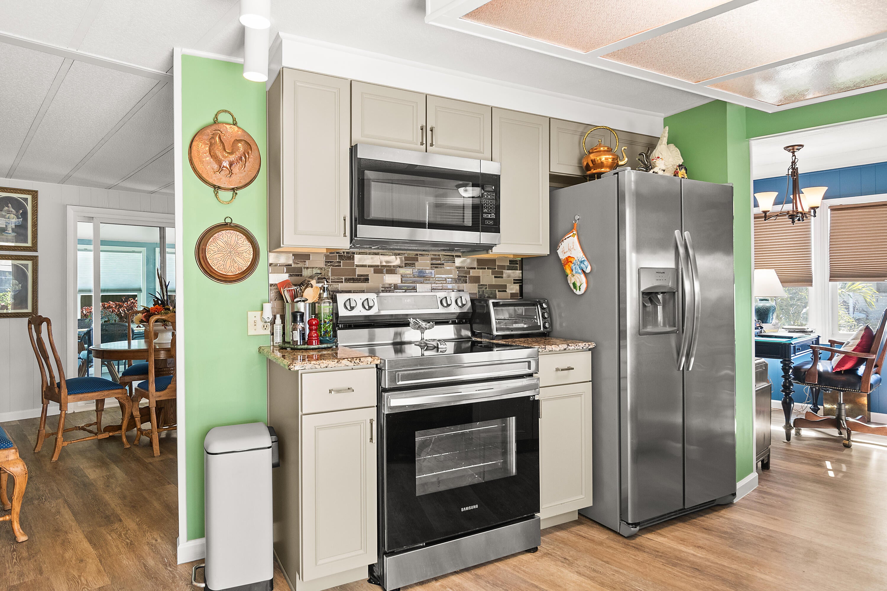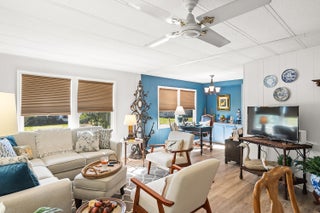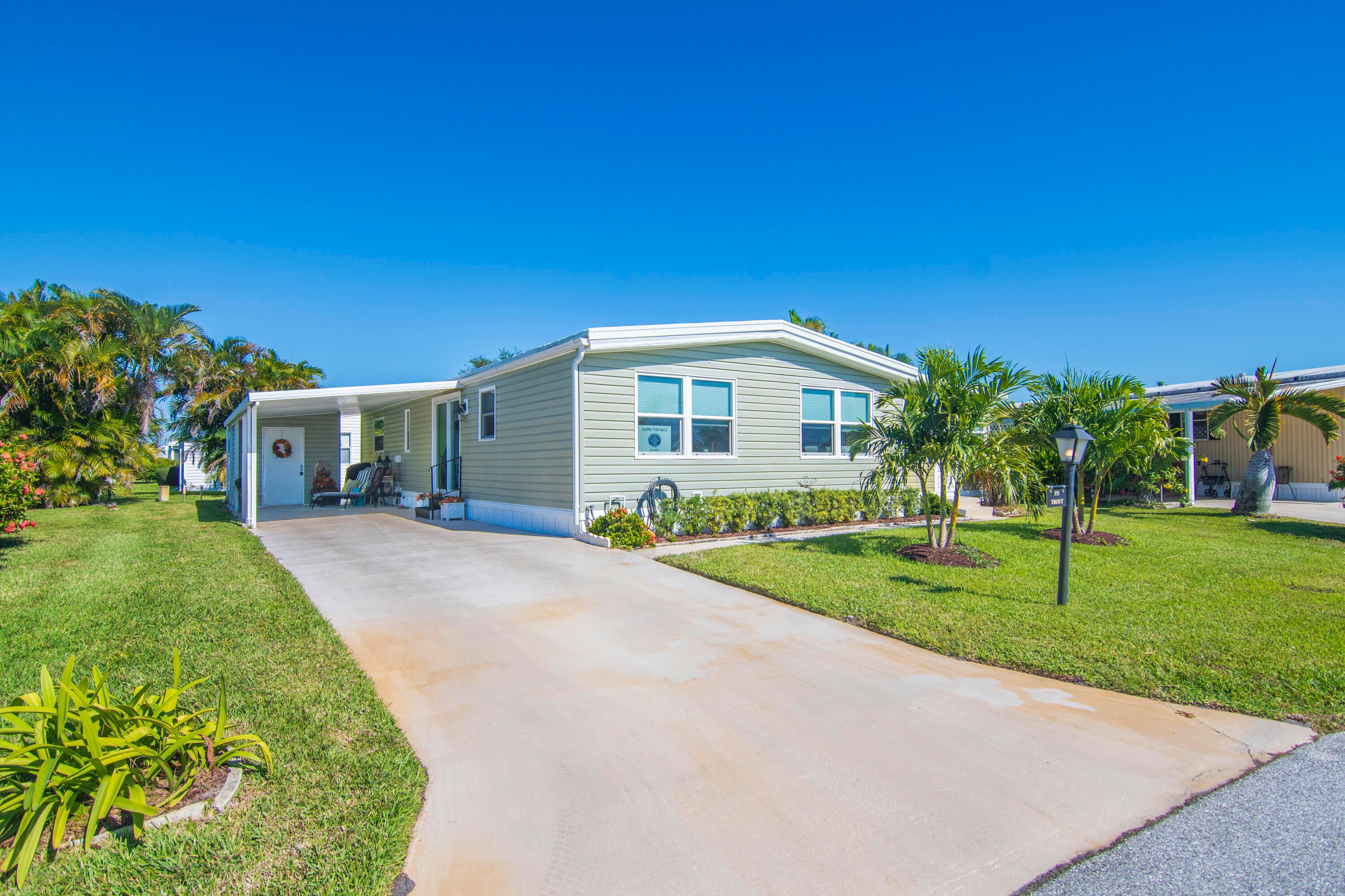Welcome to 151 Sharyon Lane, Jensen Beach, Florida! This charming double-wide home is nestled in the sought after 55+ community of Pinelake Village, just minutes from the ocean. This beautifully maintained 2-bedroom, 2-bath home features a remodeled kitchen, updated bathroom vanities, new siding, new windows, and new doors. You will also love the year-round Florida Room newly enclosed in 2023!Lot rent is $765 per month and includes cable, trash removal, recycling and all the amenities of the clubhouse.