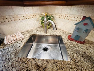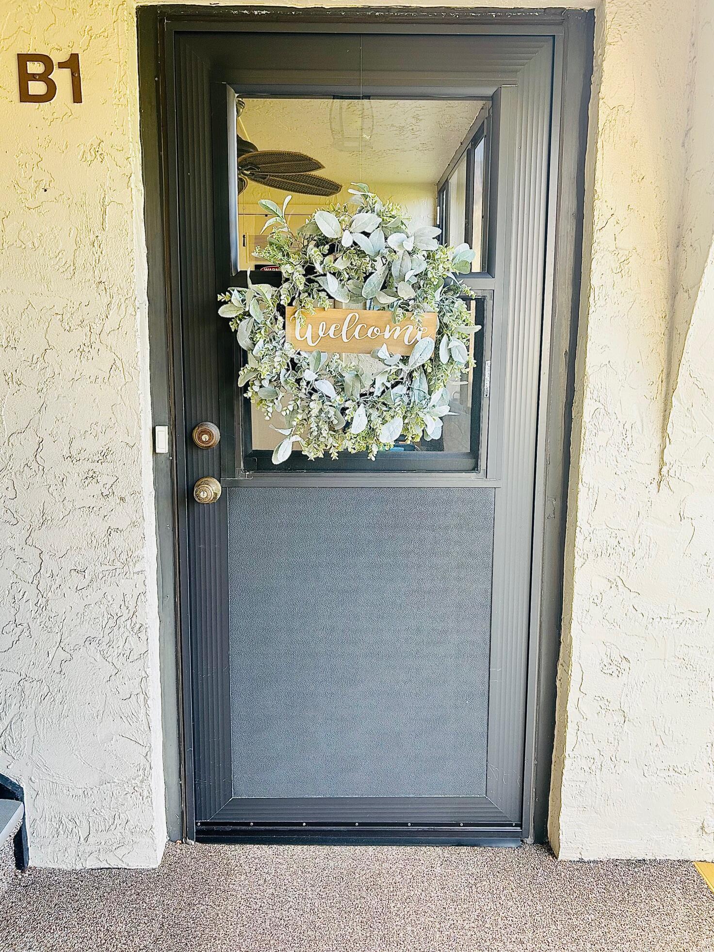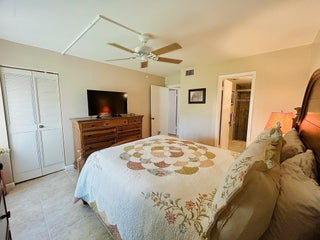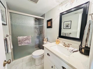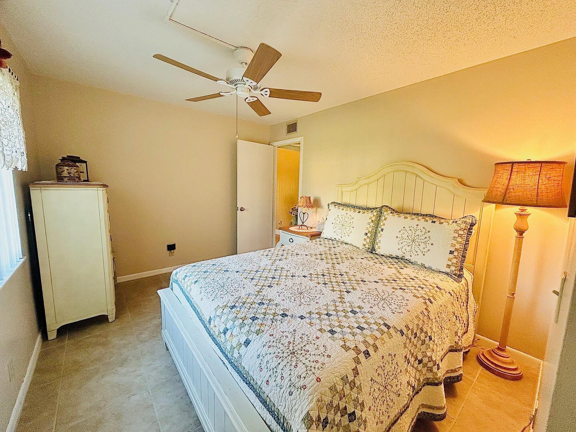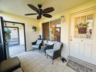 Welcome to your new home. This custom designed 2 bedroom 2 bath has all the upgrades and more. Owner is a custom home builder and renovated this space with convenience and style in mind. The kitchen features solid wood cabinetry including a custom built food pantry tucked into the wall next to the laundry room, granite countertops, travertine backsplash and top of the line Black stainless steel Samsung appliances. Conveniences like the deep single stainless steel sink, faucet w pull down sprayer, garbage disposal, dishwasher has stainless steel tub and self cleaning flat top range. Laundry room located off kitchen has custom built shelving and cabinets. Both bathrooms are modernly designed with fully tiled shower areas complete w niche, chair height oval toilets and solid wood vanities.Both bedrooms have walk in closets and HURRICANE IMPACT WINDOWS. The community offers many amenities including a clubhouse, heated pool located on the lake, walking path around the lake and clubhouse activities. This is the only section that has pickleball/tennis courts. The low monthly maintenance of $445.90 includes cable, lawn care, building maintenance, assigned parking spots, and manager on site.