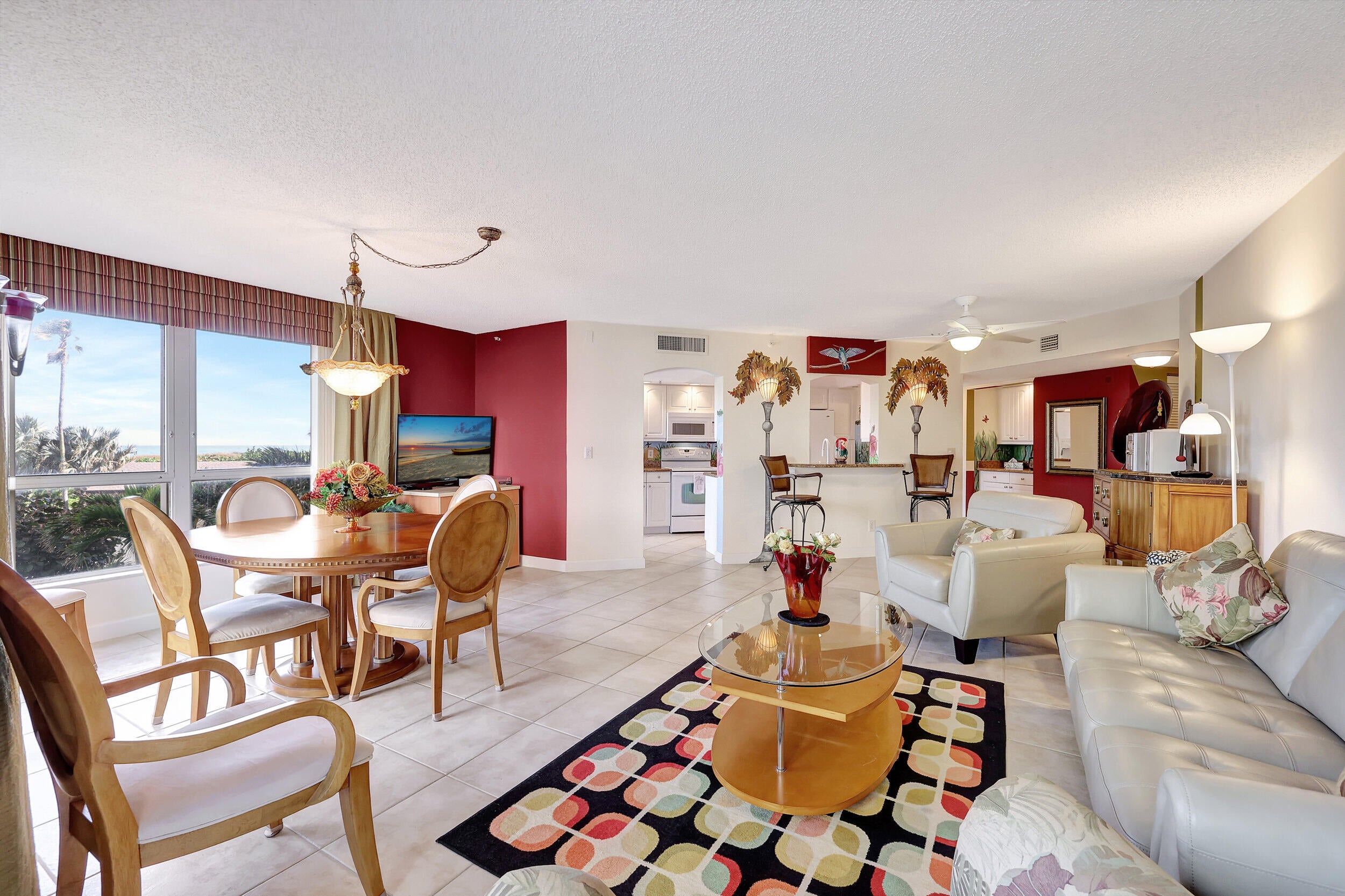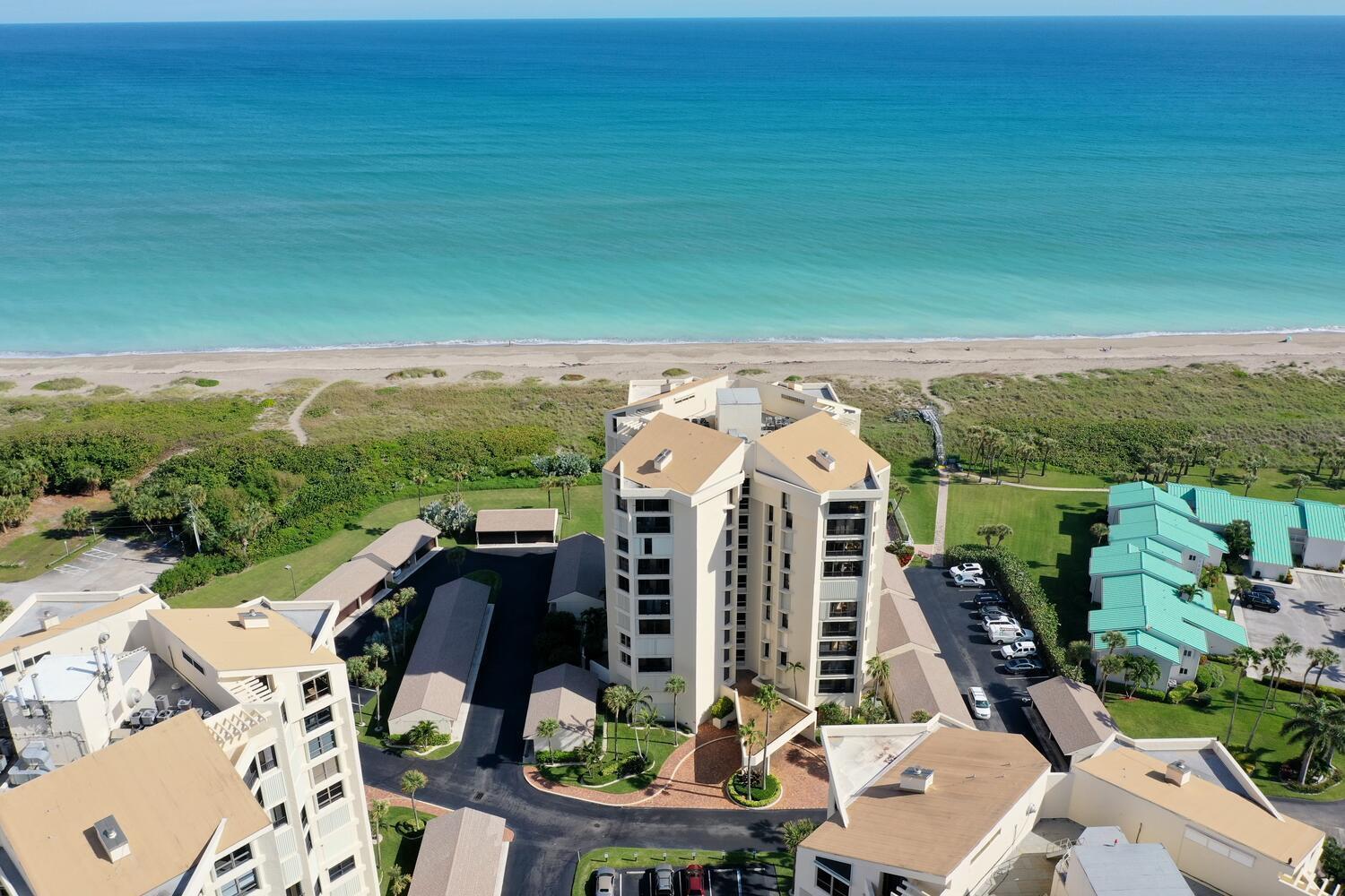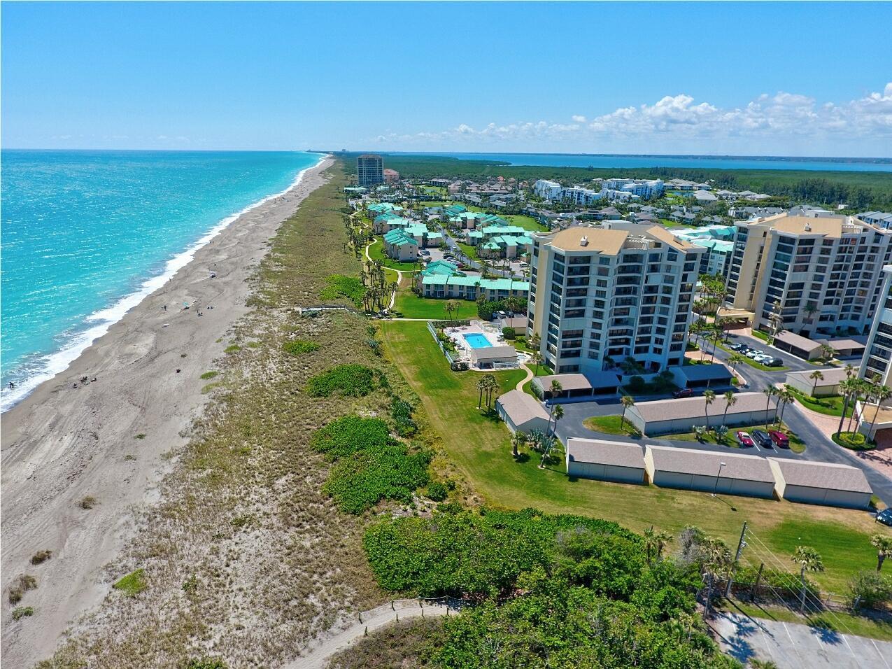 Beautiful 2 bedroom 2 bath furnished ''Seascape '' condo at Ocean Village! Plus a 1 car garage! Upgraded condo including new AC & new water hearter both in 2025. Direct oceanfront building only steps to the beautiful turquoise ocean & sparkling private Seascape pool! Enjoy the resort style amenities at this beautiful oceanfront community including 9 hole par 3 golf, new state of the art clubhouse & fitness center, tennis, bocce ball, pickleball, new main pool plus 3 other heated pools, shuffleboard, library, oceanfront restaurant & tiki bar & 3500 feet of oceanfront! This tropical paradise is located on South Hutchinson Island with 21 miles of uncrowded & unspoiled beaches! Short stroll to downtown waterfront with farmer's market, Sunrise Theatre & so much more! Measurements approximate.