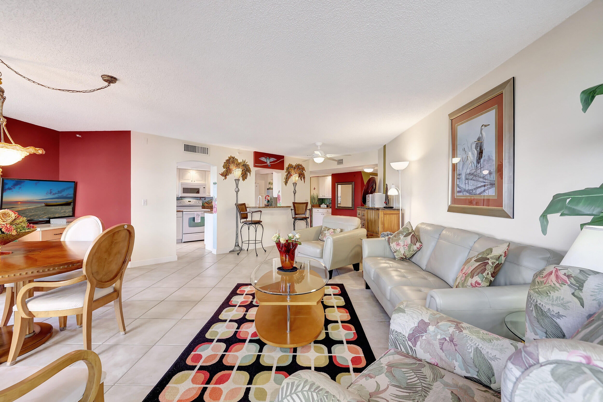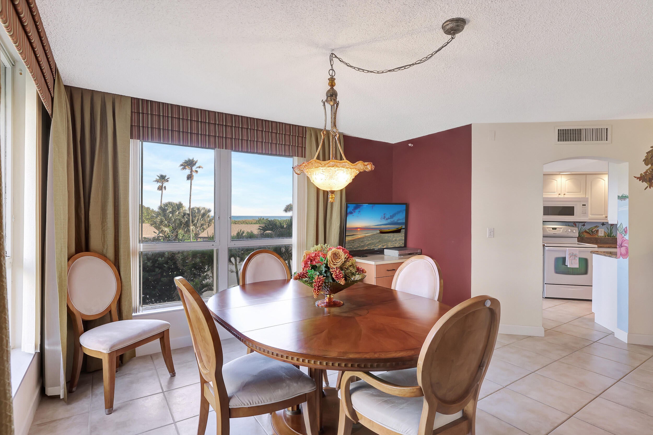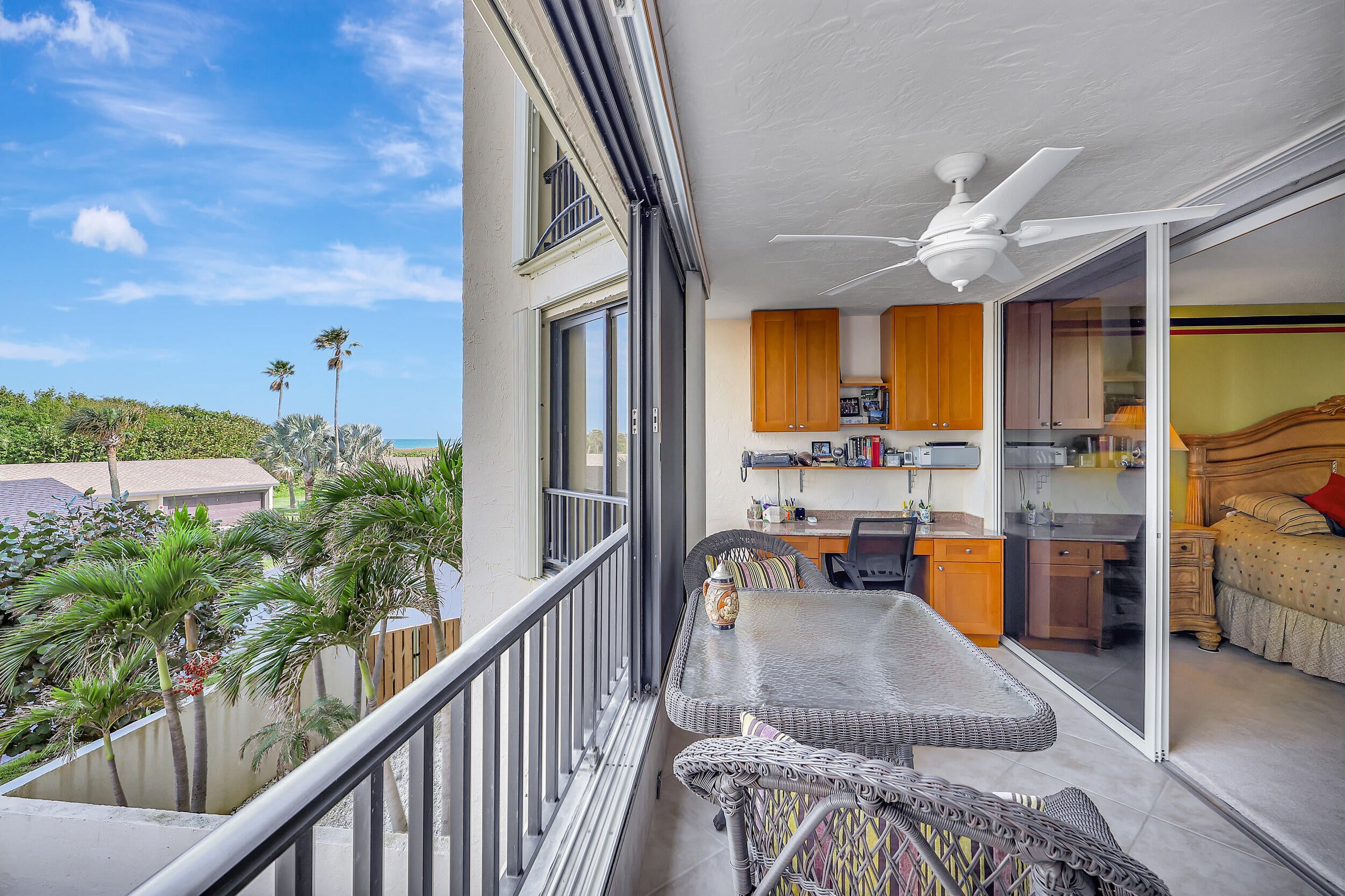 Beautiful 2 bedroom 2 bath furnished ''Seascape '' condo at Ocean Village! Plus a 1 car garage! Upgraded condo including new AC & new water hearter both in 2025. Direct oceanfront building only steps to the beautiful turquoise ocean & sparkling private Seascape pool! Enjoy the resort style amenities at this beautiful oceanfront community including 9 hole par 3 golf, new state of the art clubhouse & fitness center, tennis, bocce ball, pickleball, new main pool plus 3 other heated pools, shuffleboard, library, oceanfront restaurant & tiki bar & 3500 feet of oceanfront! This tropical paradise is located on South Hutchinson Island with 21 miles of uncrowded & unspoiled beaches! Short stroll to downtown waterfront with farmer's market, Sunrise Theatre & so much more! Measurements approximate.