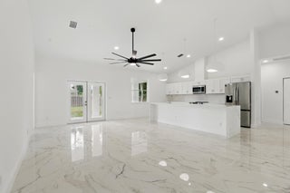 MOVE IN READY BRAND NEW CONSTRUCTION 2025 CBS BEAUTIFUL HOME !! . Perfect layout that every homeowner is looking for, when entering you will encounter a high volume ceiling in a spacious living and dining room. Beautiful and comfortable seating island Calacatta Quartz. This spacious kitchen offer premium soft closing cabinets along with upgraded features appliances. Modern and spacious bathrooms one with a tub and other with a shower with dual sink for his and her. Luxury tile flooring throughout the house. IMPACTED WINDOWS AND GARAGE DOOR. Outside , spacious cover patio . Home is well centered near schools, grocery stores, minutes to Downtown Fort Pierce and 10 minutes away from the beach. Come check it out !