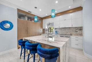 Sophisticated, move-in ready, and impeccably designed, this standout end-unit townhome offers 2,938 square feet under air and was fully renovated in 2021 by Alacasa Design Studio. Thoughtfully curated for refined coastal living, the light-filled interiors showcase 24x48 European porcelain tile, a striking modern circular staircase, crown moldings, and automated blinds throughout. The chef's kitchen is both functional and elegant, featuring Thermador WiFi-enabled appliances, custom two-toned cabinetry, Oyster White marble countertops, a waterfall island with prep sink, and a concealed walk-in pantry. The open-concept living and dining areas flow seamlessly to multiple covered balconies--perfect for effortless indoor-outdoor entertaining. The primary suite captures sweeping ocean views andoffers custom his-and-hers closets and a spa-inspired bath with dual floating vanities, designer lighting, and an oversized walk-in shower. Two additional bedrooms include a versatile guest suite with built-in office and Murphy bed. The designer club room is a true showpiece and sets this residence apart. Located on the lower level, it functions as a private lounge, media room, and entertaining space all in one. Featuring a custom wet bar, dramatic back-lit media wall, and floor-to-ceiling sliders opening to the fenced yard, it offers a rare, resort-style extension of the homeideal for hosting guests, movie nights, or relaxed evenings after the beach. Additional home features include impact glass throughout; two newer A/C systems (2021 & 2022) with warranties; elevator; central vacuum; whole-home water filtration and reverse osmosis systems; epoxy-finished garage floors; and abundant storage throughout. Set within a gated, private, and pet-friendly oceanfront community, residents enjoy rare direct beach access along with HOA coverage that includes flood insurance, roof maintenance, landscaping, and more ($1,800/month). The community roof was updated in 2020, reinforcing long-term peace of mind and low-maintenance ownership. This is Florida living at its finestnewly renovated, beautifully designed, and completely private. Wake up steps from the sand, enjoy coffee on your own stretch of beach, and come home to a residence that feels both luxurious and effortless. Beachside, peaceful and exceptionalthis is how coastal life is meant to be lived.