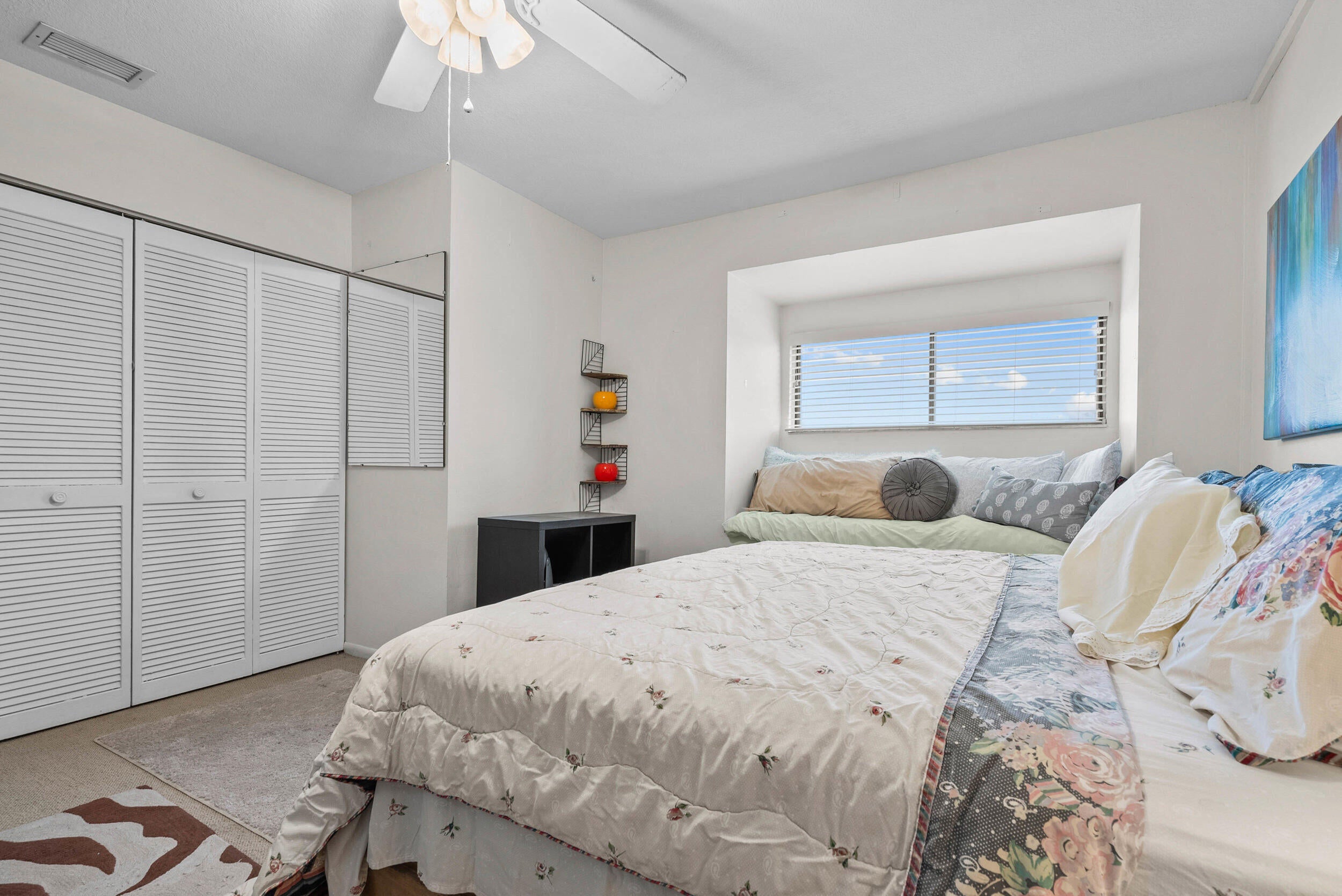Private tropical oasis in Delray's highly desirable WoodLake community! This spacious 4 bedrooms/3 full Baths 2127 sqft townhouse lives like a single-family home features an open concept living room with volume ceilings, master bedroom on ground floor, the 2nd & 3rd bedrooms are upstairs w/ Jack & Jill bathroom and lots of natural light. The 4th bedroom allowing more living space could be used as an office with its own entrance. Washer & Dryer inside, New A/C. The tropical landscaped courtyard with huge backyard, screened patio with room for pool/spa, WoodLake offers many amenities: including community pool, clubhouse, fitness center, tennis, pickleball, and basketball courts. Low HOA fee of $242month includes cable & internet. Pet-friendly community allowing up to 2 pets,100 lbs each.