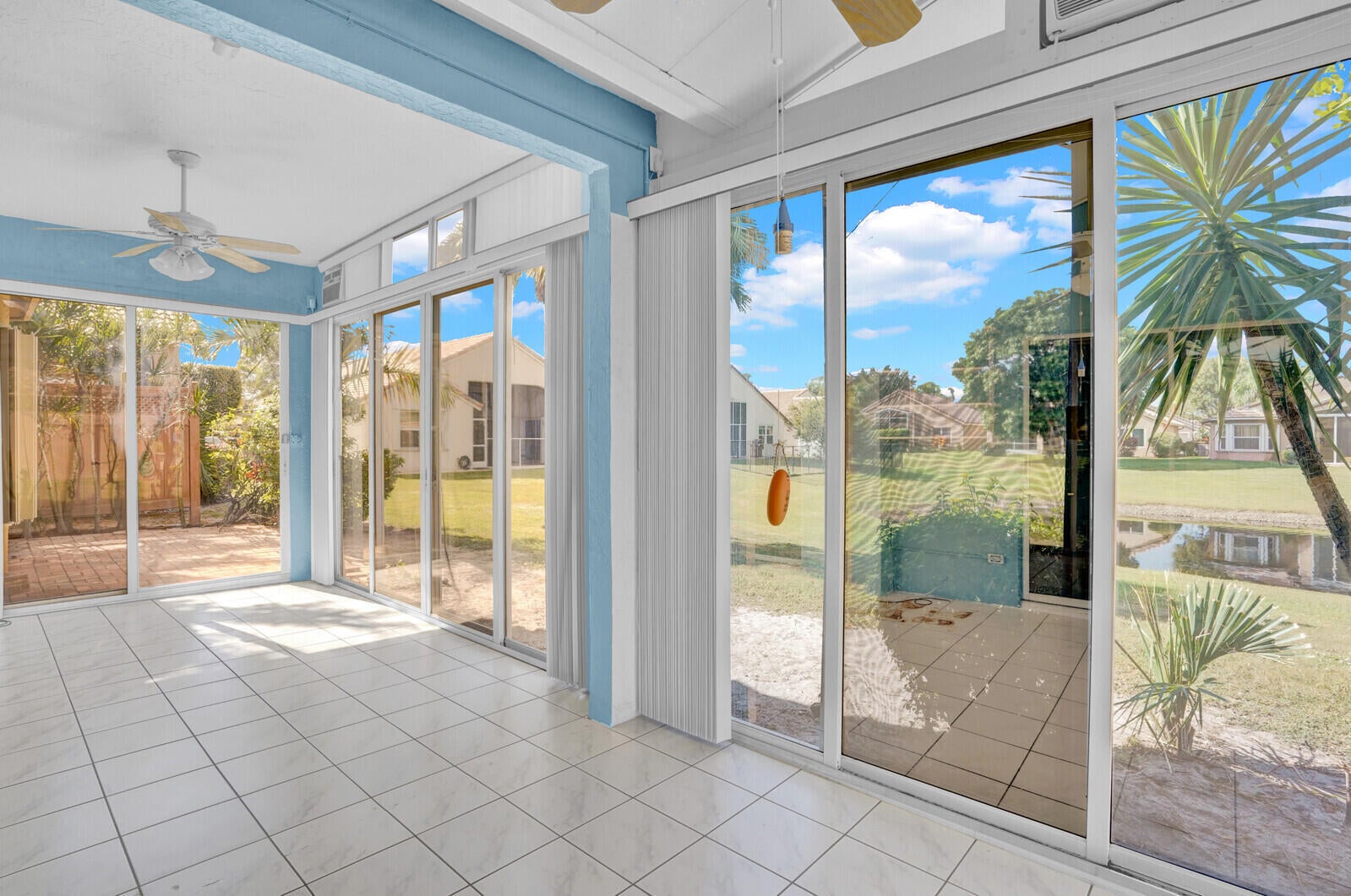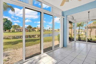 Nestled within the gated community of Newport Cove in West Delray Beach, this beautifully situated lakefront home showcases water views and airy interiors accented by impressive high ceilings. Offering 3 bedrooms and 2 bathrooms, the residence delivers a spacious, naturally bright layout enhanced by thoughtful upgrades and a strong structural foundation. The home benefits from extensive upgrades including a brand-new roof (2025), a renovated kitchen (2020) with a new refrigerator (2025), and an air conditioner replaced just two years ago. The former screened porch has been fully enclosed and outfitted with window air units, adding approximately 270 square feet of additional under-air living space--perfect for a sunroom, studio, or flexible bonus area. There remains an invitingopportunity to infuse your own style through cosmetic updates ideal for buyer looking personalize a well-maintained property without tackling major projects. Step outside to a paved open patio where tranquil lake views set the tone for peaceful mornings and relaxing evenings. Accordion shutters on the front and side windows add peace of mind for storm protection. Newport Cove is a pet-friendly, meticulously kept community offering a lifestyle rich with amenities: a clubhouse, fitness center, community room, pickleball courts, swimming pool, and tennis courts. Located just moments from the shops, dining, and entertainment of Delray Marketplaceand a short drive to Atlantic Avenue and Delray's renowned beachesthe home also provides convenient access to both the Florida Turnpike and I-95, as well as PBIA and FLL airports. With sparkling lake views, soaring ceilings, solid upgrades, and an unbeatable Delray Beach location, this home is ready for its next chapter.