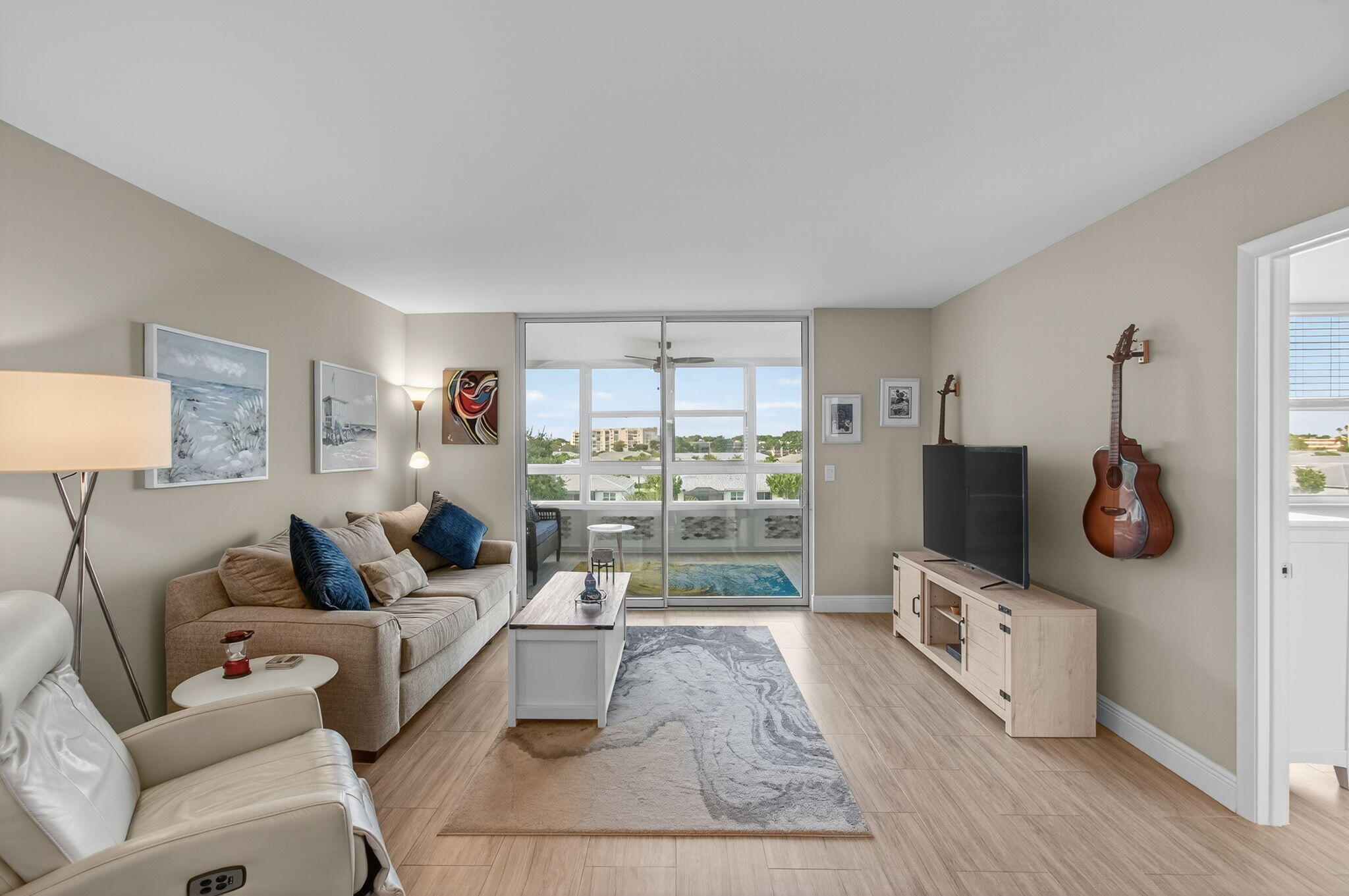 Bright and fully renovated top-floor 2BR/2BA condo in the desirable Abbey Village 55+ community. This move-in-ready home features an open kitchen with white countertops, stainless finishes, and tile flooring throughout (no carpet). Upgrades include impact windows, updated bathrooms, an in-unit washer and dryer, and a spacious enclosed balcony perfect for added living space and beautiful Florida sunsets.The building offers excellent peace of mind with a new roof (2023) and completed milestone inspections. As a top-floor residence, you'll enjoy abundant natural light and added privacy with no neighbors above. Ideally located on W Atlantic Avenue, just 2 miles from Delray Marketplace and 8 miles from the beach and downtown Delray.Residents enjoy resort-style amenities including two poola fitness center, clubhouse, library, and organized activities. Enjoy modern updates, privacy, and exceptional convenience in a welcoming 55+ community close to Delray's best shopping, dining, and beaches. One of the lowest Hoa in the area. Community has approved to modernized the building facade .