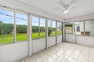 Welcome to one of the best and brightest villas in the sought-after 55+ Bridgeview community. This spacious 2-bedroom, 2-bath home offers over 1,200 sq ft of comfortable living with a new roof in 2024,, impact windows, and a brand-new AC in 2025. The large eat-in kitchen features wood cabinets, generous storage, and new appliances including a stove and microwave. A split-bedroom layout adds privacy, while the primary suite boasts a walk-in closet, vanity area, and updated bathroom. Freshly painted in high-end neutral tones with ceramic and luxury vinyl flooring throughout, this home feels modern and inviting. Enjoy the oversized enclosed tiled patio with storm shutters and a peaceful private garden view, plus a laundry area with a new washer and dryer. Offered move-in ready and availablefurnished, this villa combines style, convenience, and comfort. Bridgeview residents love the clubhouse, pool, and tennis, all within walking distance, and the unbeatable location just minutes from downtown Delray, Atlantic Avenue, beaches, shops, and restaurants.