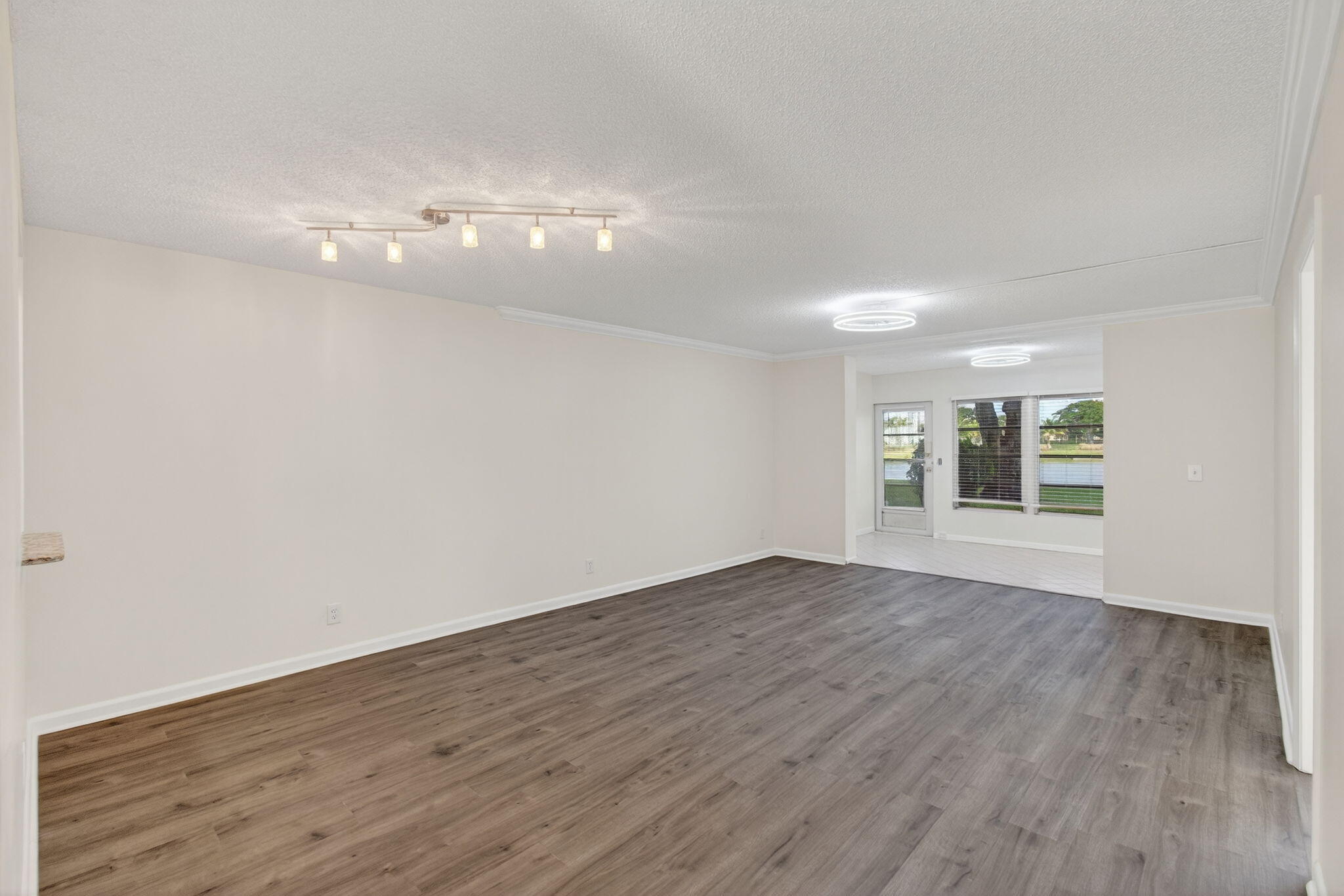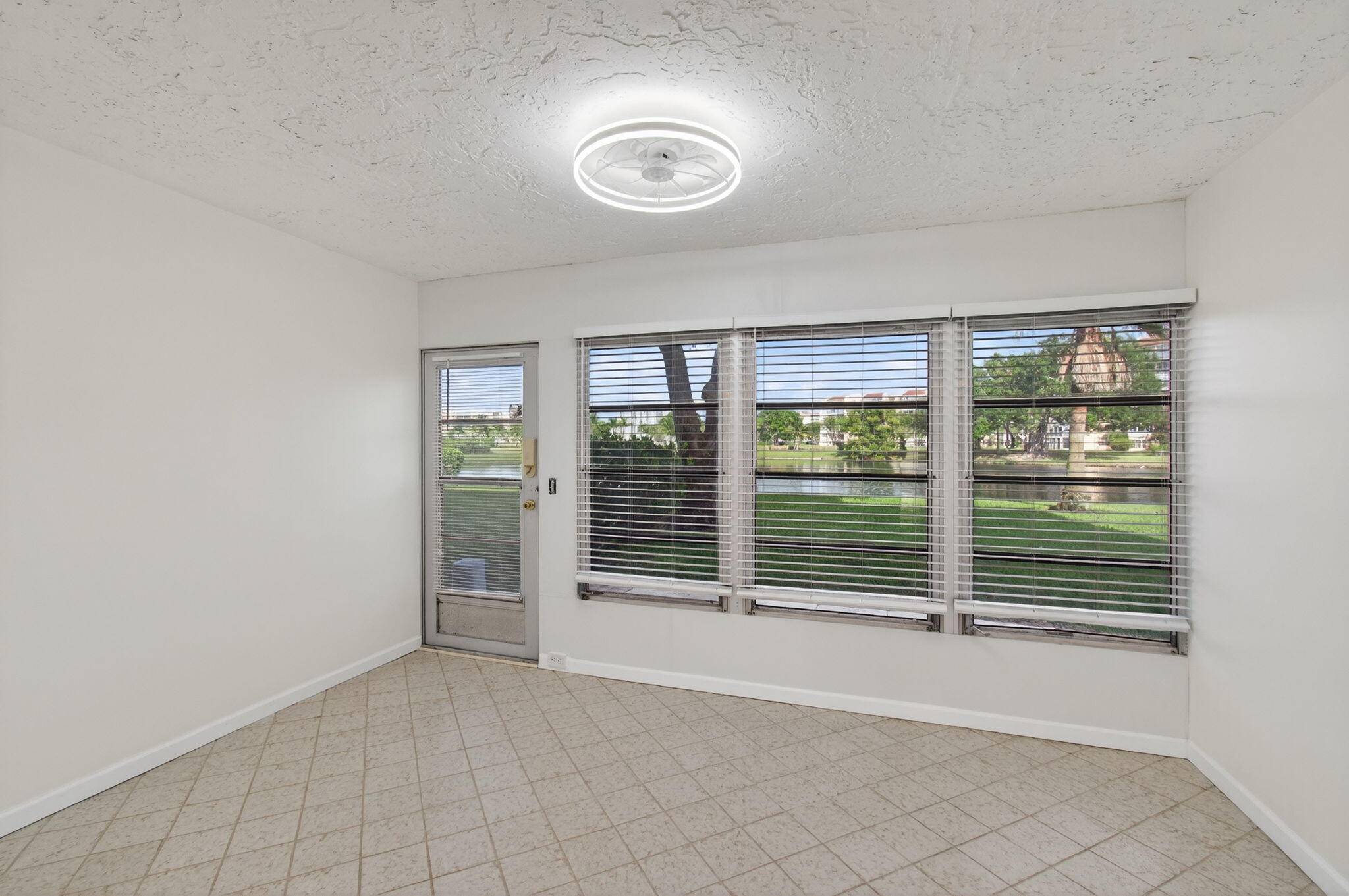 Welcome to Abbey Delray--an inviting 2-bed, 2-bath condo in a desirable 55+ community. This freshly painted first-floor home offers a ton of natural lighting with peaceful lake views from a private patio, making it ideal as a primary residence. Interior features include vinyl and tile flooring, a kitchen with granite counters and white appliances, plus new vanities, mirrors, faucets & light fixtures, four ceiling fans & blinds. There is crown molding in the living room. The community provides a pool and is conveniently located approximately 8 miles from the beach, close to Delray Medical Center, dining, and shopping. Offered unfurnished. No pets per association. Schedule your showing today!