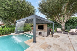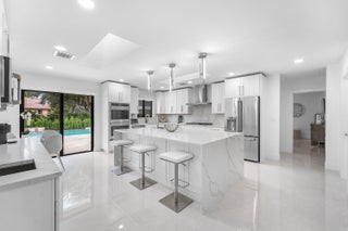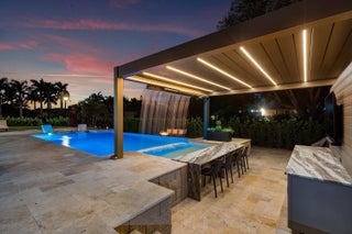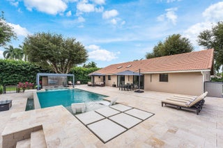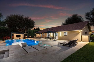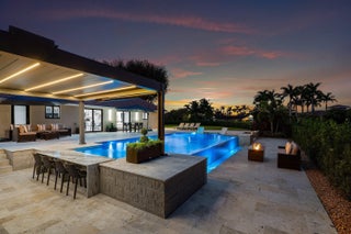 Welcome to 8274 Sawpine Road, a breathtaking, fully reimagined modern estate tucked within the exclusive gated community of Delray Lakes Estates. Set on a lush one acre lot, this 4 bedroom, 3 bath masterpiece has undergone a $1M designer renovation offering a rare opportunity to own a true turnkey luxury residence in one of West Delray's most prestigious neighborhoods. Step inside to expansive sun filled living spaces wrapped in Italian 4' x 4' porcelain tile flooring. The gourmet chef's kitchen is a showstopper, featuring custom Thomasville cabinetry, GE Cafe appliances including a gas cooktop, two microwaves, and three sinks - ideal for kosher or multi prep cooking. The kitchen features quartz countertops with a large waterfall edge island and designer finishes.Enjoy brand new Solid Core interior hardwood doors, all new LED lighting throughout and complete drywall and insulation replacement for enhanced comfort and efficiency. Every detail has been elevated including brand new electrical panels, switches, receptacles and whole home wired smoke detectors. All bathrooms have been luxuriously reappointed with new tile, fixtures, and frameless shower glass. Custom closet systems throughout offer impeccable storage and organization. This home is fully equipped with impact windows and doors, impact garage doors, two HVAC systems with updated ductwork and exhaust fans, Somfy motorized window blinds and fresh interior and exterior paint. A brand new septic system, new fencing, and COAX wiring throughout to complete the property's modern infrastructure. Your private outdoor oasis is unmatched. The owner recently added an extraordinary 16' x 47' resort style salt chlorinated pool that features a 27 ft. infinity edge with PebbleTec finish, swim up bar, in pool seating and LED color changing lighting. A hurricane rated Bon Pergola has a cascading waterfall flowing directly into the pool with adjustable louvers and integrated LED lighting that expands the entertaining space, all set atop a 2,500 sq ft travertine deck. The fully outfitted, weatherproof cabinetry bar features granite waterfall countertops, a TV wall, and an exterior grade wine cooler - perfect for hosting unforgettable gatherings. A dedicated well services the full property irrigation system. The exterior continues to impress with new stonework, gutters and downspouts, fresh smooth stucco, lush landscaping, and 4,500 sq ft of custom paver driveway. The oversized 1,050 sq ft garage features a polyaspartic floor coating and custom New Age cabinetry ideal for a small RV, boat, or all the essentials of the South Florida lifestyle. Perfectly positioned minutes from Atlantic Avenue, world class dining, boutique shopping, and just a short drive to Downtown Delray and pristine beaches. This home is zoned for all A rated Boca schools. This is a rare opportunity to own a fully transformed resort style estate in one of Delray Beach's most coveted communities.