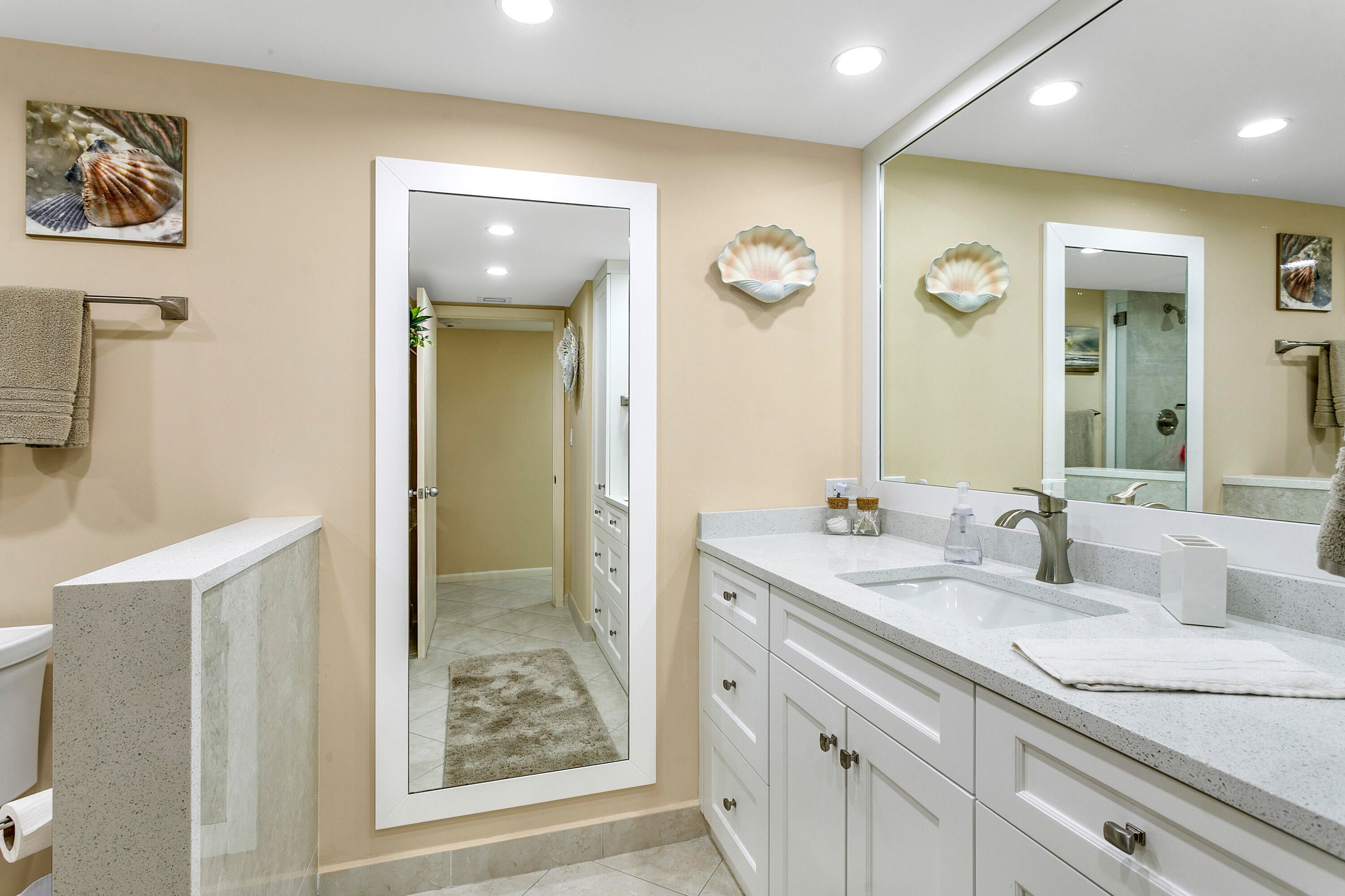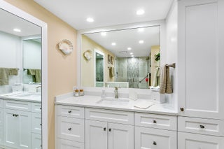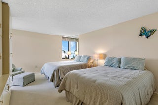 Stylish, pristine, and elegantly appointed, this sunny condo is waiting for you. Modern kitchen and 2 recently completely remodeled bathrooms are perfection. Lots of cabinet space in the kitchen and dining room, large living room with oversized television, comfortable seating, and views from 2 wrap around balconies. The two large bedrooms complete the living space and each room has a water view. You'll love the ensuite laundry with a sink and vented dryer, garage parking, and 24 hour manned gate to greet owners and visitors. Resort amenities cover the 14 acre property. There are two pools, Jacuzzis , saunas, a fitness center, community rooms for social activities, shuffleboard, tennis, pickleball, and a fitness center.