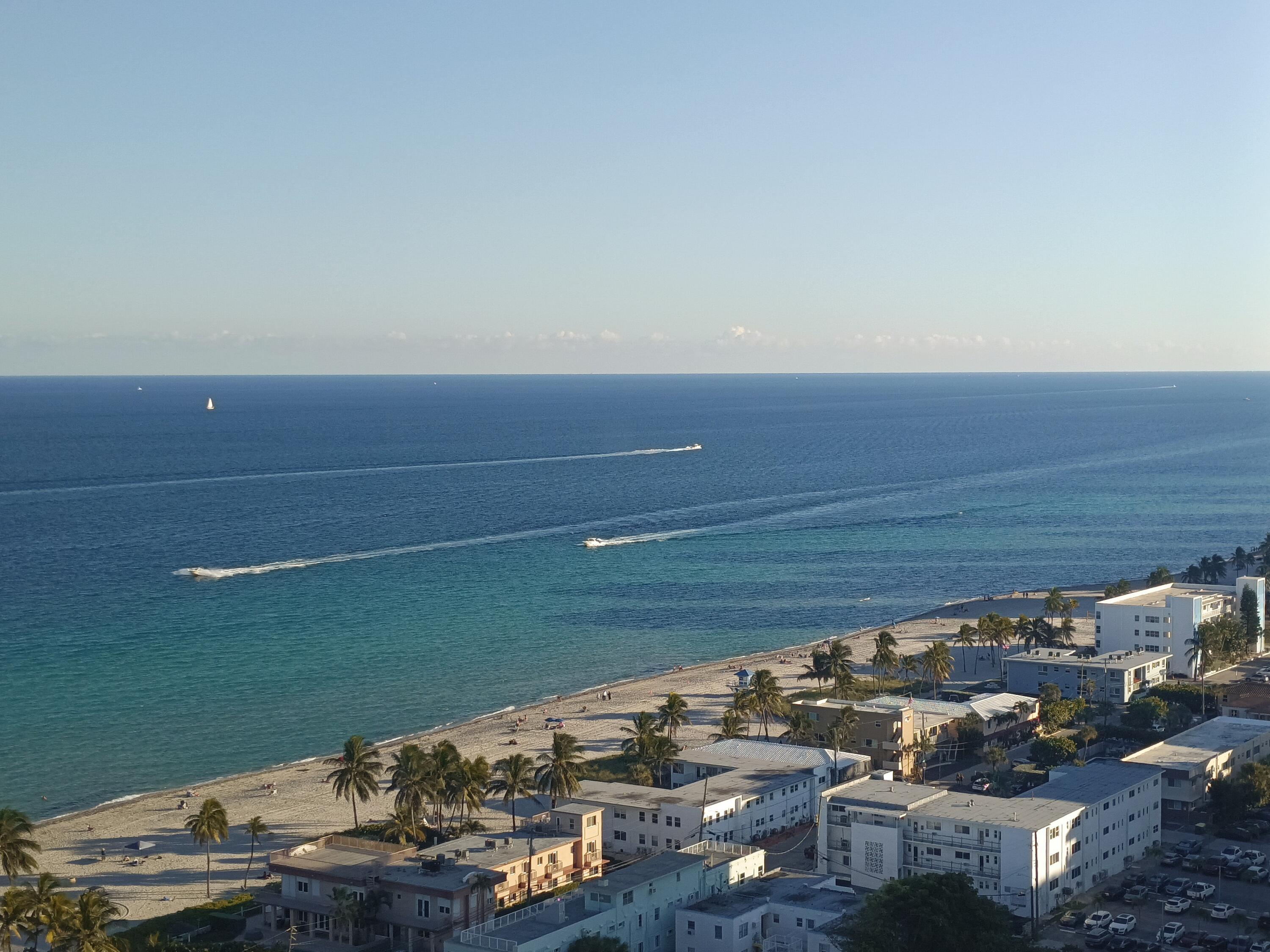 This Summit Towers condo is within 200ft of the beach and the famous 2.5-mile-long Hollywood Broadwalk, pedestrian-only esplanade that runs along the Atlantic Ocean. The South and North 25-floor Towers have a spacious open deck on the fourth floor with two heated pools, full service restaurant, outdoor BBQ. The resort-style amenities also include: 24/7 guard, fitness center, game rooms, tennis/pickleball courts, nice green park at the foot of the complex, and much more. This South West corner 2BR/2BA home is one of the best Penthouse condos with 270-degree observation of ocean, A1A - till Aventura and beyond, Intracoastal and magnificent Guitar Hard Rock! Recently remodeled unit is flooded with natural lights! It has an open European style kitchen with Reverse Osmosis filtrationsystem, premium quality appliances, breakfast nook, two spacious bedrooms, huge walk-in California closet, full laundry room with Samsung Washer/Dryer, newer AC & hot water heater, impact glass, accordion shutters. The private balcony is an extension of the living space with the ocean, intracoastal, and bustling city for your daily amusement! Big plus: two deeded garage parking spots on the first floor near the South lobby entrance and personal storage and Amazon locker nearby. You'll enjoy the Broadwalk where you can walk, jog, bike, dine in countless cafes and restaurants, or dance under the stars to the live music at the free concerts at Hollywood Beach Theatre. Live where others vacation!