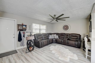 Beautifully furnished 1 Bedroom, 1 1/2 bathrooms, 1st-floor condo with garden views in 55+ community. Renovated kitchen with quartz counters, white & grey shaker cabinets & stainless-steel appliances. Vinyl flooring throughout, tile in baths/patio. Newer fans & light fixtures. AC approx. 4 yrs. old. Patio with laundry area, extra storage, washer & dryer. Condo dues includes cable. No pets, 2 year lease restrictions, 650 credit score/association. No mandatory membership fees, Capital Contribution $2,000. Sold AS IS. Community offers 3 clubhouses, swimming pools, Golf courses, shuffleboard pickleball, bocce ball, cafes, beauty salon & bus service to take you shopping or throughout the community, 25% deposit for conventional loans and condo approval required. Schedule your showing today!