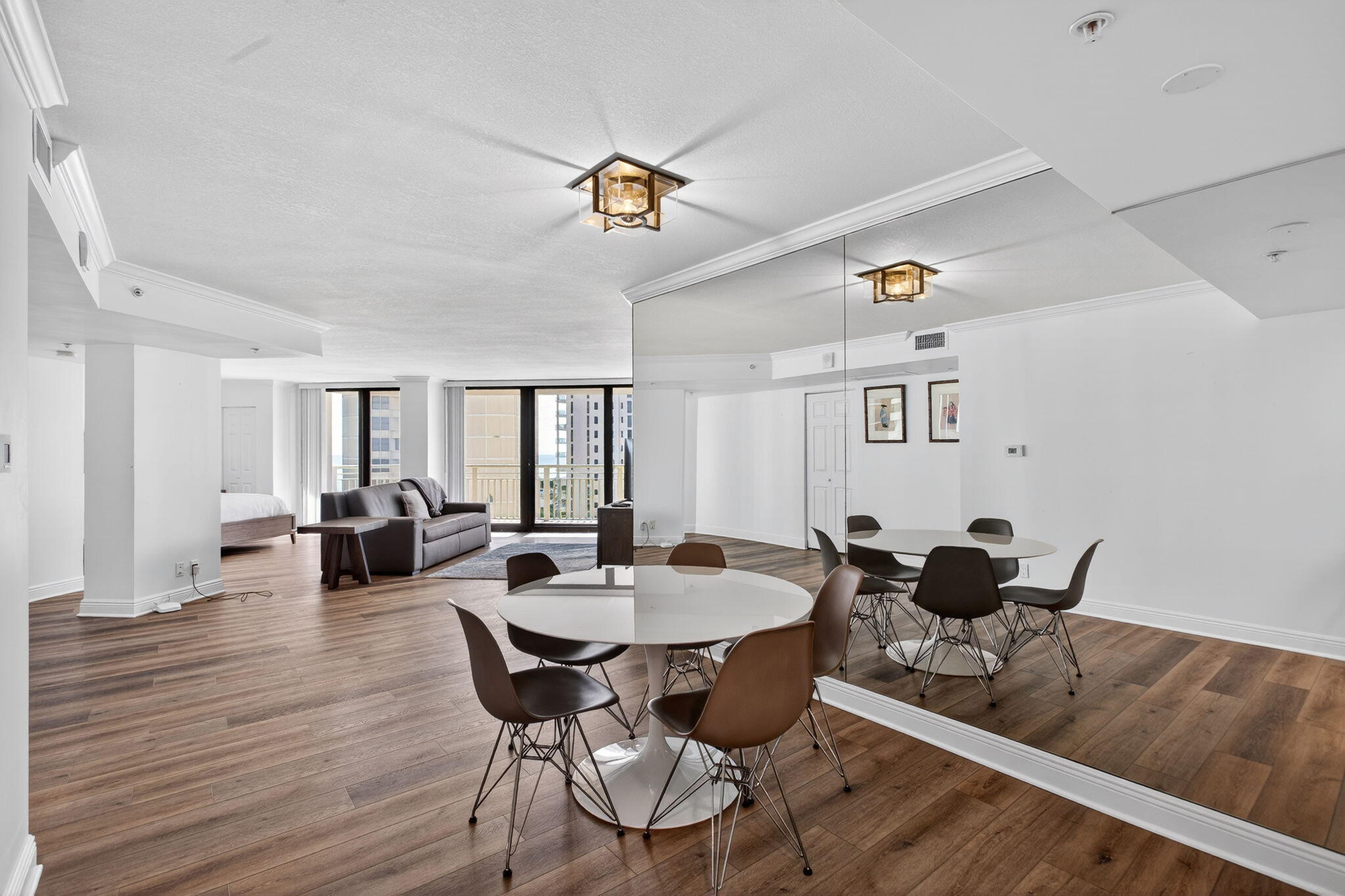 Sleek Oceanfront Studio- Designer Renovation. Singer Island - Fully Updated and Move- in- Ready! Beautifully Designed studio condo with rare 1.5 baths and completely open layout. (You can put wall up for a true 1 bed)Kitchen/ condo fully remodeled 2025 November Luxury wood- look flooring, Impact Glass, New Vanities, and stylish restoration hardware accents. Ac/ 2024 Water heater 2023.In unit Washer/ Dryer Features a Herman Miller Mid-century modern dining table with chairs, adds a touch of sophistication. along with a R/H Bedroom with an Heirloom Mattress, R/H sofa and walk in Closet. Direct Ocean Access. 2 Restaurants, Gym, Pool, Tennis courts, Covered garage slip and extra storage, full gym and much more.