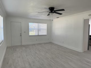 Discover tranquility and modern living in this beautifully remodeled 2-bedroom, 2-bath home, perfectly positioned on a large corner lot with breathtaking lake views. This light-filled sanctuary features a modern, open kitchen with elegant quartz countertops, perfect for both everyday meals and entertaining. Porcelain tile floors flow throughout, creating a bright and seamless living space. Peace of mind comes standard, with a new metal roof and AC installed in 2023. Located on a quiet street with a convenient circular driveway, the home is situated directly across from Easy Street Park and is just a mile from the stunning Indian River.
