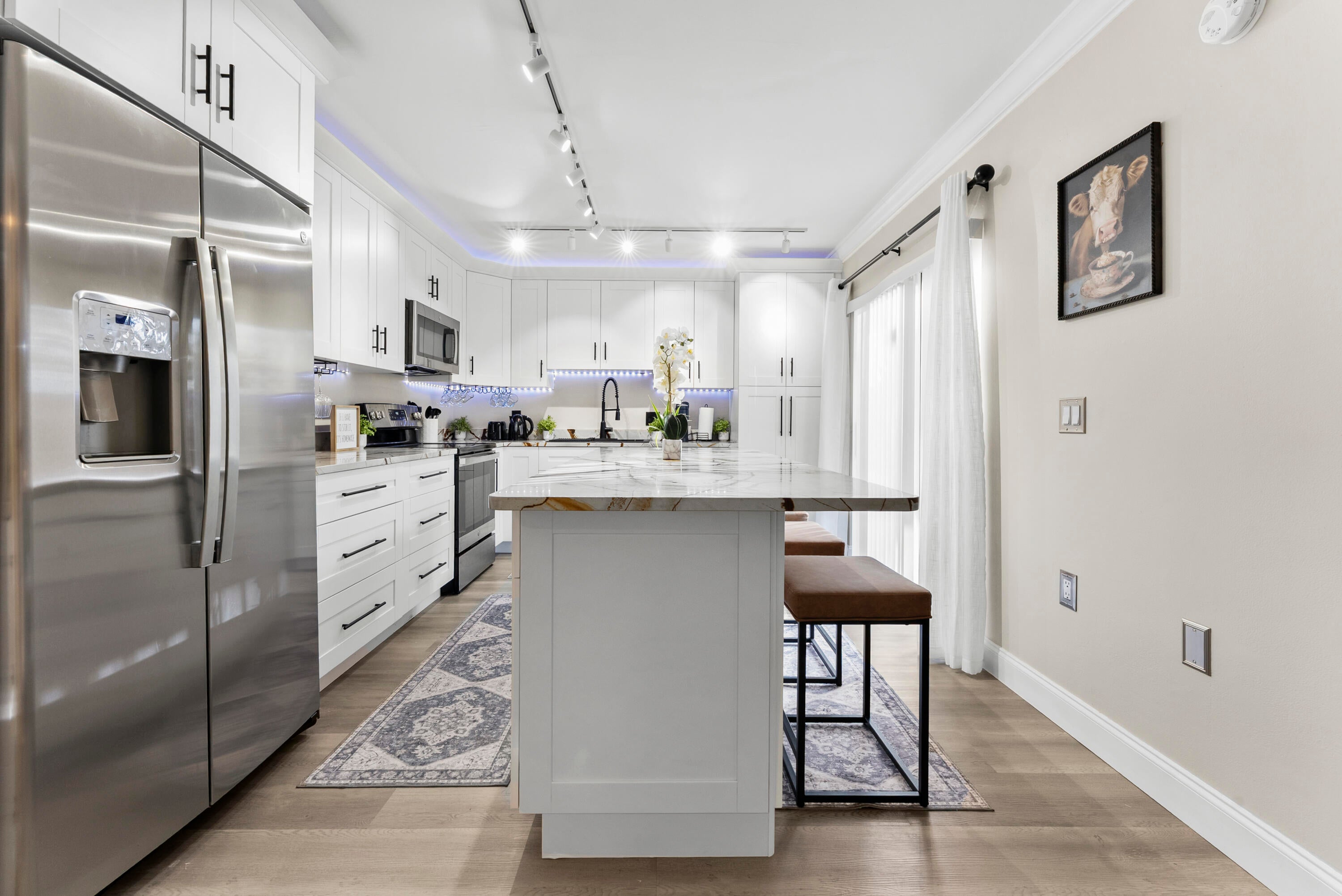 Sun-splashed, stylish, and move-in ready--this 2BR/2.5BA townhome in Delray Oaks West feels like a private retreat. Step inside to a designer kitchen with white shaker cabinets, quartzite counters, stainless appliances, and an oversized island that flows into the open living/dining area. Luxury vinyl plank flooring downstairs, updated baths, spacious bedrooms, and a full-size Maytag washer/dryer add comfort and convenience. Outside, your fenced patio overlooks a peaceful pond--perfect for morning coffee or sunset wine. All-age community with saltwater pool, fitness room, pickleball, tennis, and just minutes to I-95, beaches, and Atlantic Ave.