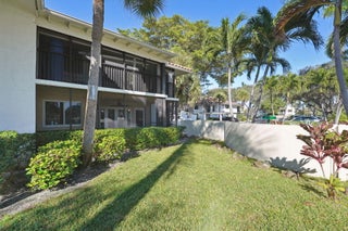 Step into the charm of this spacious ground-floor condo, offering 2 bedrooms plus a versatile den that can easily be transformed into a 3rd bedroom. French doors open to a generous screened-in lanai, perfect for relaxing or entertaining. Inside, you'll find a beautifully updated kitchen featuring classic white cabinetry, sleek black granite countertops, and high-end stainless steel appliances, all complemented by elegant crown molding and an open-concept design. The community offers gated security, pickleball & tennis courts a beautiful community pool. Less then a mile from the beach this inviting condo is a must-see--don't miss the opportunity to call it home.
