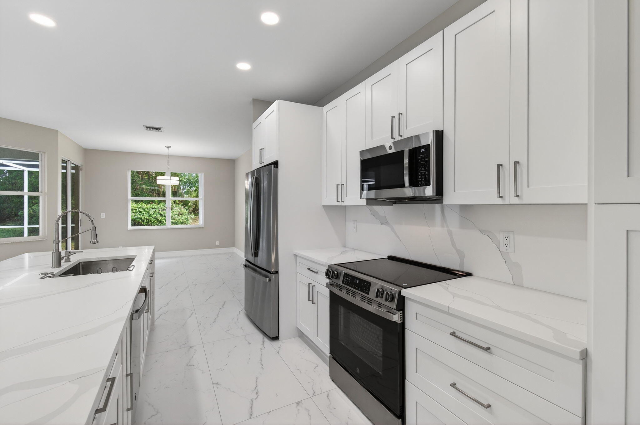 Step into modern comfort and effortless living with this stunning, fully updated 3-bedroom, 2-bath home--renovated with exceptional craftsmanship and attention to every detail. The showstopper kitchen boasts elegant waterfall quartz countertops and a spacious island with a built-in power/USB pop-up, making it perfect for cooking, entertaining, and everyday convenience. This home is loaded with upgrades that bring peace of mind and efficiency: a brand-new A/C system, new water heater, and a newer roof. Accordion shutters offer added security and storm protection, while the generous 2-car garage ensures plenty of room for storage and parking. Smart-home features take this property to the next level, including a Nest advanced thermostat, Ring doorbell, and keyless entry system.The HOA covers lawn care, cable, and fiber internet. Enjoy resort-style amenities including a pool, tennis, pickleball, basketball, gym, renovated clubhouse, and BBQ area. From top to bottom, this home blends modern style with thoughtful, high-quality improvements, creating a truly move-in-ready space you'll be proud to call your own.