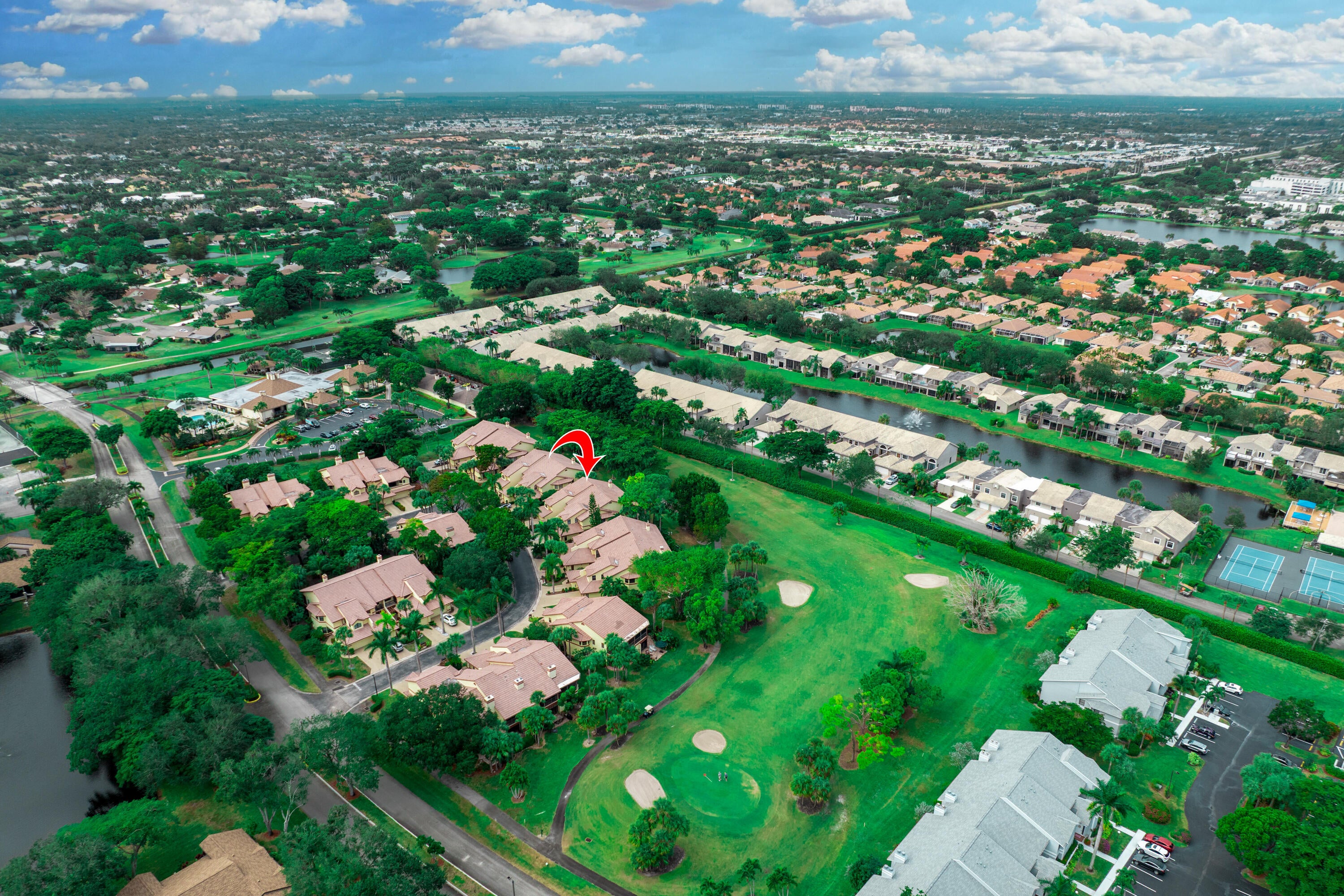 Beautiful CORNER-unit,townhome that lives like a single-family home, offering incredible natural light from extra windows & stunning views of the 10th fairway. This spacious residence features two bedrooms +a loft (easily made a 3- bedroom layout), 2 1/2 bathrooms, an attached 2 car garage,full-size washer and dryer,an upstairs balcony with gorgeous GOLF VIEWS, and a downstairs enclosed porch with room to add your own private patio. Plenty of living space and dining space with a fireplace. The home also includes partial shutters and a generous driveway. Located in a desirable guard-gated community close to downtown Boca and Delray. Community amenities include an 18-hole executive golf course with 12 beautiful Par 3s and 6 challenging Par 4s,Har-Tru tennis courts, a temperature-controlled pool with Jacuzzi, a renovated clubhouse, fitness center, and on-site pro shop. OPTIONAL golf membership available, all other amenities included in your HOA.