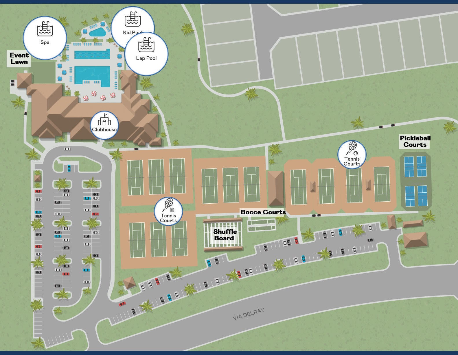 Clubhouse, Community Room, Exercise Room, Manager on Site, Pickleball, Pool, Spa-Hot Tub, Street Lights, Tennis, Shuffleboard, Bocce Ball