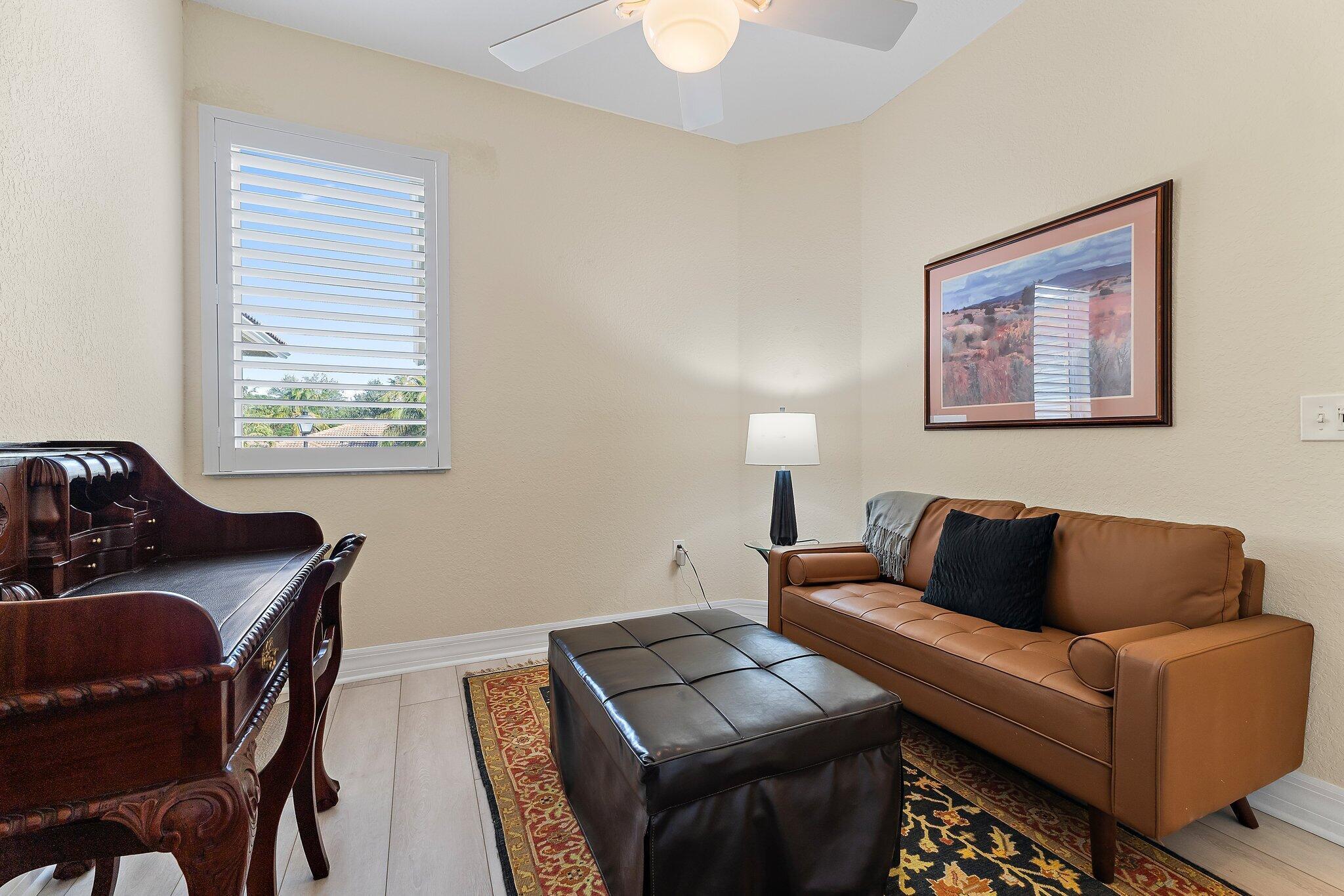 Experience stylish, low-maintenance living in this beautifully upgraded condo in the highly sought-after community of Vilabella. The Cellini model offers the largest floor plan, featuring three bedrooms and two full bathrooms upstairs, a convenient powder room on the main level, and a one-car garage. Vilabella is one of the very few condos in Stuart that allows two dogs of any size, making it a true standout for pet lovers. This gated community spans 17 acres and offers an ideal location, just 8 minutes from downtown Stuart and 15 minutes from some of the Treasure Coast's most beautiful beaches.This unit is conveniently located across from the community pool with plenty of guest parking. The home feels fresh, modern, and move-in ready thanks to an impressive list of recent renovations.The first floor features brand-new tile installed in 2024, creating a clean and cohesive look throughout the main living areas. New luxury vinyl flooring (2022) flows across the stairs, bedrooms, and upstairs hallway, adding warmth and durability. The kitchen has been updated with a new backsplash and fresh paint (2022), plus a new faucet and garbage disposal added in 2024. A stylish dining room light fixture (2023) adds a touch of modern elegance. Downstairs, you'll also find a powder room, convenient for guests. Sliders off the family room open to a 100 sq. ft. patio, the perfect place to enjoy your morning coffee while taking in the sunrise or sunset framed by a stunning Royal Poinciana tree. For those who value high-end window treatments, this home is equipped with custom plantation shutters throughout. All interior doors also feature new hardware in 2024, enhancing the home's fresh, updated look. Upstairs, the primary suite features an oversized walk-in closet and a motorized blackout shade (behind the plantation shutter). The ensuite offers a newly renovated shower with a built-in bench(2023) and upgraded lighting. The washer and dryer are conveniently located on the second level. Two additional well-appointed bedrooms share a full bathroom, offering ample comfort and functionality. With thoughtful upgrades throughout and a pet-friendly policy that's incredibly rare in the area, this Vilabella condo offers the perfect blend of convenience, style, and lifestyle flexibility, all just minutes from downtown Stuart, shopping, dining, dog parks, beaches, and waterfront activities. This gated community features a refreshing pool with cabana, a tot lot, scenic lakes, and plenty of inviting seating areas throughout the neighborhood. Schedule your showing today!