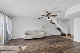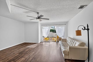 RENOVATED AND CONVENIENTLY LOCATED 2-bedroom, 2.5-bath home. Just under 2 miles from Okeeheelee Park, a brisk walk to the renovated Veterans Memorial Park, close to the Florida Turnpike, I-95, Schools, Restaurants, and Supermarkets. Boasting a stunning UPDATED kitchen with tile floors and brand-new stainless steel appliances. Light and bright, freshly painted interior, with wood-look laminate flooring throughout. New HVAC & new roof (2023). Residents enjoy the sparkling community pool, walking paths, and the lively, dazzling lake with a fountain in the center. The spacious fenced-in patio area allows for gatherings, gardening, and true relaxation. This is one you don't want to miss.