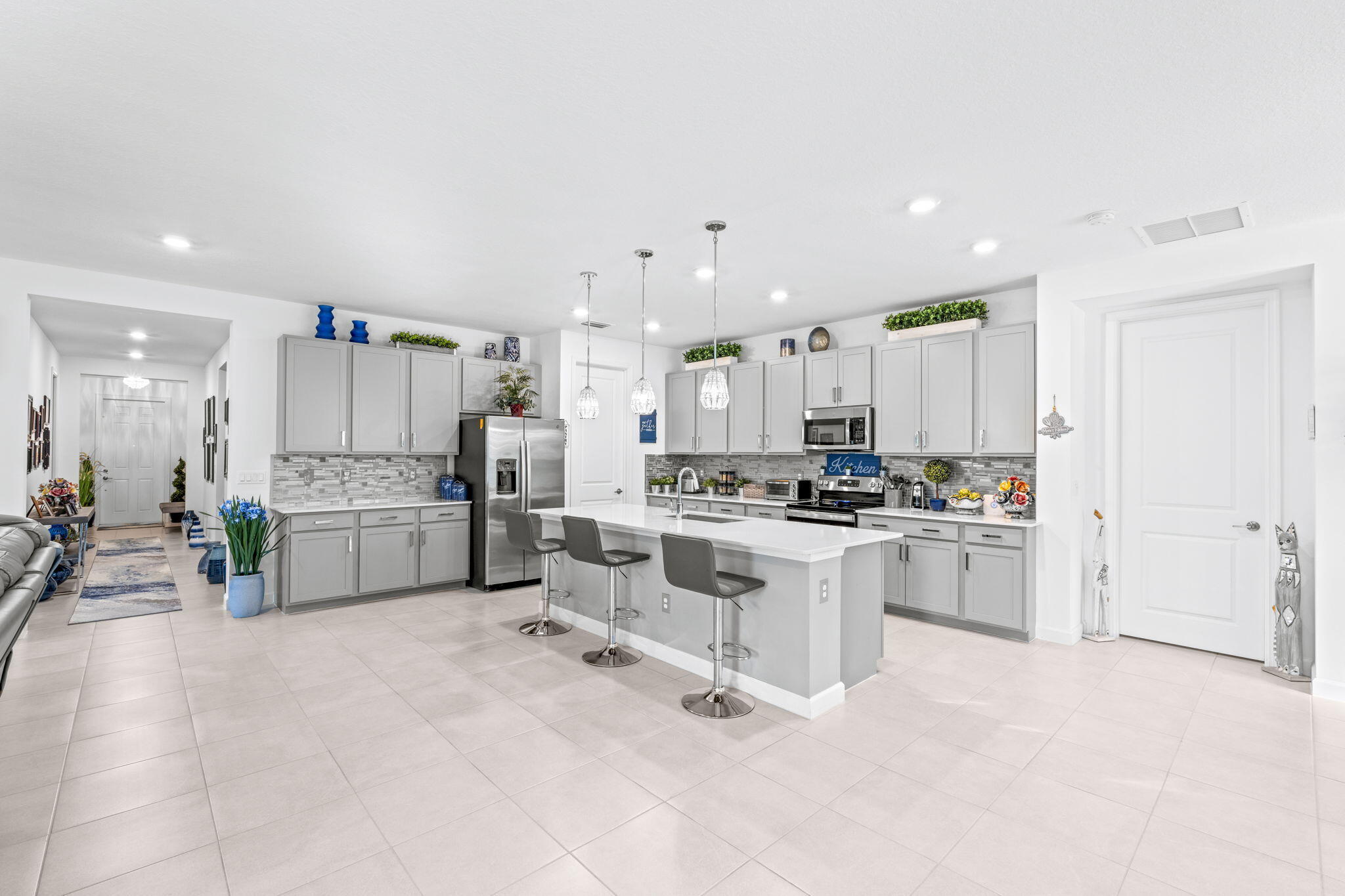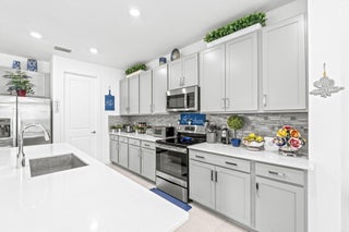 Look no further! This stunning ONE-STORY single family home is nestled in the highly sought after community of Bellasera. Boasting over 2,800 sq. ft. of refined living space, this 2021 smart home has been meticulously maintained by its original owners and offers a thoughtfully designed 4-bedroom, 3.5bathroom split floor plan. Enjoy a spacious 3-car garage, full impact windows and sliders, all updated lighting throughout, a generous walk in pantry, and a beautiful chandelier highlighting your formal dining space! The home also features a private well installed for the full irrigation system, offering cost-efficient maintenance year-round. Step outside to a private covered patio perfect for relaxing and entertaining. Positioned on a quiet cul-de-sac, the property features an expansive driveway accommodating 8+ vehicles. A rare find! Family-friendly community offering top-tier amenities, lush landscaping, and a prime location close to shopping, dining, and top rated schools. A move in ready gem with every modern convenience. This home truly has it all, schedule your private tour today!