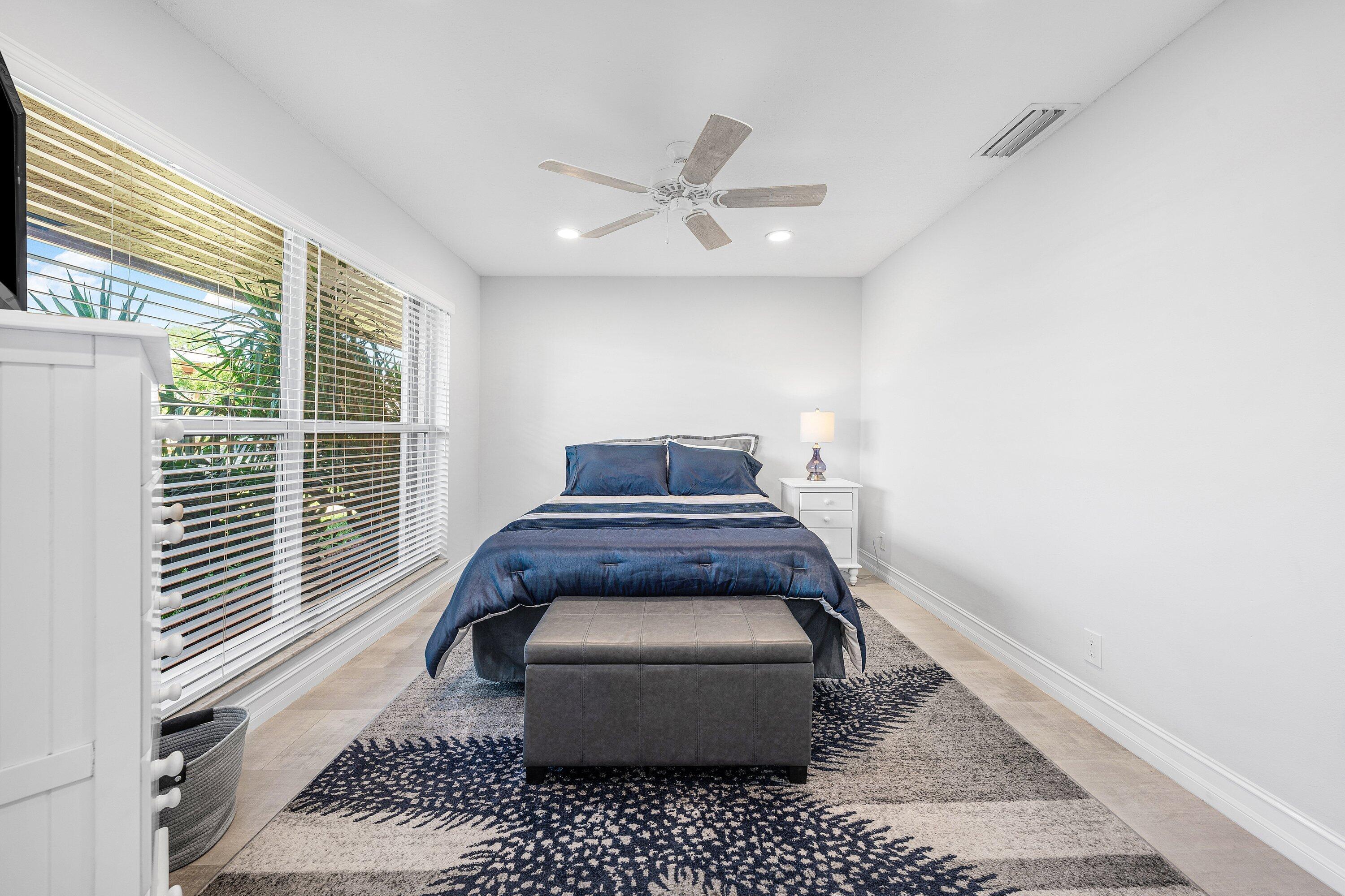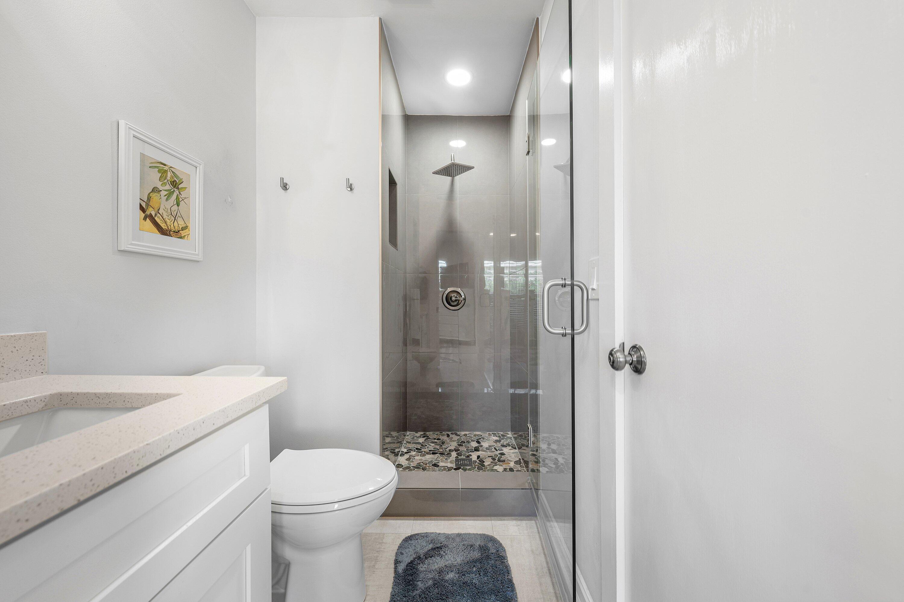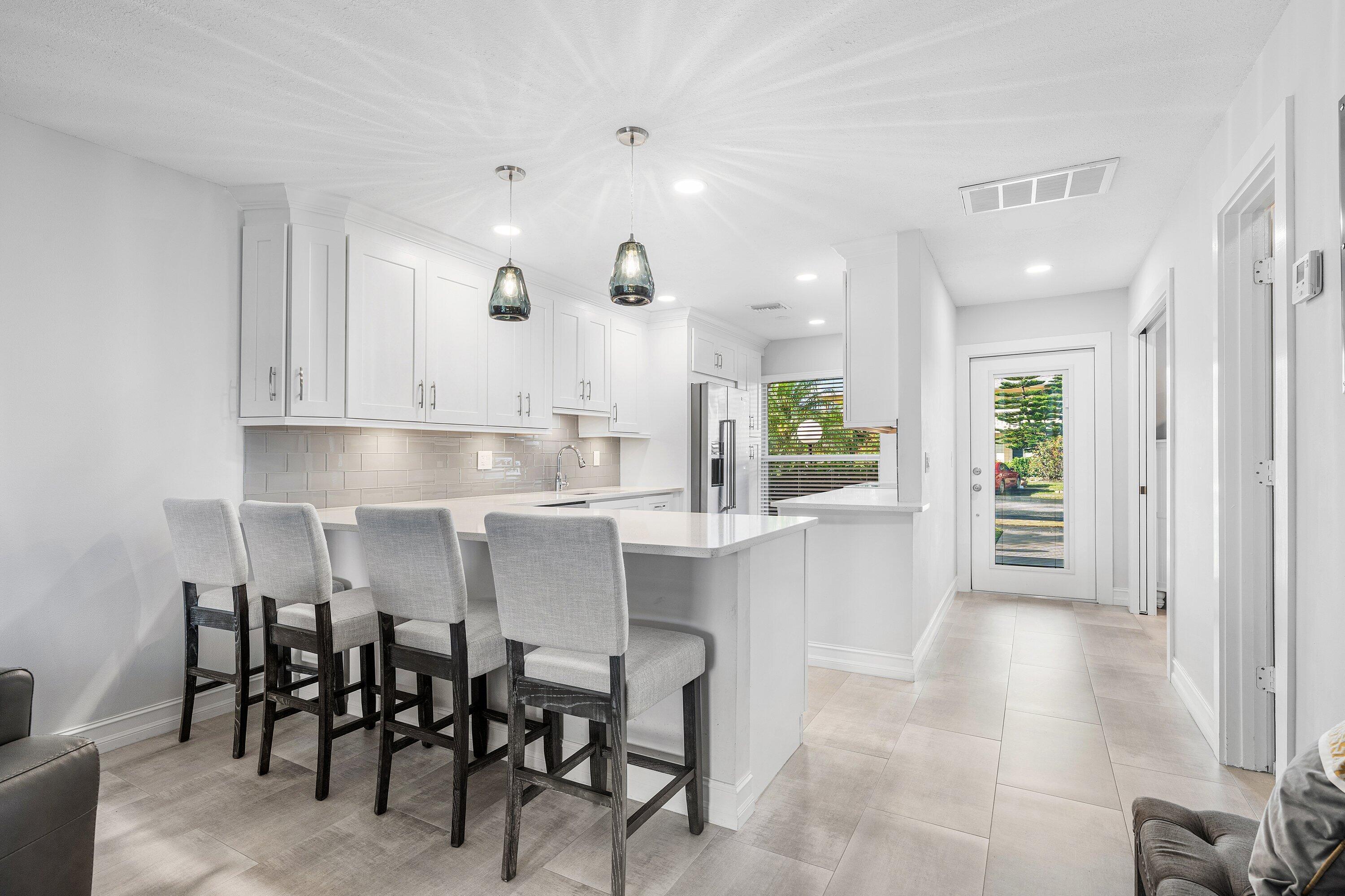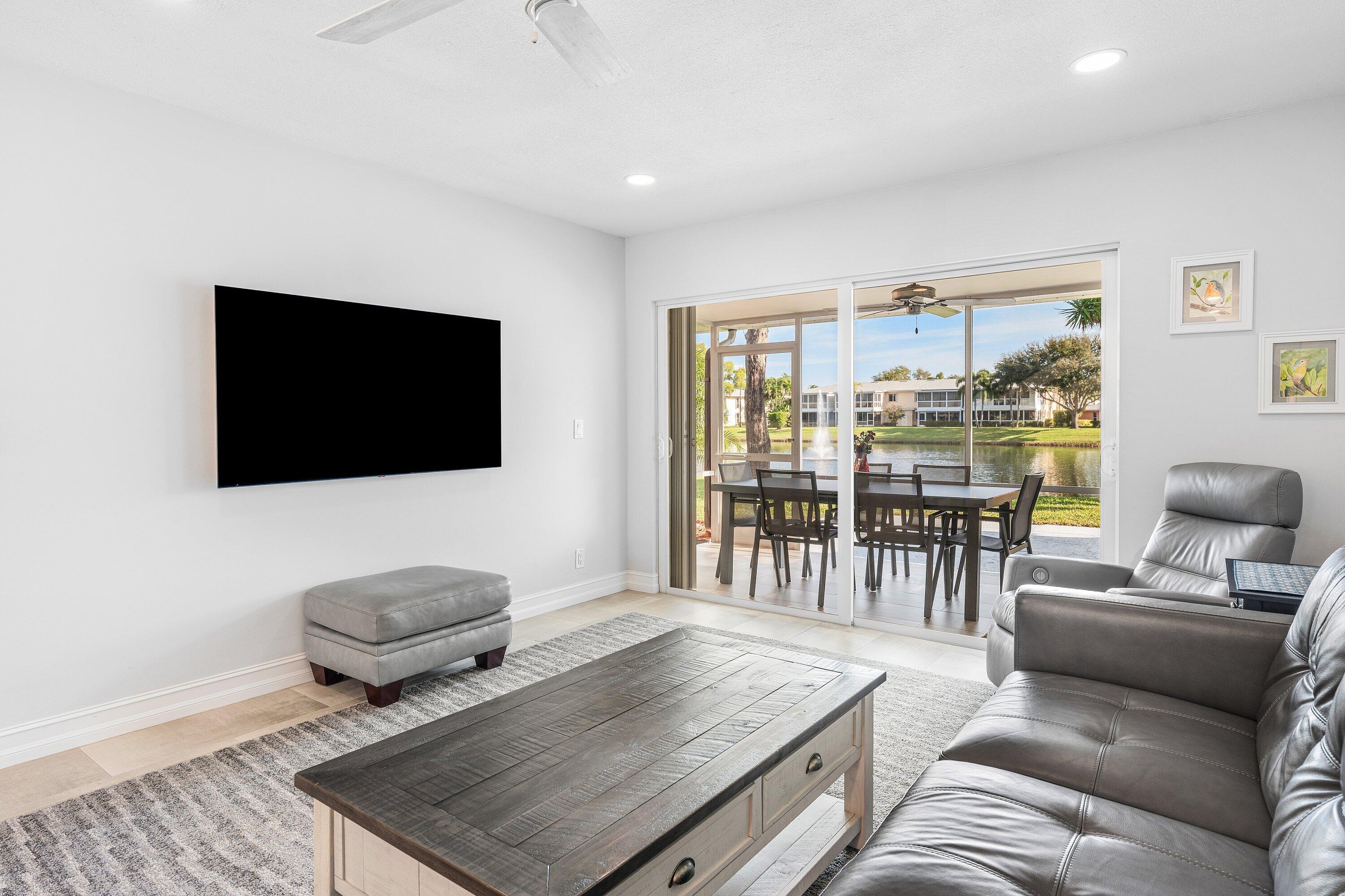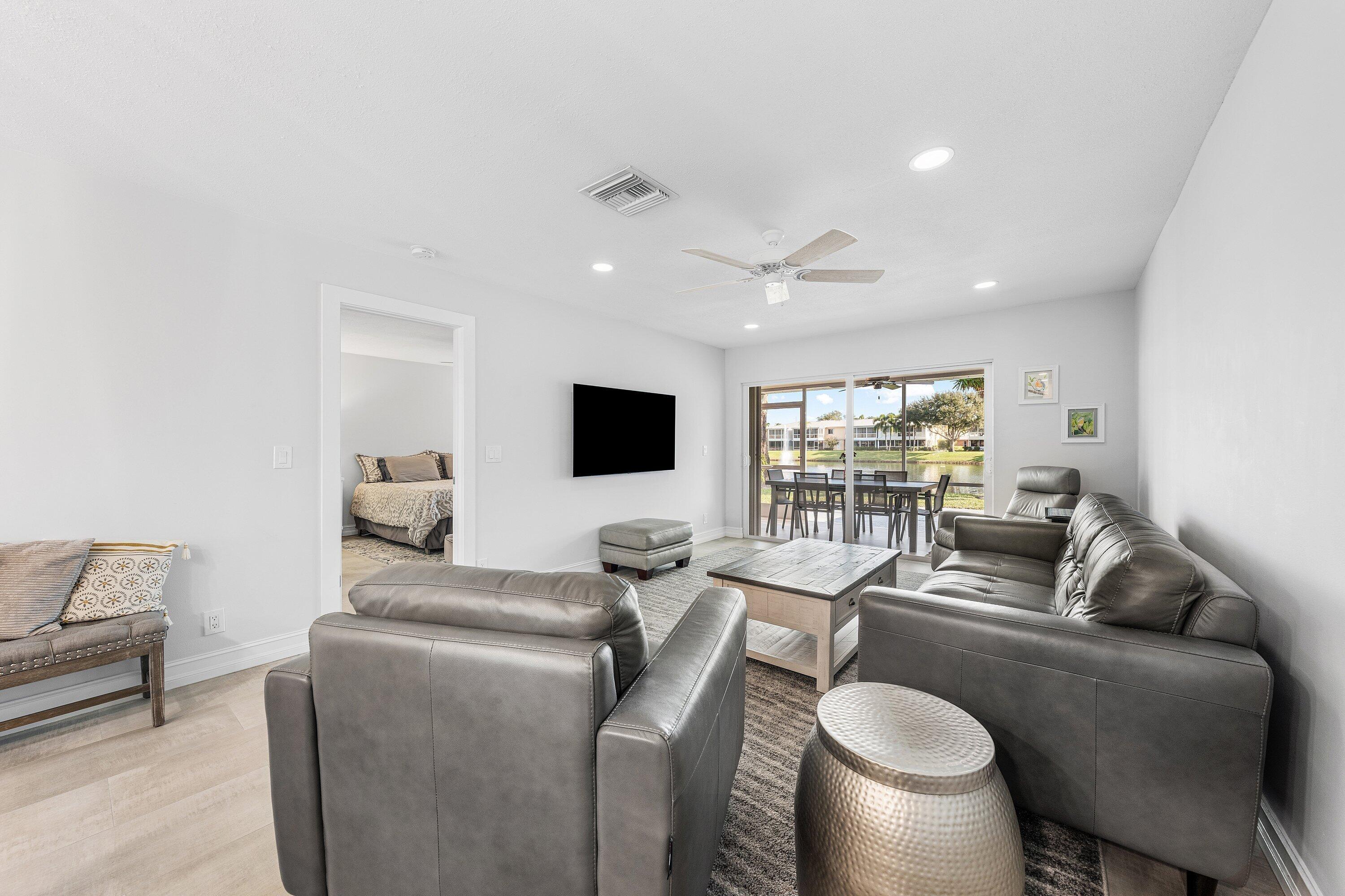 Wow -- the perfect 10! This beautifully updated 2-bedroom, 2-bath, single-level villa in the highly desirable Pines of Delray North truly has it all. Thoughtfully renovated with designer touches throughout, this home blends modern style with effortless comfort. Step through the welcoming foyer onto gleaming tile floors and into a modern, fully updated kitchen featuring high-end appliances, quiet-close shaker cabinetry, and a peninsula island -- the perfect spot to sip your morning coffee. The neutral decor flows seamlessly into the bright, airy living room, which opens to both a covered lanai and an additional outdoor patio, offering beautiful natural light all day long. Your guests will enjoy their own private oasis with a spacious bedroom and full bath, while the primary suite more..serves as a relaxing retreat with tranquil lake views, a large walk-in closet, and an updated ensuite bathroom. For complete peace of mind, this villa includes impact sliders, hurricane shutters, a tankless water heater, a new electrical panel, and ceiling fans throughout. Located in a safe, guard-gated 55+ community, residents enjoy two clubhouses each with a pool, accessible bathrooms with showers, sauna, and gym plus pickleball, tennis, and bocce courts, along with a full calendar of clubs and activities. All this, just 3 miles from the beach! The community offers ample guest parking and includes water, sewer, cable, and internet in the HOA. This move-in-ready villa checks every box comfort, style, security, and a vibrant lifestyle. Don't miss it!