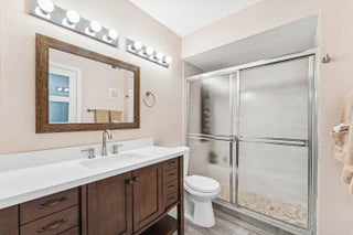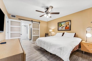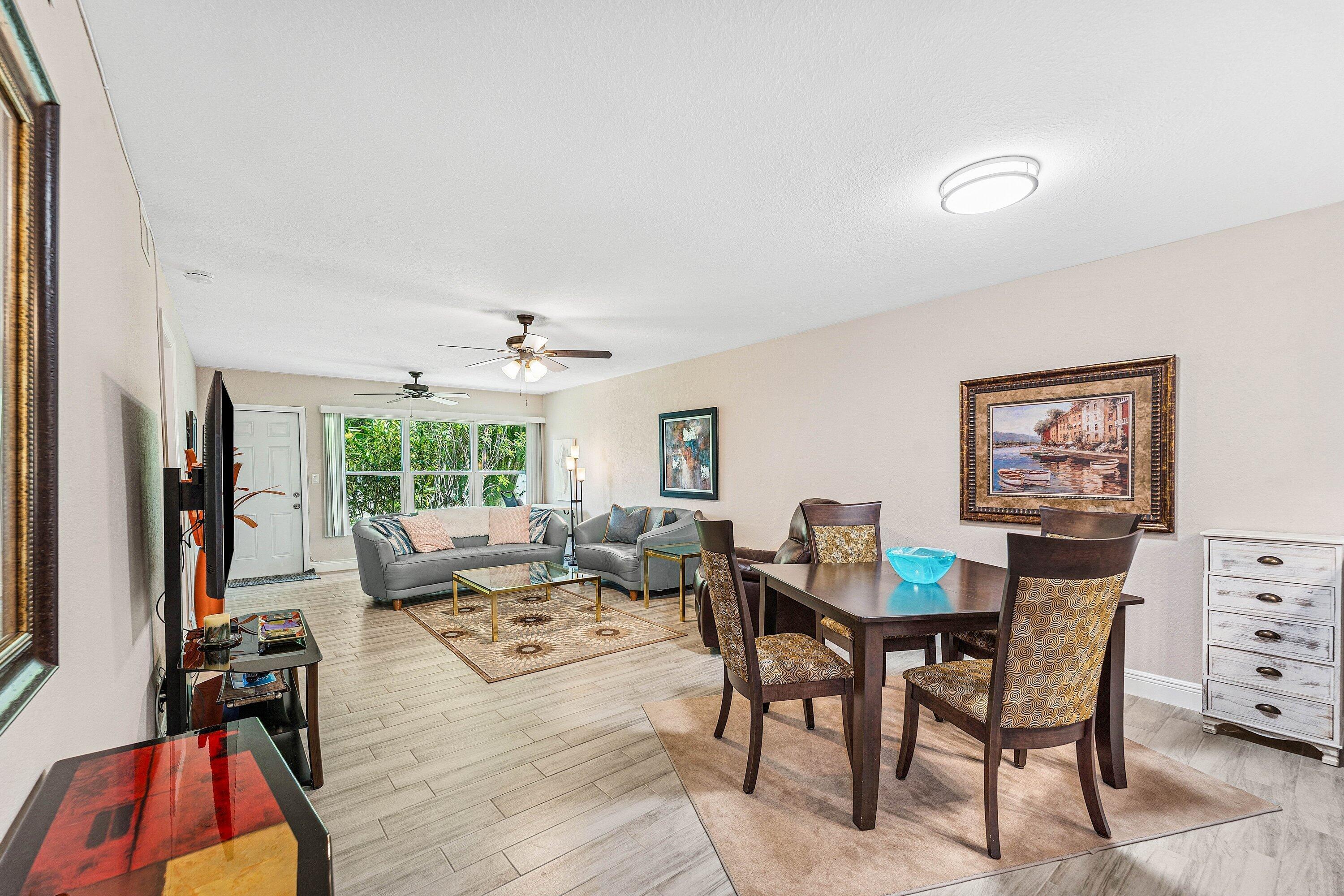 Set in Town Villas, a quiet 55+ community, this 2 bedroom, 2 bathroom villa is fully turn key and ready for a fast move. Ceramic wood-look tile floors run through the home, and the kitchen stands out with solid wood cabinets, quartz counters with a waterfall edge, a farm sink, and beautiful pendants. Both bathrooms are updated with clean finishes. The primary suite has a wide walk-in closet and generous space for a sitting area. You have a full washer and dryer, a long one-car garage, and four guest spots right out front. The back yard has open green space and room to add a screened patio if you want more outdoor living. Move in now and start the new year in comfort. Homes this ready tend to move fast. Let this be your next home.