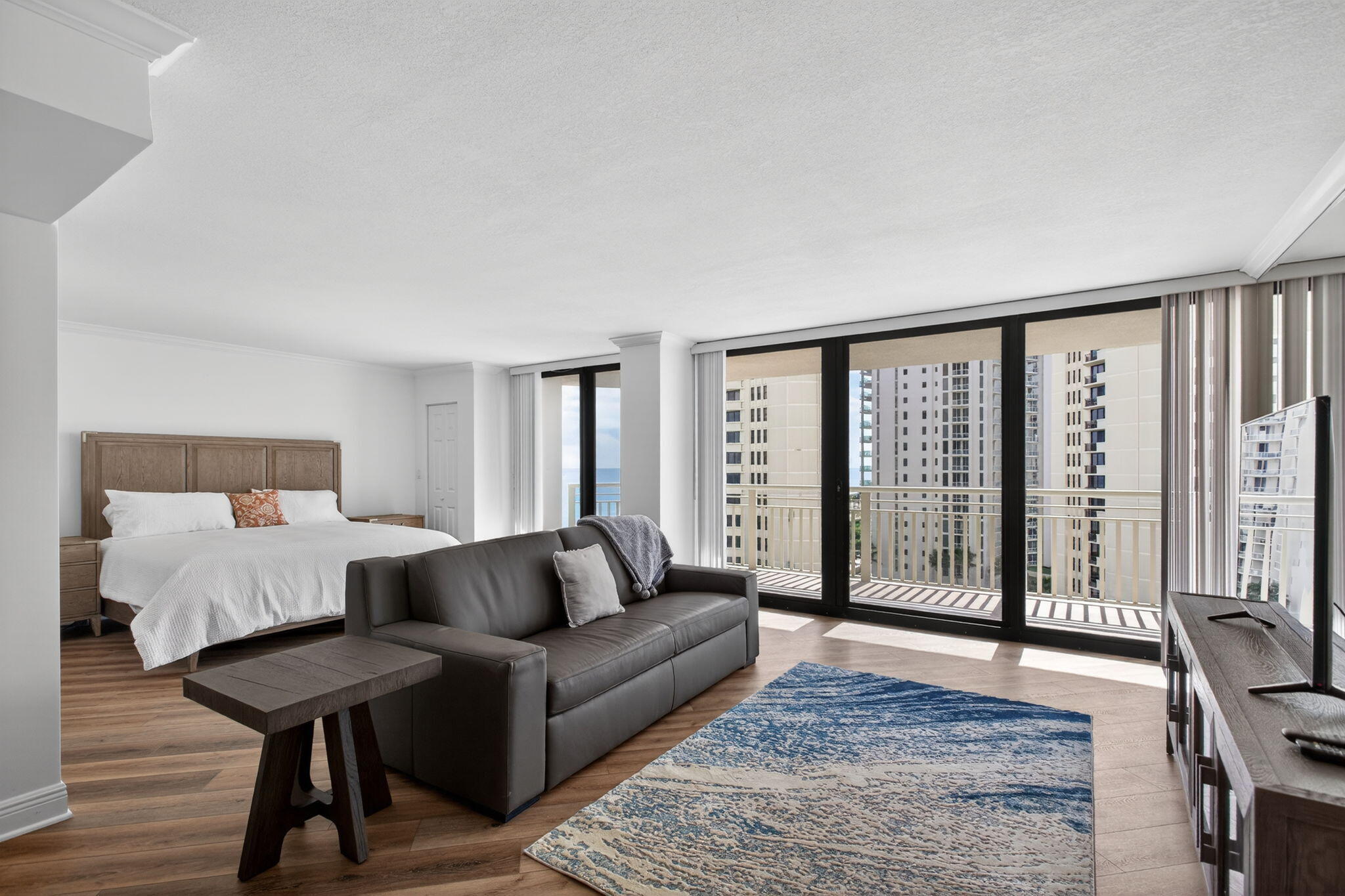 Sleek Oceanfront Studio- Designer Renovation. Singer Island - Fully Updated and Move- in- Ready! Beautifully Designed studio condo with rare 1.5 baths and completely open layout. (You can put wall up for a true 1 bed) Kitchen/ condo fully remodeled 2025 November Luxury wood- look flooring, Impact Glass, New Vanities, New B-Spoke Appliances with European Cabinets and stylish restoration hardware accents. Ac/ 2024 Water heater 2023.In unit Washer/ Dryer Features a Herman Miller Mid-century modern dining table with chairs, adds a touch of sophistication, along with a R/H Bedroom with an Heirloom Mattress, R/H sofa and walk in Closet. Direct Ocean Access. 2 Restaurants, Gym, Pool, Tennis courts, Covered garage slip and extra storage, full gym and much more.