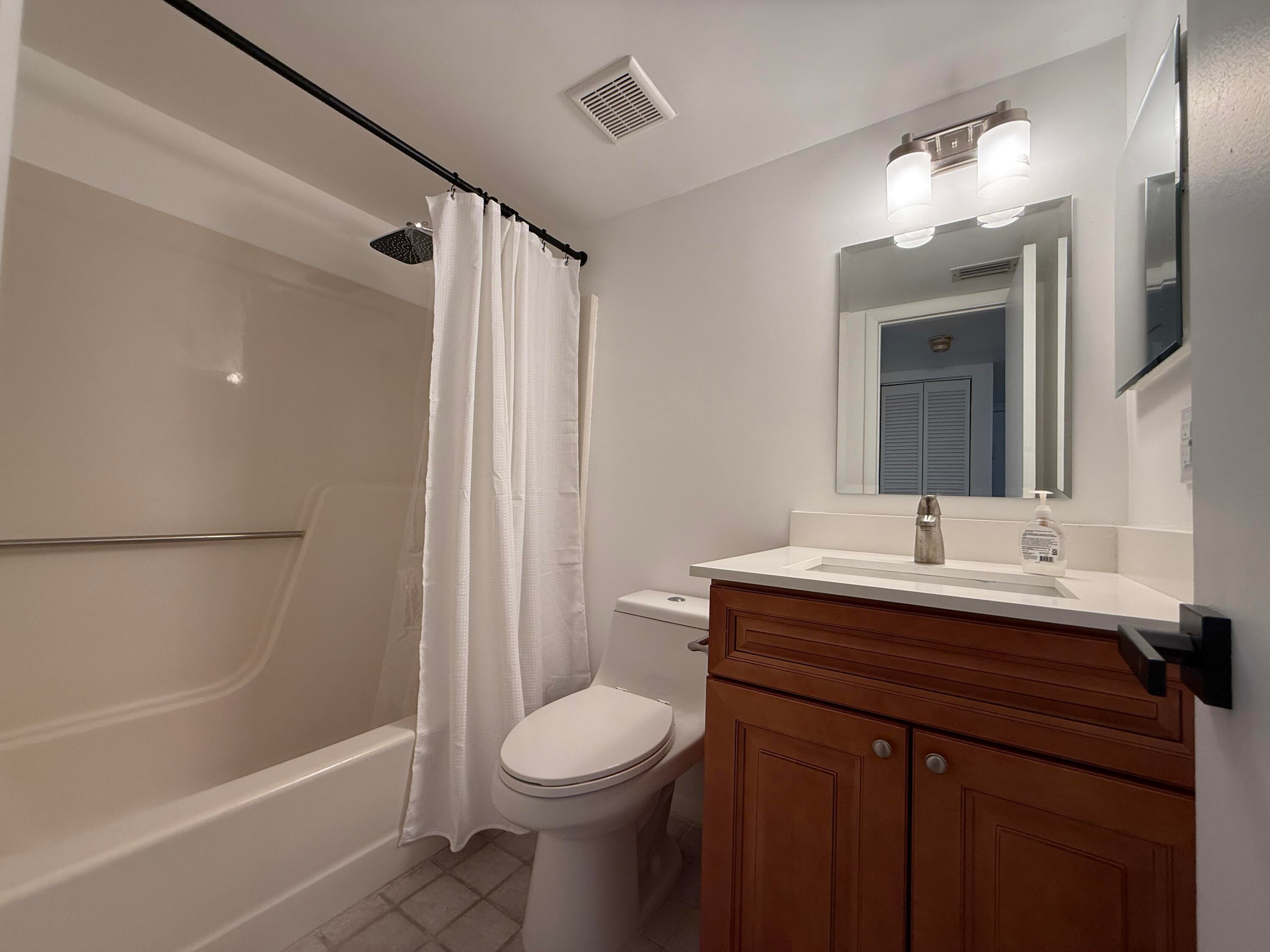 Beautifully remodeled 2-bed, 2-bath condo featuring mahogany kitchen cabinets, granite countertops, tile flooring in the main living areas, and laminate floors in the bedrooms. This residence includes a brand-new in-unit WASHER AND DRYER, plus two assigned parking spaces. Enjoy an amazing central Boca location near the Palmetto and Powerline intersection, close to top shopping, dining, and A+ rated schools. WATER, CABLE AND INTERNET IS COVERED BY HOA.