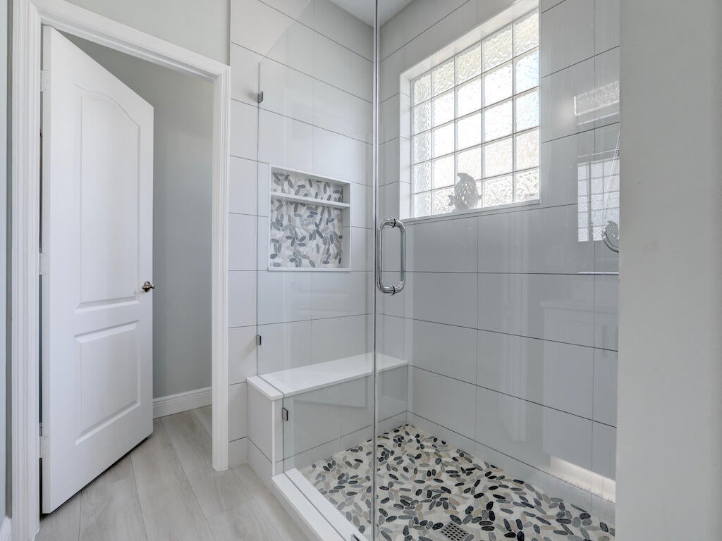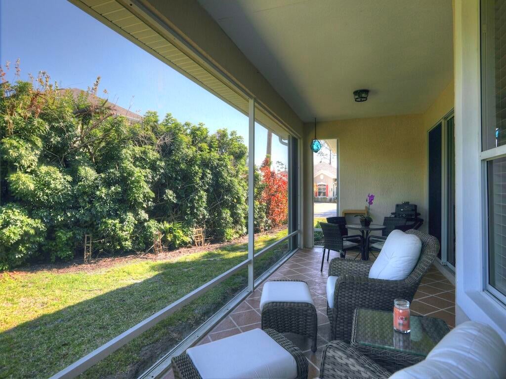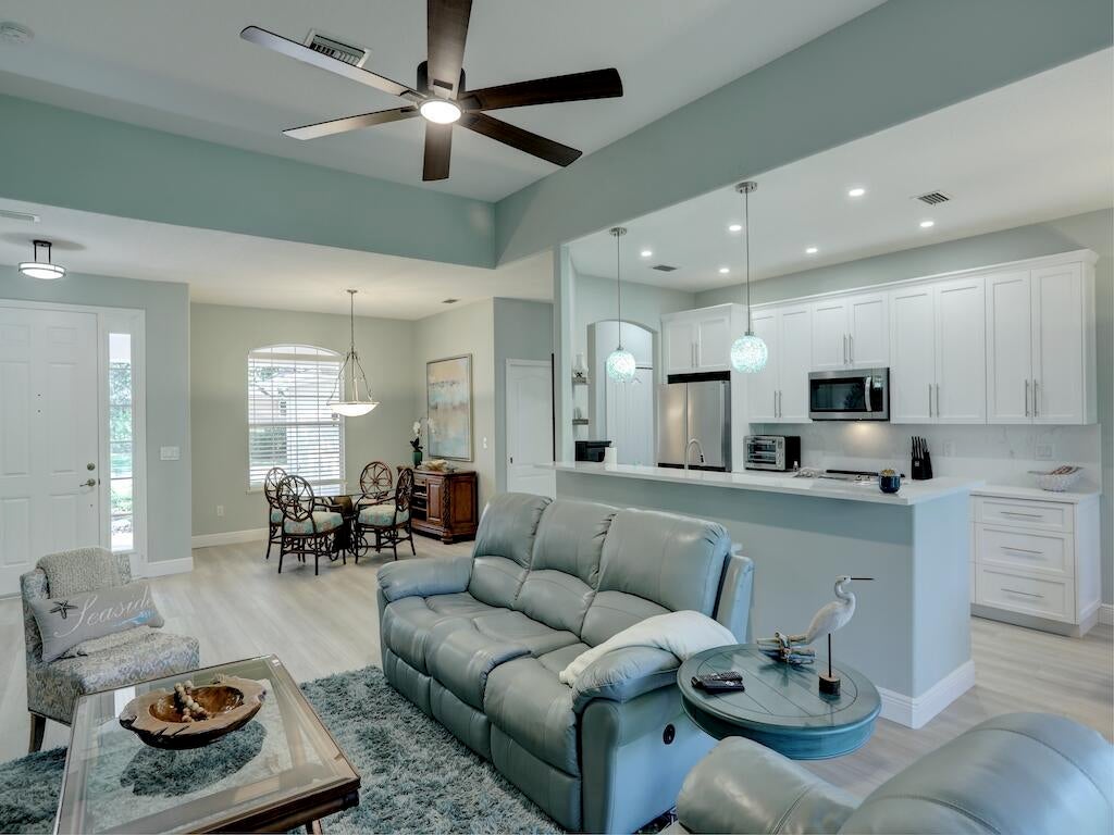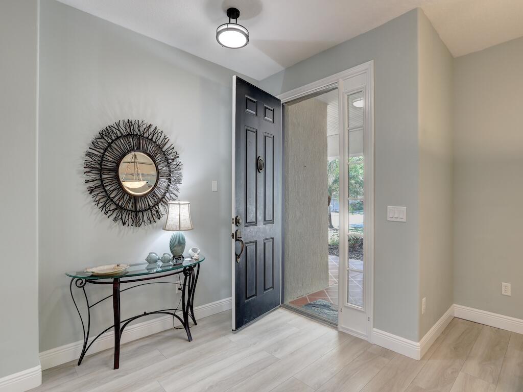 Welcome to this impeccably maintained and updated home located in gated community with community pool & clubhouse. Home offers modern comfort and style, featuring a designer kitchen with quartz countertops, S/S appliances, a breakfast bar, & breakfast nook. Luxury plank flooring flows seamlessly throughout main living areas. Spacious primary bedroom includes W/I closet & a spa-like ensuite with double vanity & custom W/I tile shower. Guest room bath also has custom W/I shower. Enjoy serene mornings or relaxing evenings on private, screened, & tiled porch--perfect for entertaining or unwinding.