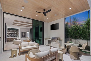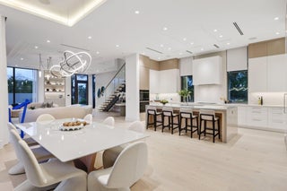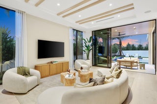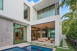 Welcome to Grove Estates -- Downtown Delray's Only Gated Single-Family Home Community. Introducing the Oasis at Grove Estates built by award winning Azure Development --a new standard of luxury living in Delray Beach within true walking distance to Atlantic Ave. This brand-new, modern residence on a 9,800+sf corner lot offers 5 bedrooms, 5 full bathrooms, 2 powder rooms, a large flexible club room with bar, and over 5,400sf of expertly crafted living space. Designed with clean lines, soaring ceilings, and expansive 12' floor to ceiling windows, this home is bathed in natural light and built for seamless indoor-outdoor living. Covered lanai with summer kitchen and views of the pool, with sunshelf & spa from all rooms.Designed by celebrated architect Randall Stofft and curated by Czar Interiors, the Oasis spans 5,429 square feet of air-conditioned living with over 6,600 total square feet of resort-style space. Soaring 12-foot floor-to-ceiling glass windows invite light and lush greenery into every corner of the home, creating a seamless connection to the outdoors. The dramatic floating staircase with glass railings and private elevator offer both modern flair and convenience, while the thoughtful layout effortlessly blends entertaining and everyday living. The gourmet kitchen is a chef's dream, outfitted with professional-grade Wolf and Sub-Zero appliances, custom 12-foot cabinetry, and a hidden butler's pantry. Adjacent to the kitchen, an expansive club room offers full front and back bars and pocketing glass doors that open completely to the outdoors, perfect for hosting or relaxing in style. Step outside into your own private oasis with an oversized saltwater pool, spa and sun shelf surrounded by dense, tropical landscaping for total privacy. The covered outdoor living area features a full summer kitchen, wood-clad ceilings, and concealed retractable screens, allowing for effortless indoor-outdoor entertaining no matter the season. Upstairs, expansive balconies with glass railings overlook the lush central green, a landscaped park exclusive to Grove Estates, ideal for peaceful walks, yoga, or simply taking in the tranquility. Upstairs, four spacious bedrooms include a luxurious VIP suite and a stunning primary retreat, each designed with custom finishes and spa-like bathrooms. The 5th bedroom can be optioned to an office. A three-car garage, solid steel and concrete second-floor construction, natural gas fireplace, and designer fixtures round out this exceptionally built home that merges quality with artistry at every turn. With unmatched design, privacy, and a location just steps from the energy of downtown Delray, this is your opportunity to claim one of the most exclusive addresses in South Florida. There are only 4 of the 9 homes remaining in Grove Estates. ***Photos of this home are of 305 Grove Pl, also an Oasis Modern that sold & is being used as a furnished Model, which is available to tour. 340 Grove Pl delivery 2027***