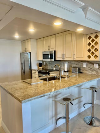 VIEWS! VIEWS! VIEWS! Only Turnkey/move in ready. Immaculate 1 bedroom FURNISHED penthouse in the gated, highly desirable community of Boca Bayou. This condo has been completely renovated with designer LEATHER SOFA AND SUEDE DINING CHAIRS. Brand new queen bed and memory foam mattress and offers water views from living area as well as bedroom. Cooks kitchen with stainless steel appliances and granite counter tops. and lots of cabinets! Bedroom has massive, built-in walk in closet! Boca Bayou amenities include a clubhouse, a manned guardhouse, tennis courts, five heated pools, and two fitness studios. Plus, there are no age restrictions. It's the perfect place to call home.