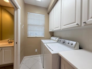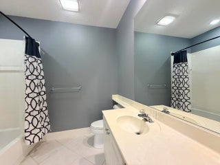 Beautifully maintained townhouse located in the highly sought-after community of Riverwalk. This spacious 3-bedroom, 2.5-bath home features a one-car garage plus two additional driveway spaces. The first floor offers tile flooring throughout, a laundry room with a basin sink, and a half bathroom. Large sliding doors open to a screened patio overlooking a generous backyard where pools are permitted. The kitchen is pristine with barstool seating, seamlessly flowing into an expansive living area perfect for entertaining or relaxing. Upstairs features real wood flooring, a large primary suite with a walk-in closet, double vanity, separate shower, and soaking tub. Two additional bedrooms and a full bathroom complete the second floor. Accordion shutters provide full storm protection, & cable internet, and lawn care are included. And only first month and security deposit is due before moving in! Riverwalk is a manned gated community offering resort-style amenities including a clubhouse with a café, swimming pools, tennis, pickleball, bocce ball, playgrounds, scenic lakes, and walking paths. Conveniently located between the Turnpike and I-95, and just a short drive to beautiful beaches and PBI Airport. Central A/C, ceiling fans in every bedroom, and pet friendly.
