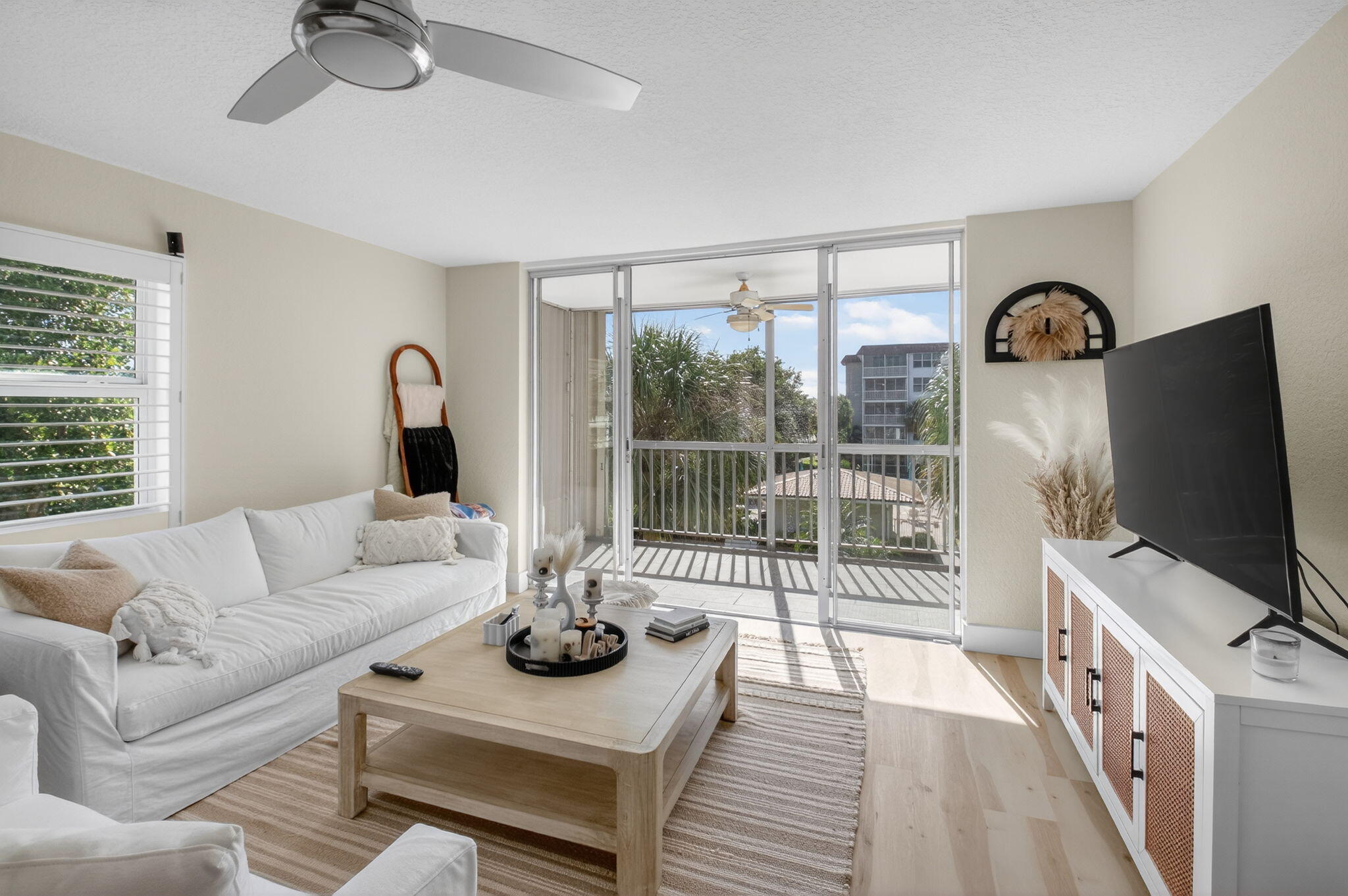 Elegant 2 Bedroom, 2 Bathroom Condo in Tropic Bay - East Delray Beach Marina Community. Experience refined coastal living in this meticulously upgraded residence, featuring a covered balcony within the sought-after Tropic Bay Condominium. Interior features an open-concept layout enhanced by ample natural light. Notable interior elements include plantation shutters, vinyl wood-look flooring throughout. In 2022, kitchen was upgraded with quartz countertops, white shaker cabinets, stainless steel appliances, and brand-new refrigerator (2025). Both bathrooms were renovated in 2022. Air Conditioning Unit installed in 2024, newer water heater replaced in 2023. Washer/Dryer hookups installed in the master closet. Other upgrades include Hurricane-Impact windows/accordion shutters.Location is easily accessible to beach, boating, shopping and entertainment. Condo fees are paid Quarterly and includes Cable, Internet, Water, Sewer/Trash. All assessments have been paid. There are newer elevators, Laundry Room, Other amenities includes 3 Community Pools. Two Clubhouses, Fitness Center and Marina Boat Docking Space, are available for $300 annually. Onsite Management, Recreational & Social activities available. *NOTE HOPA AGE RESTRICTED COMMUNITY.