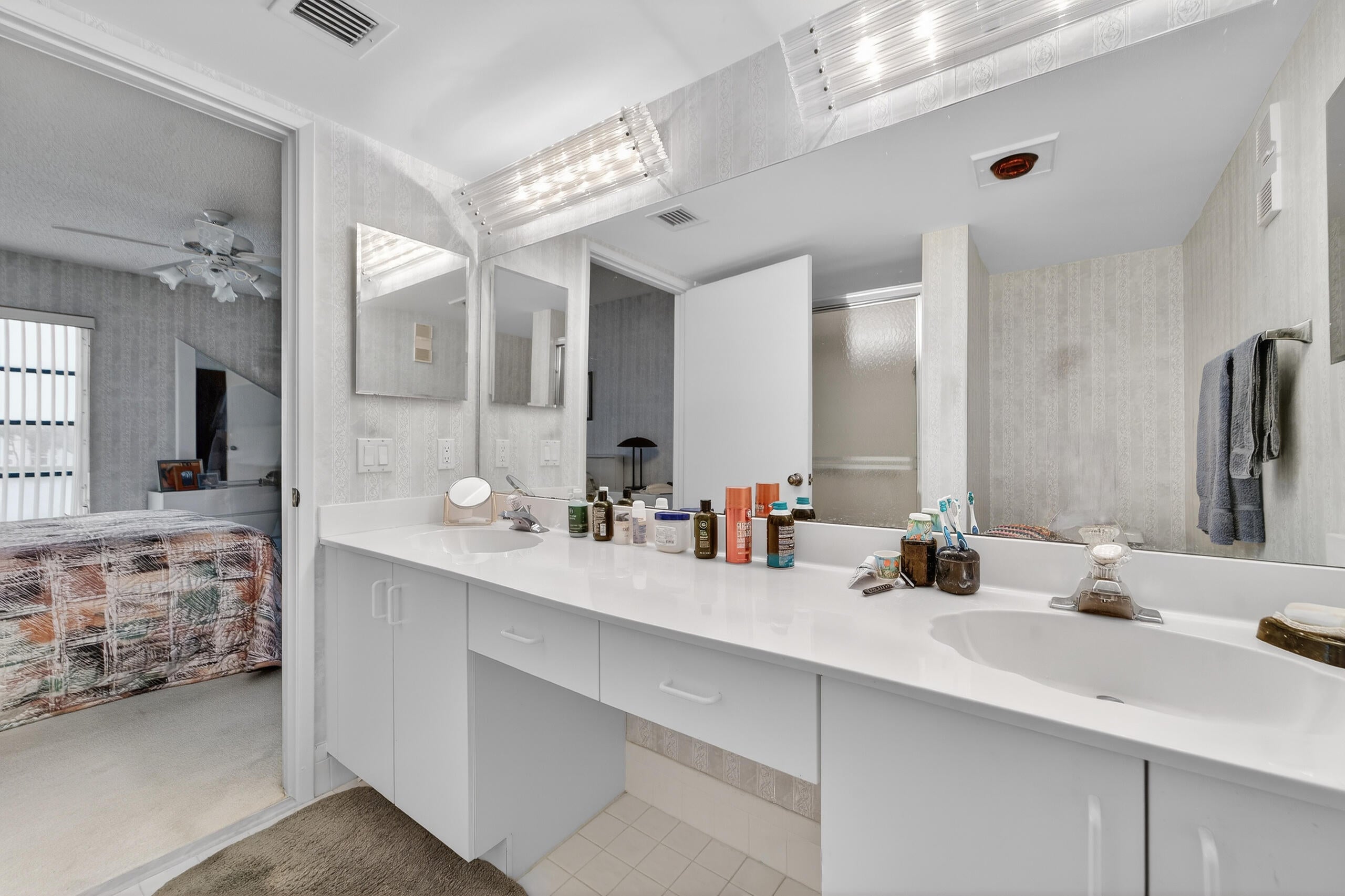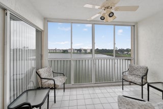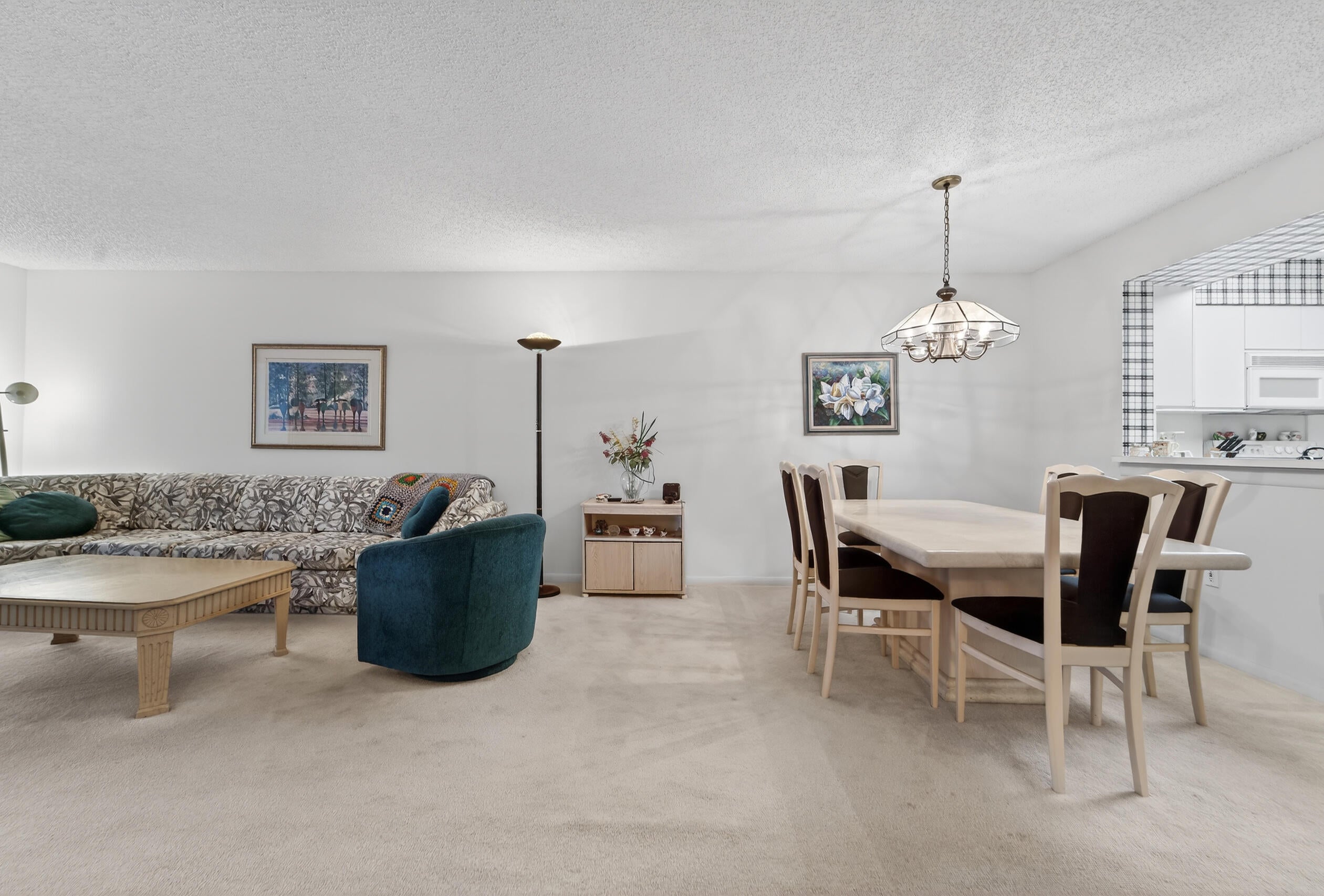 Beautifully maintained, light, bright 2/2 condo with den and panoramic view of the lake. Den is also perfect for guest room or office. All carpet inside means comfortable walking on all floors. Oversized walk-in closet and ensuite bath with walk-in shower in primary bedroom. Eat-in kitchen. Full sized washer and dryer inside. Huntington Pointe is a an active adult community that features a 53,000 square foot clubhouse. The 600 seat theater offers live entertainment and movies year 'round. Plus a fitness center, card rooms, billiard room, aerobics room, bocce courts, pickleball courts, Har-Tru tennis courts (coming in 2026), 4 outdoor pools, heated indoor pool, numerous clubs and organized activities, and a cafe that's open for breakfast and lunch every day
