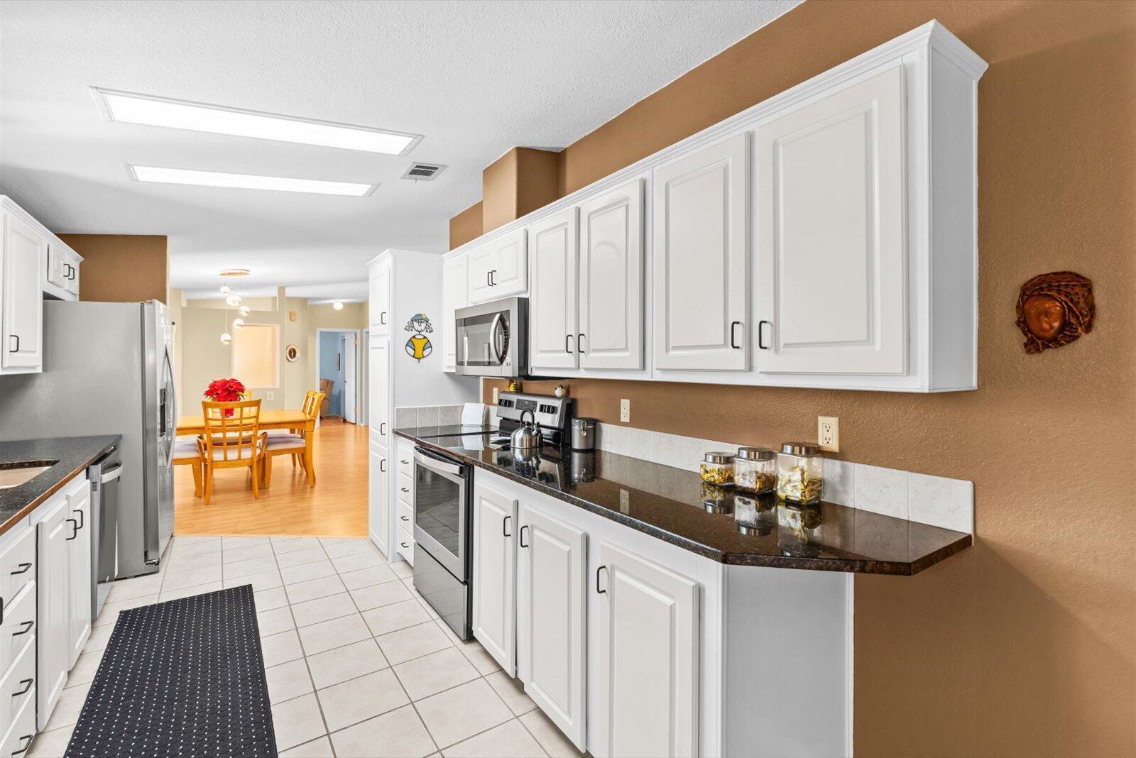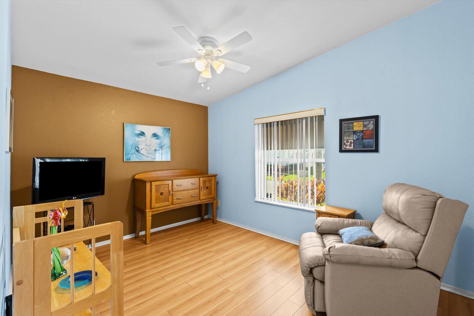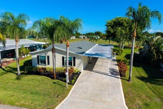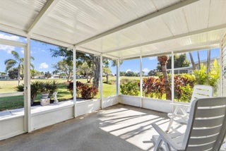 Experience effortless Florida living in this meticulously maintained custom Coral Reef model set on a premier golf-course lot with desirable eastern exposure, refreshing breezes, and sunrise views. Offering 1,823 sq ft, this fully furnished turnkey home features 3 BR's, 2 BA's, and a bright veranda/family room with an alcove bay of windows overlooking the greens. Interior highlights include tiled and laminate floors, SS appliances, granite, accordion shutters, and a 2024 HWH. Major updates include a 2019 roof, 2015 A/C, and new irrigation well pump and tank.Golf cart is included for ultimate convenience with this home that blends comfort, style, and turn-key ease.All measurements approximate, buyer to verify. Land Lease Property