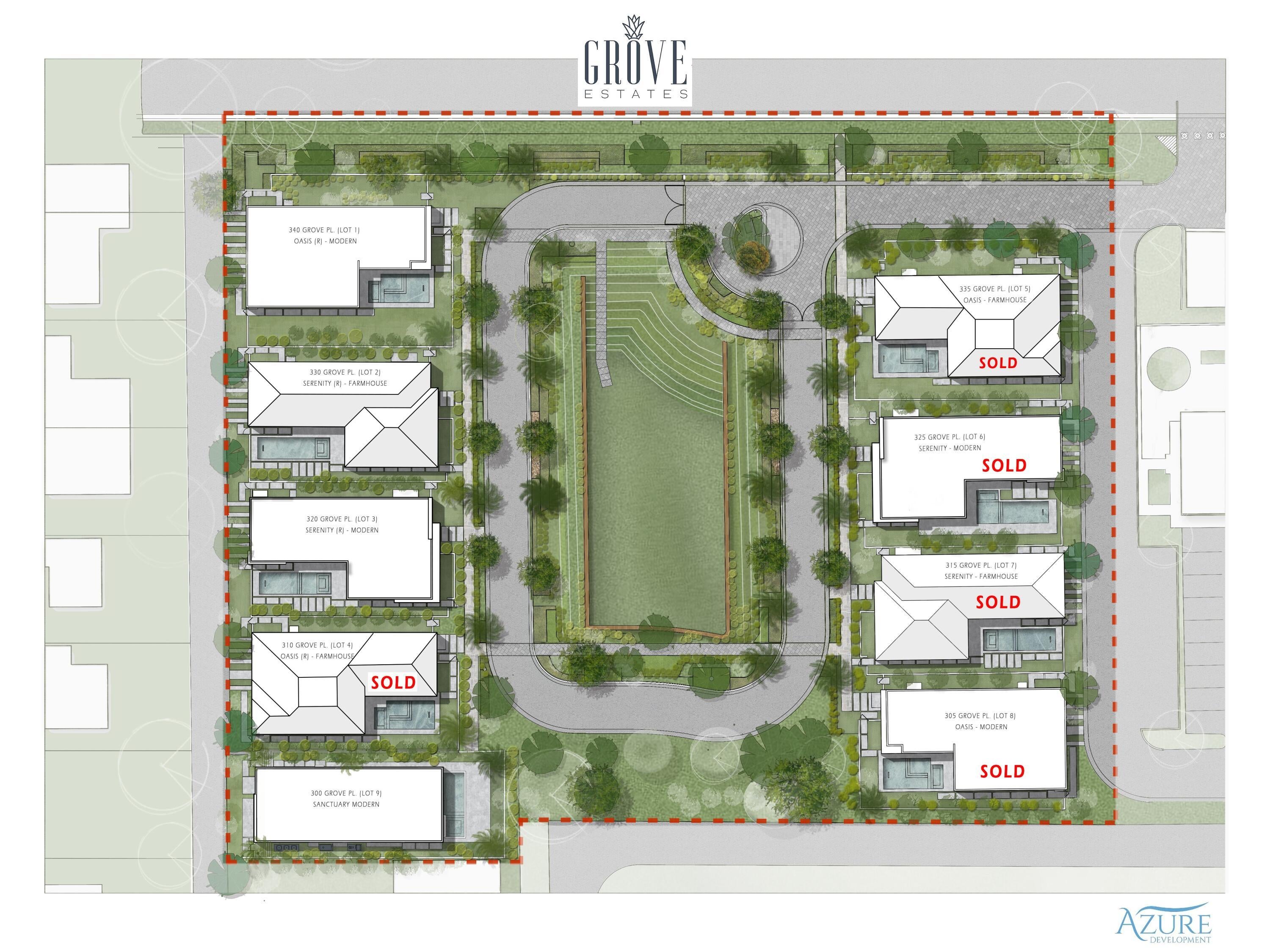Welcome to Grove Estates -- Downtown Delray's Only Gated Single-Family Home Community. Introducing the Sanctuary at Grove Estates, built by award winning Azure Development --a new standard of luxury living in Delray Beach within true walking distance to Atlantic Ave. This brand-new, modern residence on a 8,000+sf corner lot offers 4 bedrooms, 4 full bathrooms, 1 cabana bath, a large flexible upstairs family room with bar, and over 4,500sf of expertly crafted living space. Designed with clean lines, soaring ceilings, and expansive 12' floor to ceiling windows, this home is bathed in natural light and built for seamless indoor-outdoor living. Covered lanai with summer kitchen and views of the pool, with sunshelf & spa from all rooms.Designed by HdA architects and curated by Czar Interiors, the Sanctuary spans 4,506 square feet of air-conditioned living with 5,748 total square feet of resort-style space. Soaring 12-foot floor-to-ceiling glass windows invite light and lush greenery into every corner of the home, creating a seamless connection to the outdoors. The dramatic staircase with glass railings and private elevator offer both modern flair and convenience, while the thoughtful layout effortlessly blends entertaining and everyday living. The gourmet kitchen is a chef's dream, outfitted with professional-grade Wolf and Sub-Zero appliances, custom 12-foot cabinetry, and a hidden service kitchen with a second dishwasher, sink, refrigerator, and walk-in pantry. Step outside into your own private oasis with an oversized 30'x14' saltwater pool, spa and sun shelf surrounded by dense, tropical landscaping for total privacy and plenty of yard space behind the pool to enjoy. The expansive 33'x12' covered outdoor living area is set up perfectly for effortless indoor-outdoor entertaining no matter the season. Upstairs, expansive balconies with glass railings overlook the lush central green, a landscaped park exclusive to Grove Estates, ideal for peaceful walks, yoga, or simply taking in the tranquility. Upstairs, four spacious bedrooms include a luxurious VIP suite and a stunning primary retreat, each designed with custom finishes and spa-like bathrooms. A three-car garage, solid steel and concrete second-floor construction, natural gas fireplace, and designer fixtures round out this exceptionally built home that merges quality with artistry at every turn. With unmatched design, privacy, and a location just steps from the energy of downtown Delray, this is your opportunity to claim one of the most exclusive addresses in South Florida. There are only 4 of the 9 homes remaining in Grove Estates.