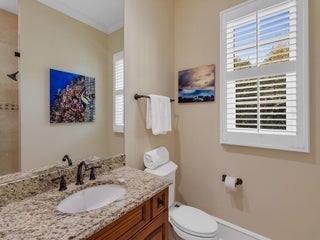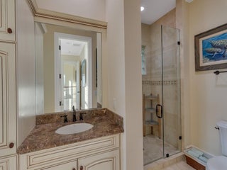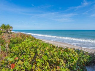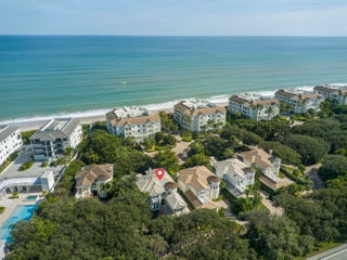 Experience refined coastal living in this one of a kind estate within Carlton, Vero Beach's premier oceanfront, guard gated community. Handcrafted by the very builder who originally envisioned the enclave, this legacy residence offers over 5,000 SF of timeless architecture (6,632 SF total) just a short stroll from the private Atlantic shoreline. Properties of this caliber seldom reach the market. Limited to just five single-family homes, this rare offering is reserved for a select and distinguished group. A grand arrival begins at the solid mahogany double doors, opening to 13 foot ceilings, marble and hardwood flooring, and a dramatic spiral staircase of imported marble, mahogany, and wrought iron.Walls of floor to ceiling impact glass and French doors illuminate the interiors while framing lush tropical views. Recent $1.2M+ in renovations elevate every space with thoughtful, enduring luxury. The chef's kitchen is both stunning and functional, featuring custom wood cabinetry, imported granite surfaces, oversized island, walk in pantry, and commercial grade appliances, including a gas cooktop with 36 inch vented hood and custom stonework. A Sonos sound system, multiple fireplaces with bespoke stone surrounds, elegant lighting, double crown molding, 8 foot solid core doors, and a richly finished elevator further enhance the home's craftsmanship. The floorplan offers 5 bedrooms plus study, 5 full baths, and 2 powder rooms, including a privately situated primary suite with stone fireplace, French doors to a breezy balcony, custom closets, and a reimagined spa bath finished in marble and luxury tile with frameless glass shower and bidet. Additional comforts include dual laundry rooms, central vacuum, custom closets throughout, wood plantation shutters, and Kohler and TOTO fixtures. Step outside to a resort caliber sanctuary, an ultra private oasis with heated pool and spa, water features, built in gas fire pit with stone and granite seating, mature tropical landscaping, paver pathways with premium lighting, outdoor shower, and a complete summer kitchen. Expansive covered loggias with tongue and groove ceilings feature remote control roll down screens and hurricane shutters for effortless year round living. A 25KW whole house generator, 1000 gallon propane tank, automatic mosquito misting system, four Trane AC units, and an air conditioned garage ensure total comfort. Additional highlights include epoxy coated garage floors with storage cabinetry, hurricane rated garage door, 110 gallon water heater, meticulously maintained tile roof, custom office built ins, upstairs breakfast bar, and balconies on both levels. Living in Carlton means enjoying world class amenities including concierge services, fitness center, resort pool and spa, Har Tru tennis courts, pickleball, guest houses for rent, private cabanas available for purchase, gas lantern lit streets, concierge car wash, mail and package services, and a 24 hour manned guard gate, all within a secluded, direct oceanfront community. A rare offering of architectural pedigree, privacy, and oceanfront lifestyle. This is legacy living at its finest.