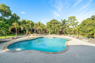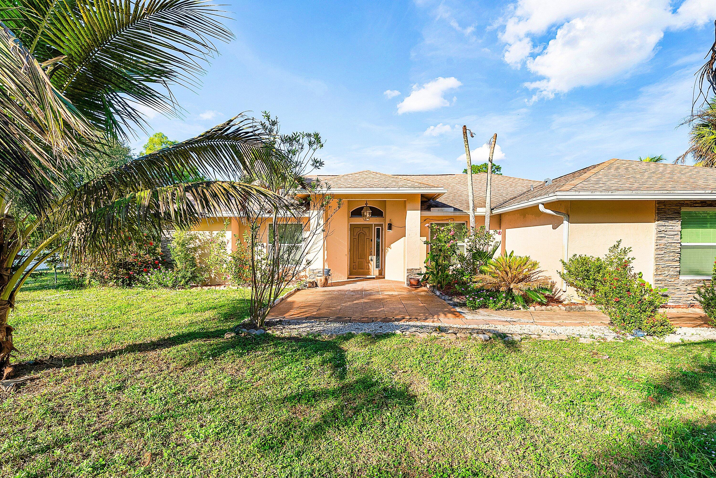 If your looking for your own private retreat look no further than this amazing Acreage pool home. This stunning home is a the ideal place to host any event and perfect for entertaining. As you walk through the front door you will notice the formal lay out with large dinning room, wonderful family room and converted bonus room/ office. As you make your way into the open kitchen you will notice wood cabinets and granite tops and top of the line stainless steel appliances. The main home features 3 bedroom and a fully permitted attached in-law suite with separate entrance. The spacious inlaw features big walk in closed and stunning bath room with large walk in shower. This home has been updated in all the right places, it featureA new roof, new a/c, new water heater, impact windows, and so much more. But the best feature of this home may be out the back door. As you make your way out to the custom pool you will notice the new outdoor kitchen with with sink and custom backsplash. The yard is full fenced and features a new well, and countless fruit trees such as mango, coconut, Barbados cherries, sugar cane and much more.