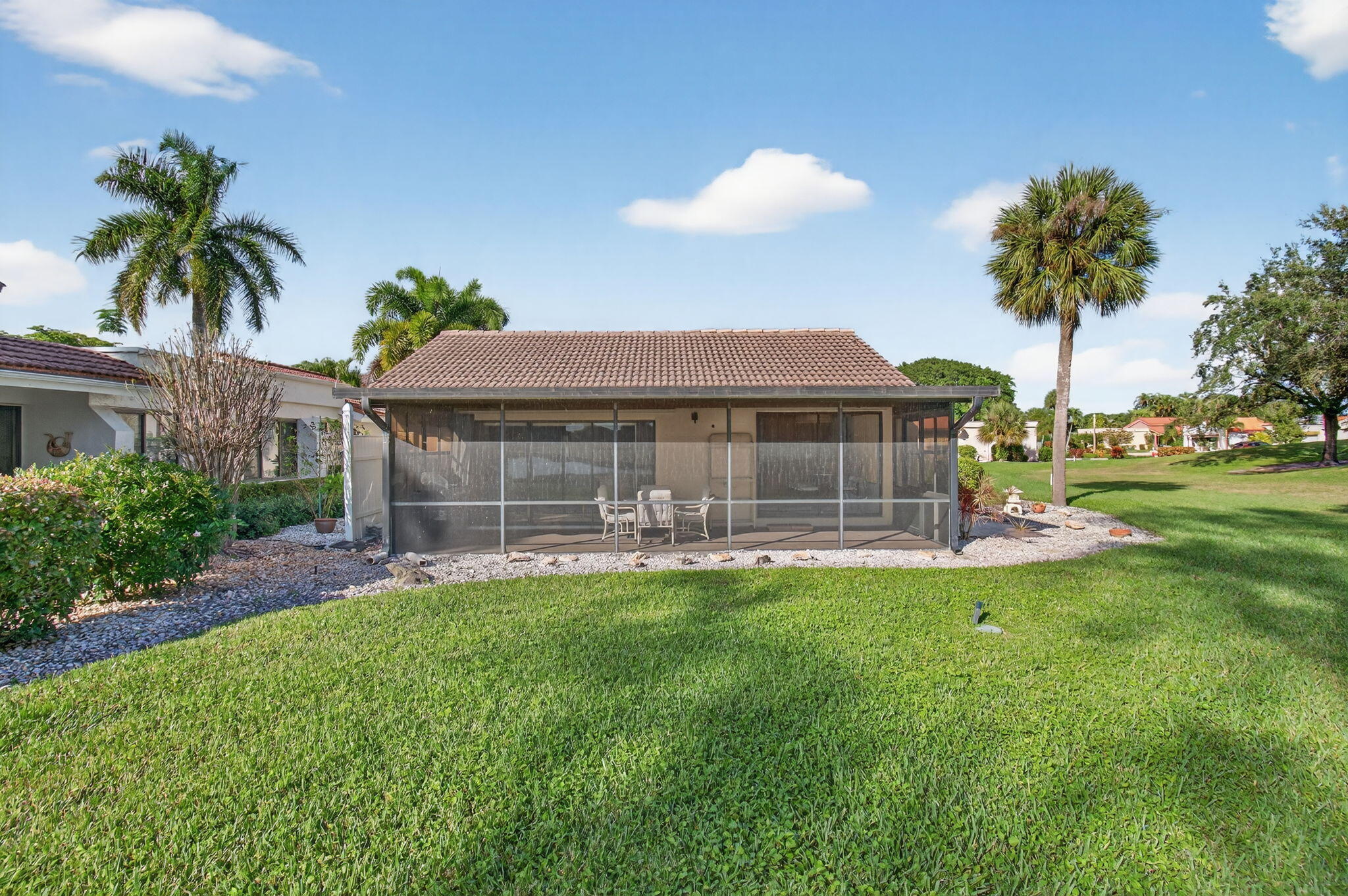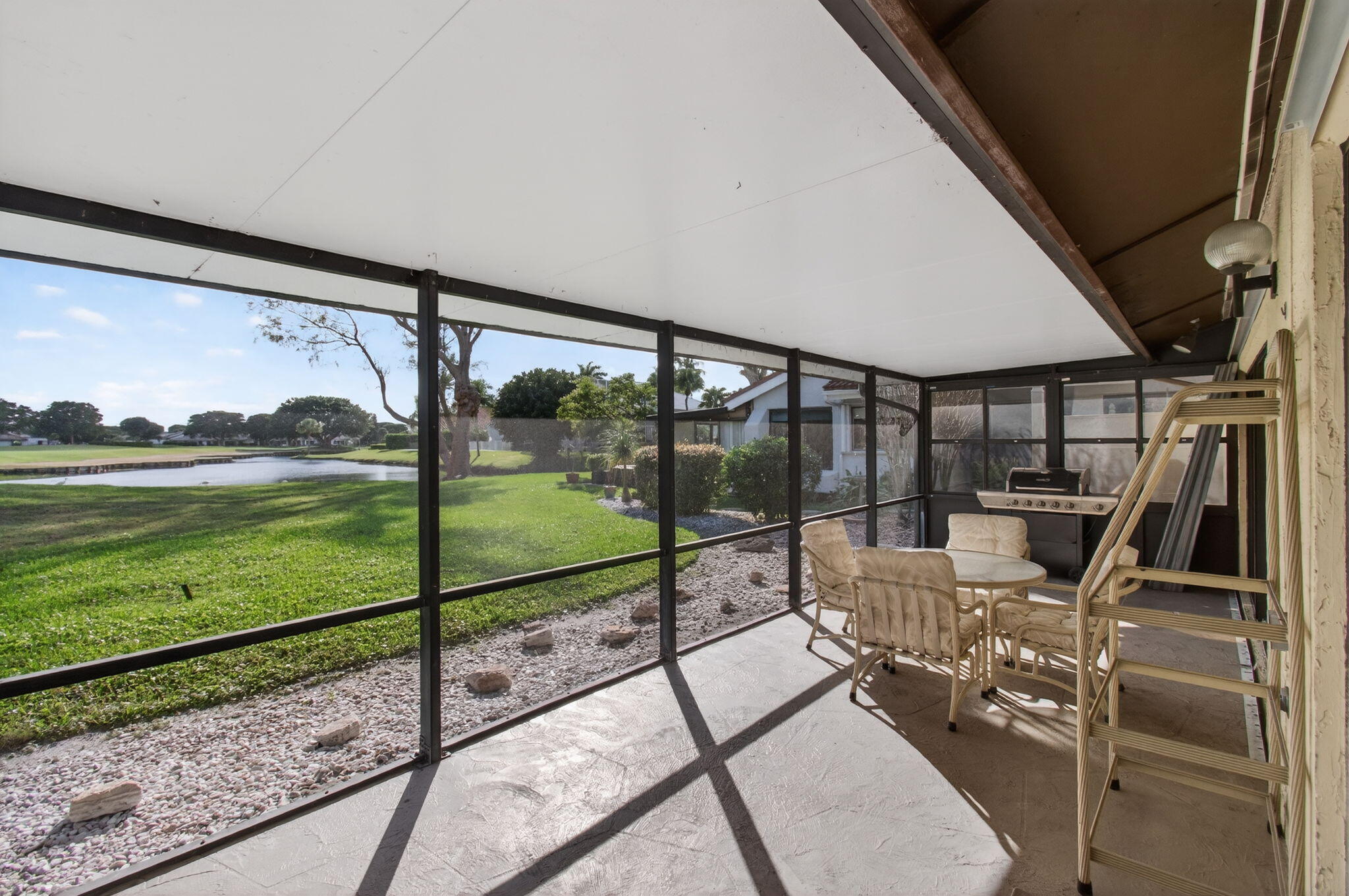 5360 Piping Rock is your opportunity to own a single family home home with an amazing golf course and lake views from almost every room in the house. This adorable home features an updated eat in kitchen. Large living room with volume ceiling, glass sliding doors that leads to an screen enclosed patio. The master bedroom is spacious and boasts two closets. Bedroom 2 is perfect for guests. The third bedroom is designed as a den. Watch the golfers at the 3rd hole at the Indian Spring Country Club east course. Stellar water view. The community has a pool, 24/7 guard gated security, lawn care, landscaping, cable and internet. Memberships is OPTIONAL at the Indian Spring Country Club for social and golf.